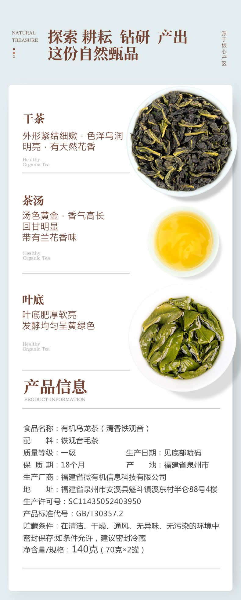 基地直发-有机茶清香型铁观音70g
