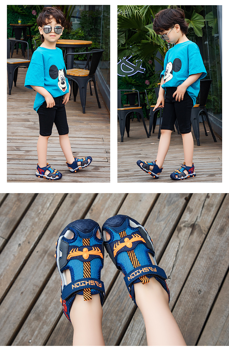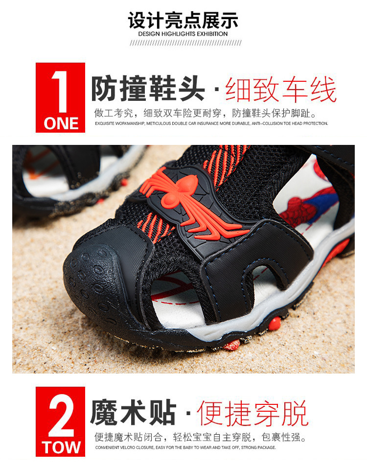 【炫酷蜘蛛侠凉鞋❗透气内里】儿童凉鞋夏季新款青少年凉鞋男童卡通一件代发包头沙滩鞋魔术。rg