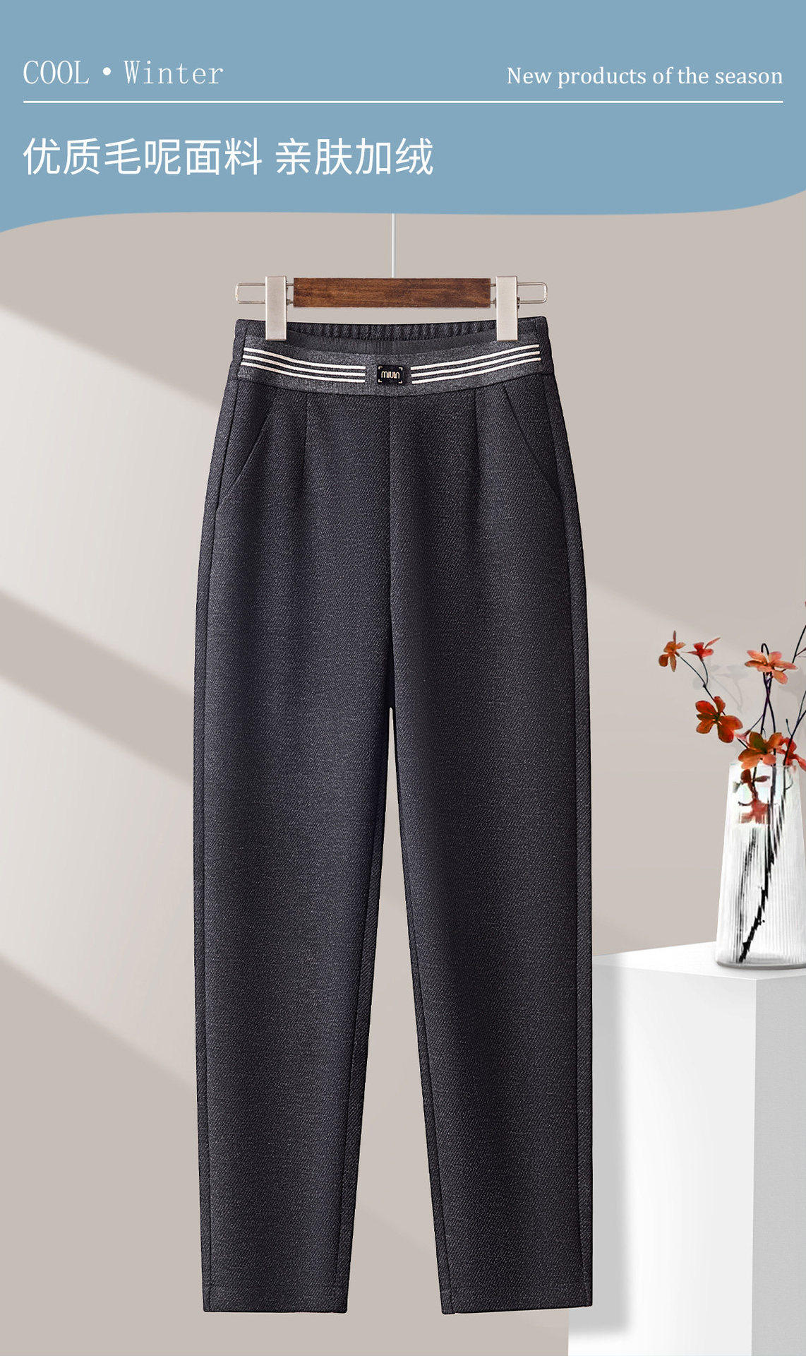 「自」全新升级【铂金会员146/天猫199/差价53】(05435)洛诗琳加绒羊毛呢九分裤2025冬季新款高腰显瘦小个子烟管裤