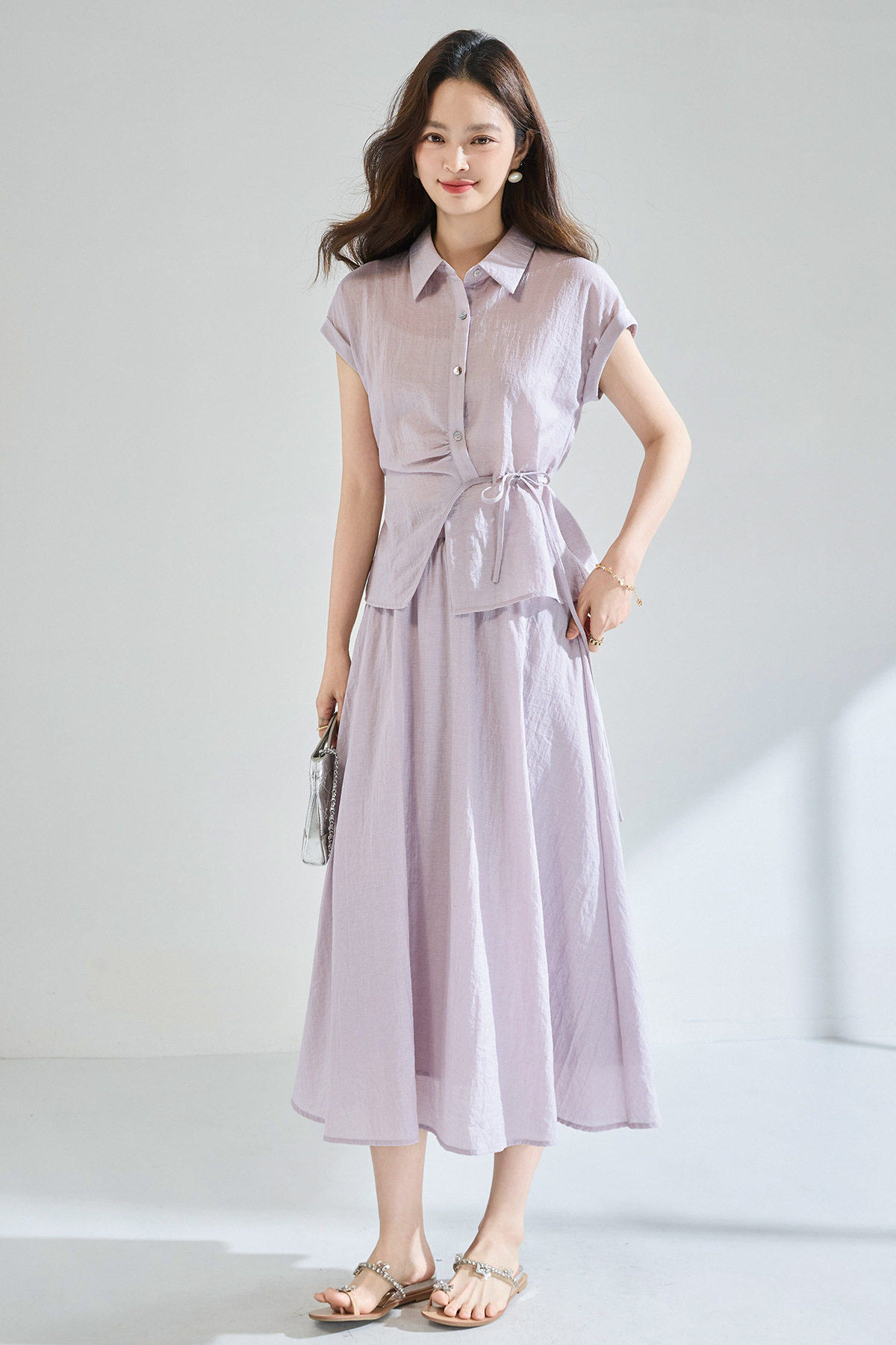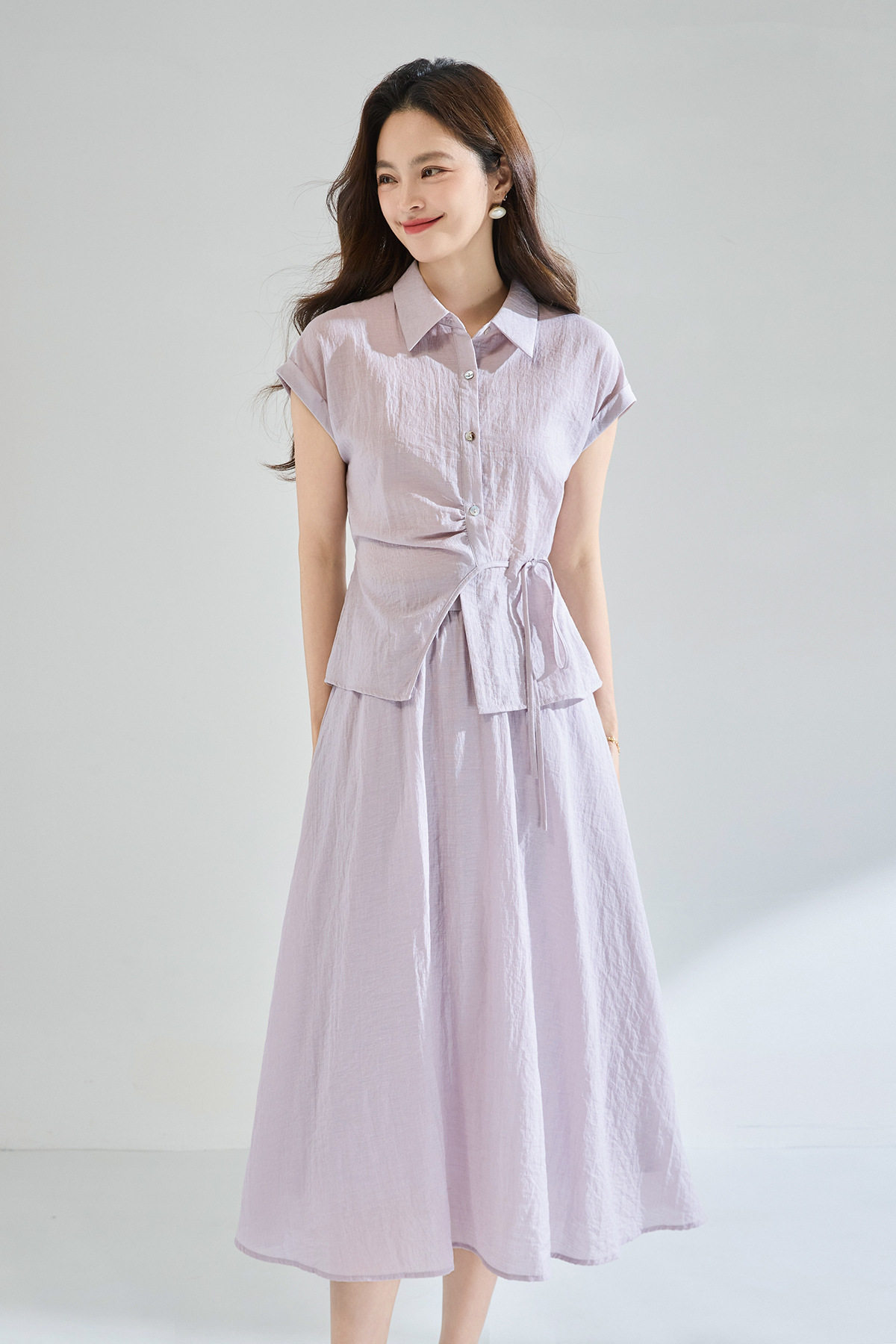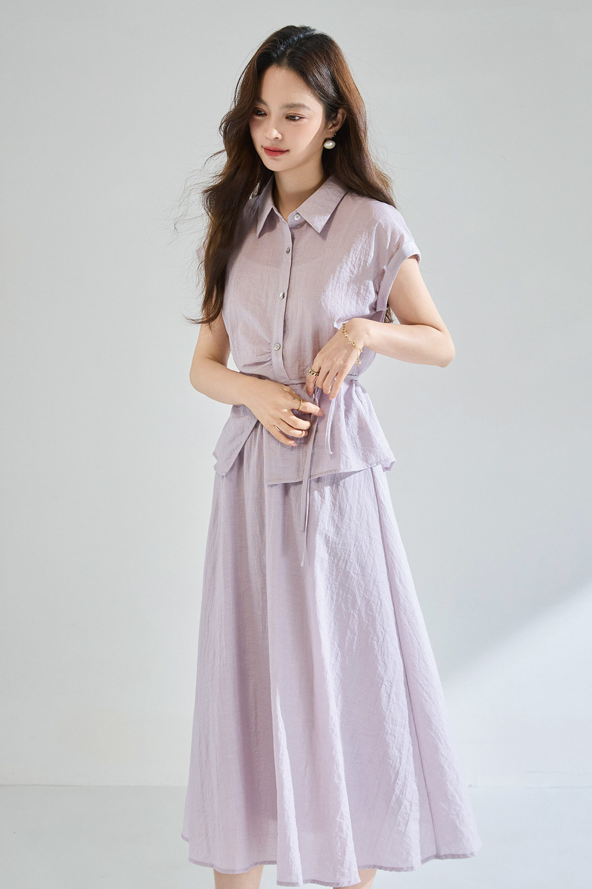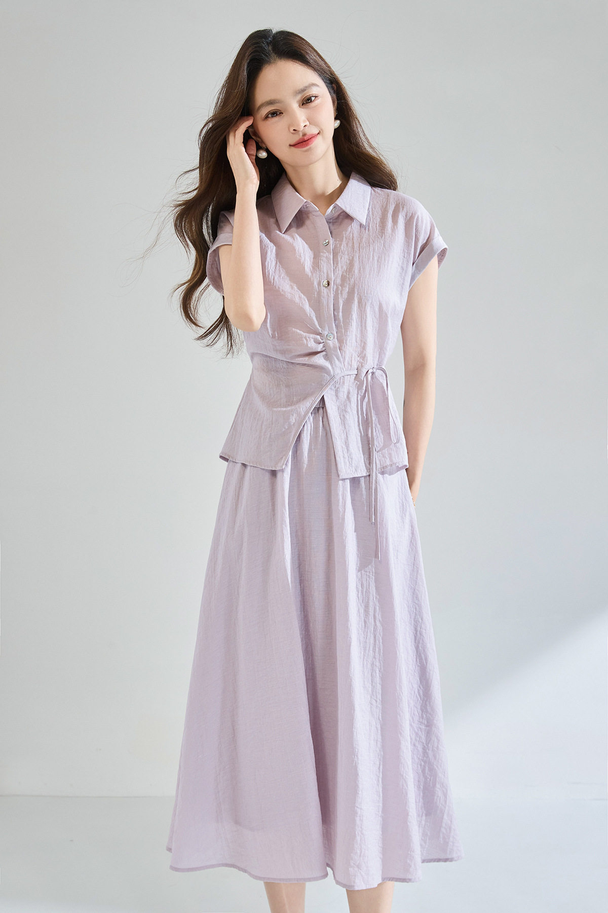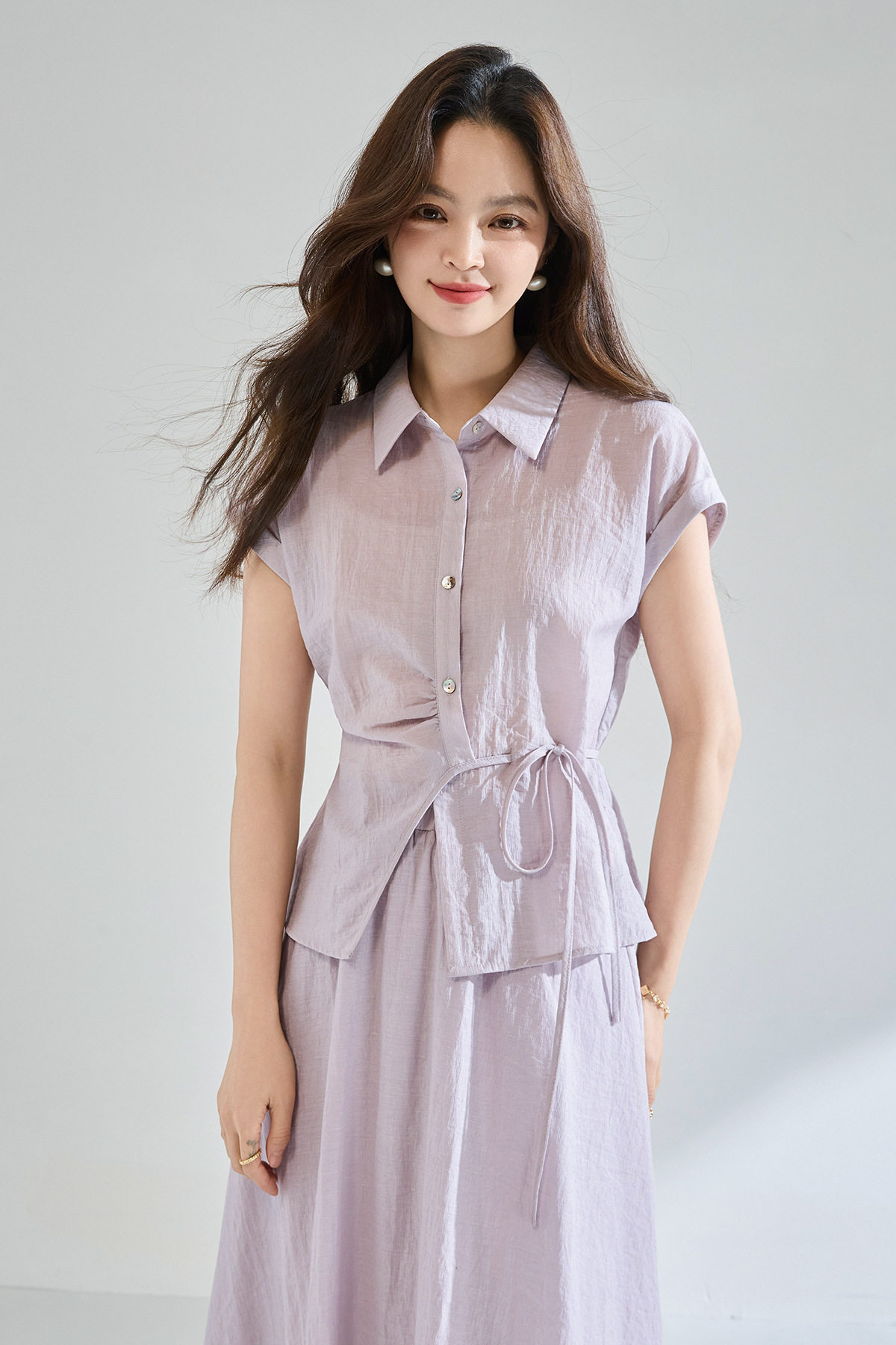 「高货sh」全新升级【铂金会员404/天猫539/差价135】(99506)洛诗琳2026新款醋酸天丝系带上衣高奢半身裙通勤两件套