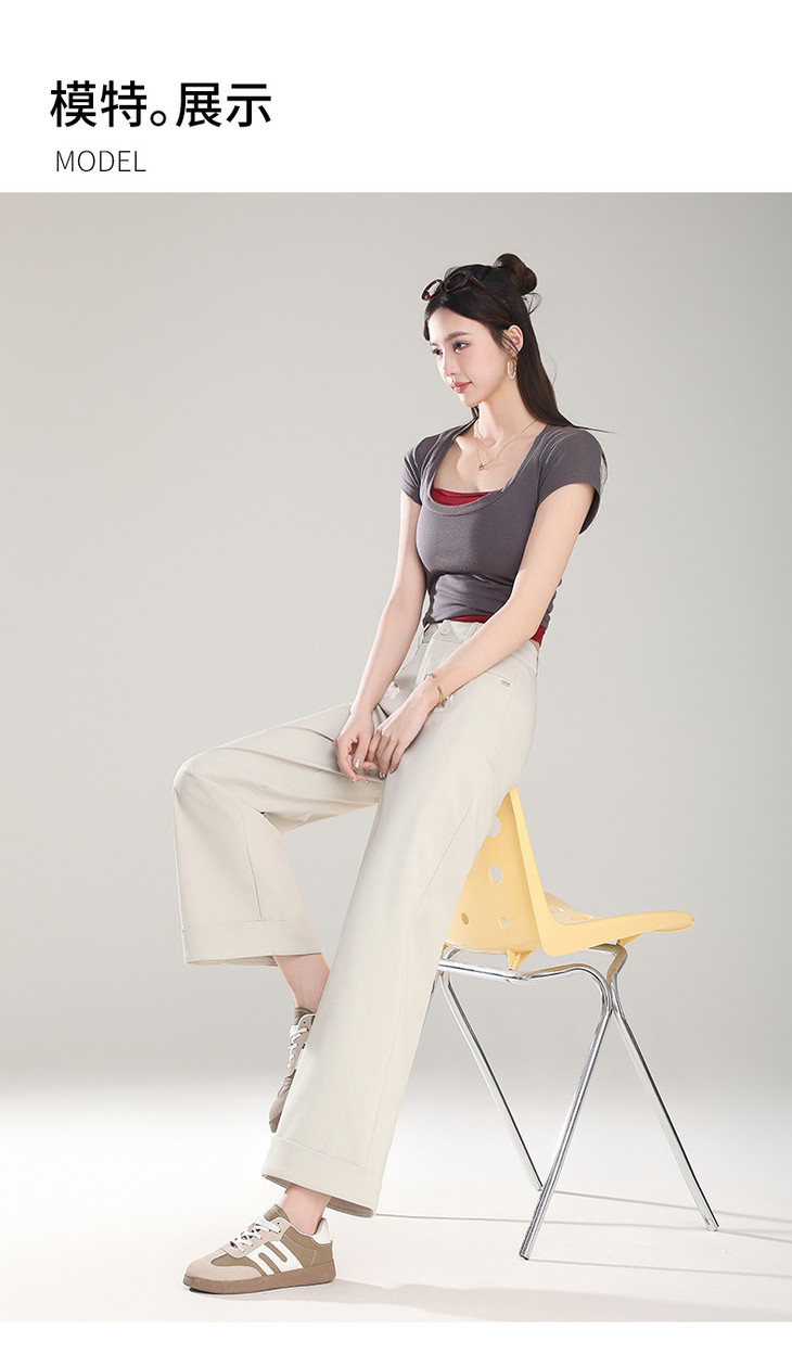 高腰潮流阔腿裤,韩版简约时尚优雅女士休闲裤YX-XBMY6619
