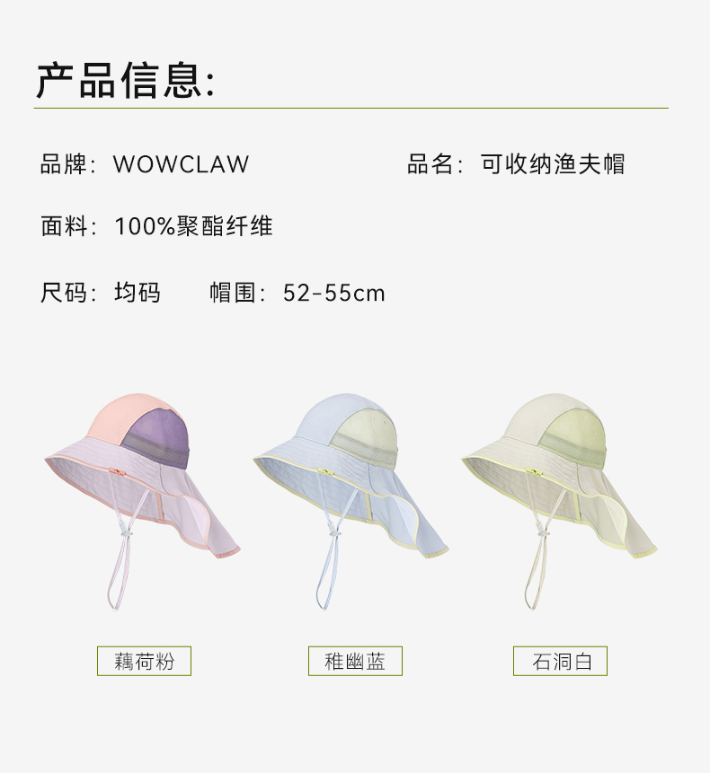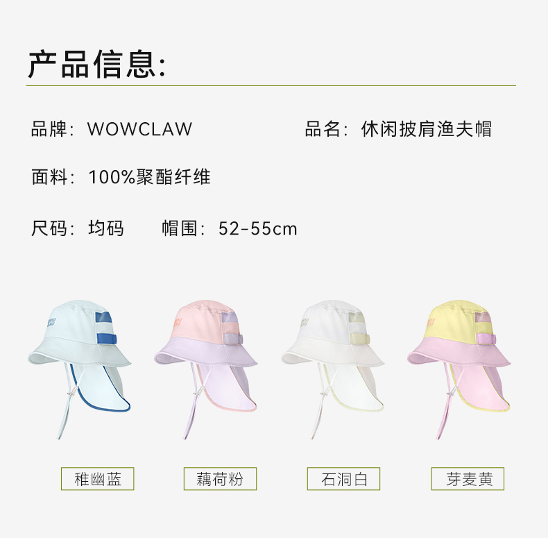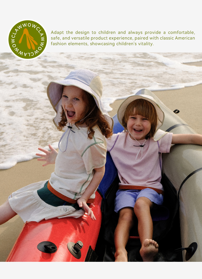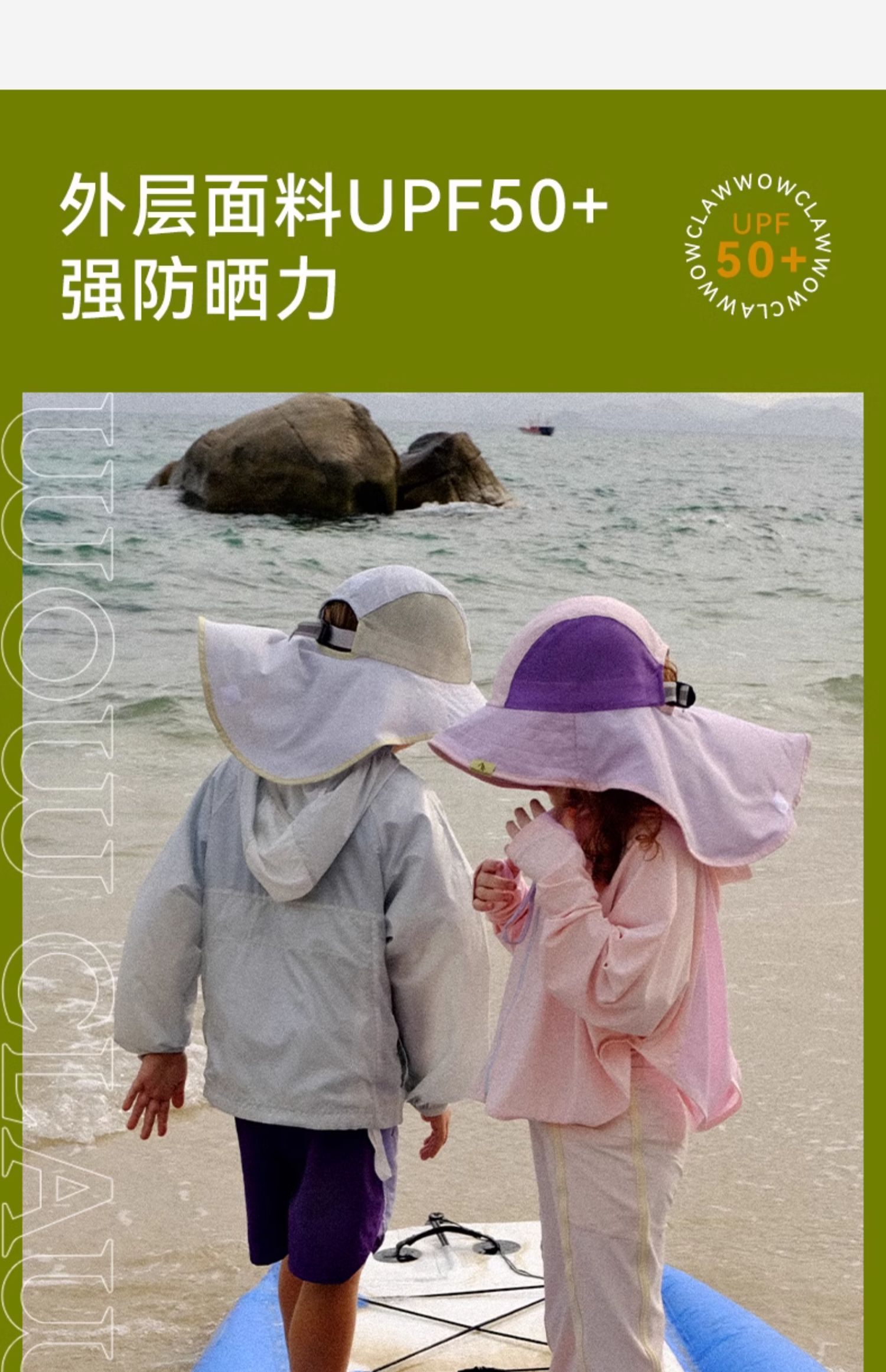 美国WOL儿童大檐护颈防晒帽/宝宝帽子遮阳夏季户外多功能渔夫帽|小爪帽