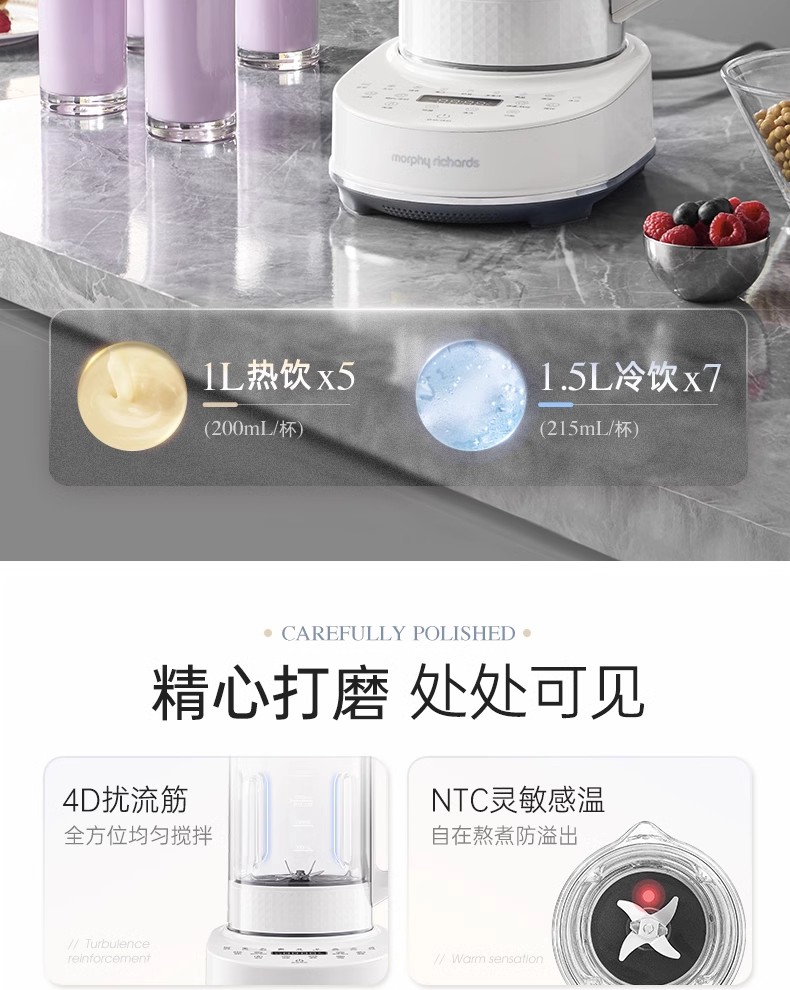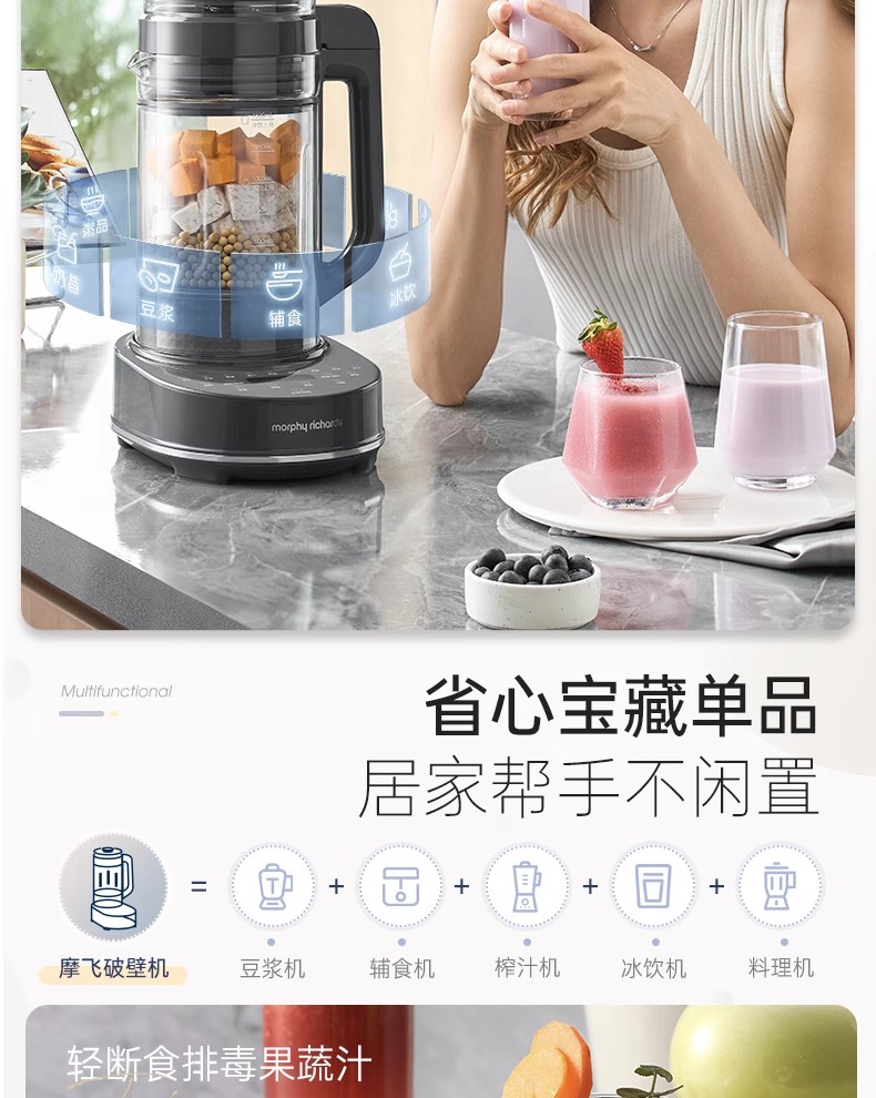英国morphy摩飞MR8202多功能破壁料理机(星空灰)