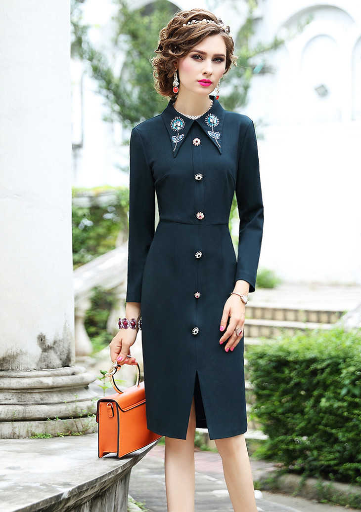 FMY-25584秋装新品名媛气质女神范修身开叉裙