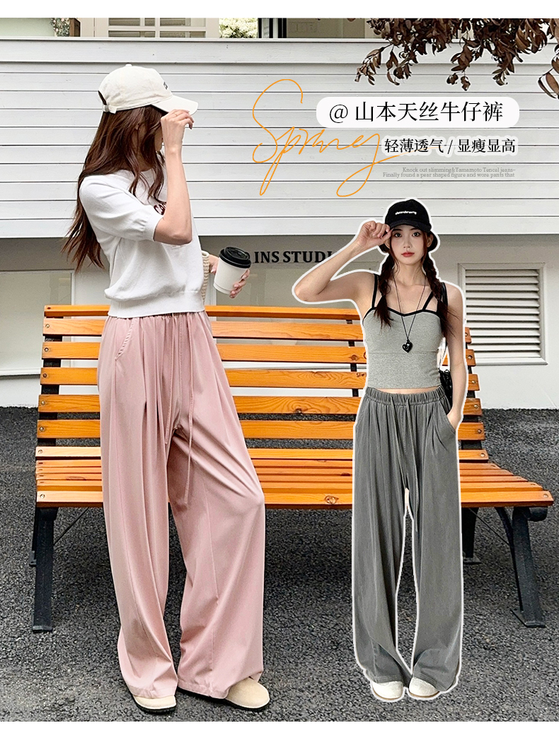 【自由身呼吸,软而不变形】【慵懒松弛,时髦百搭】春夏季新款女四色莱赛尔天丝牛仔裤高腰直筒阔腿凉感天丝牛仔裤