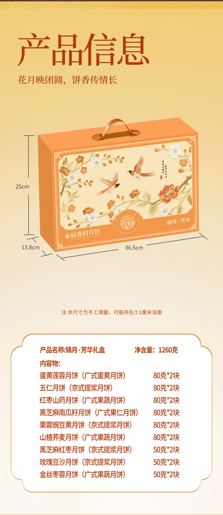 【河北·稻香村】锦月·芳华(1260g*9味18饼)月饼礼盒 中秋传统糕点