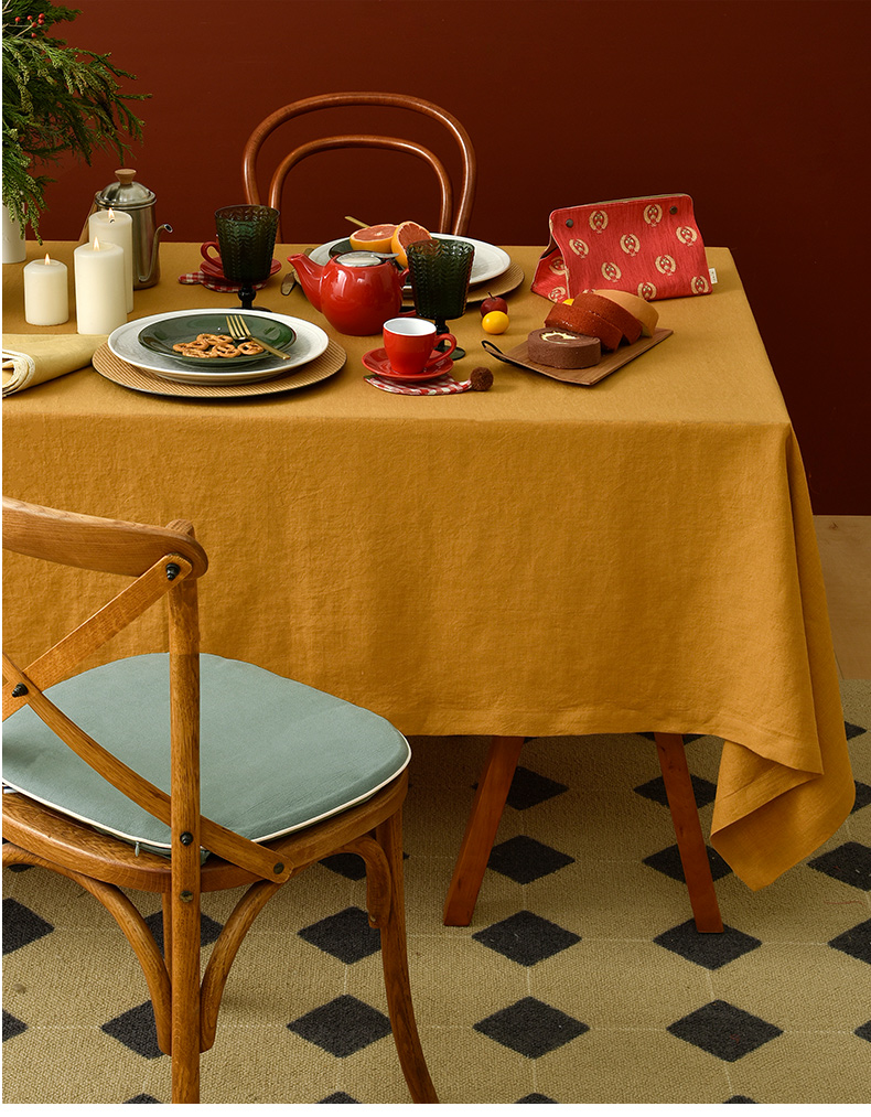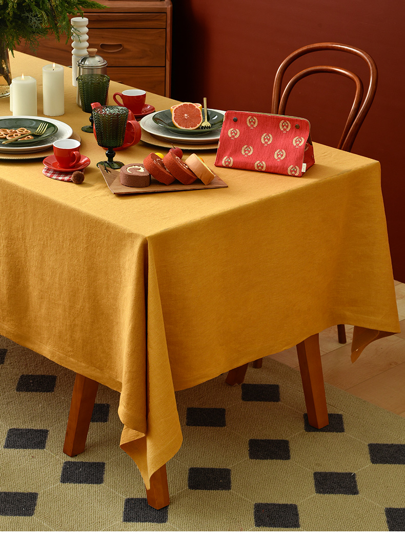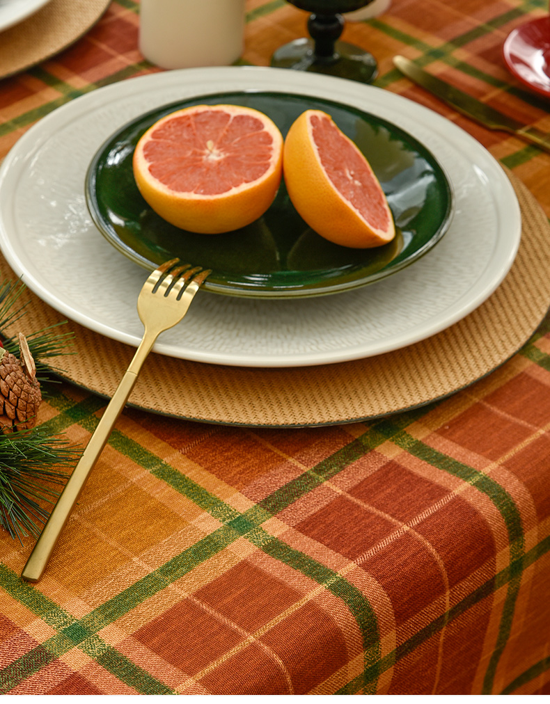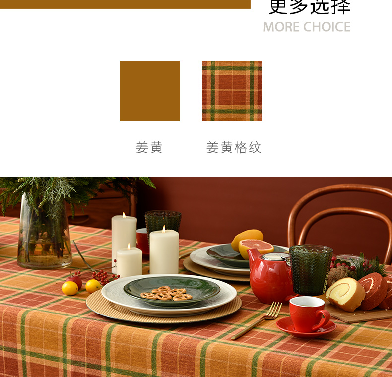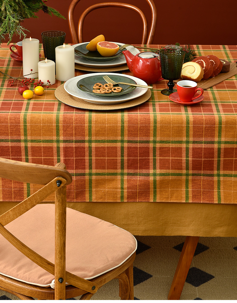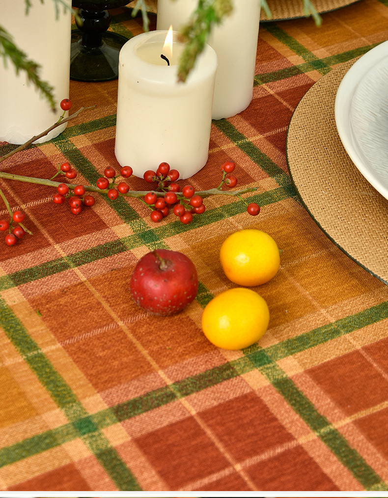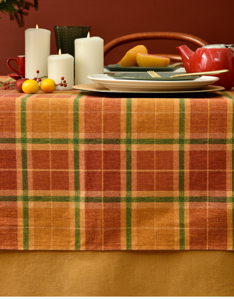 姜黄英伦格纹棉麻餐桌布