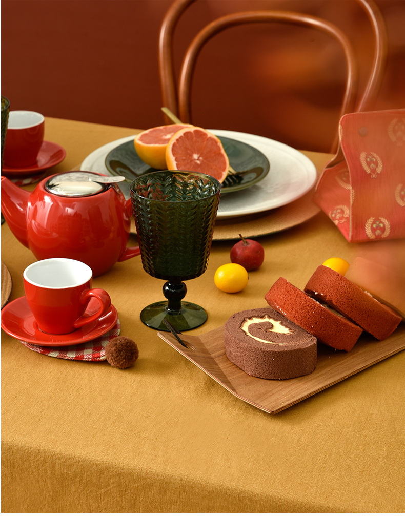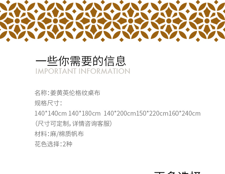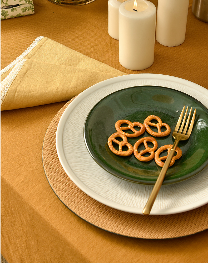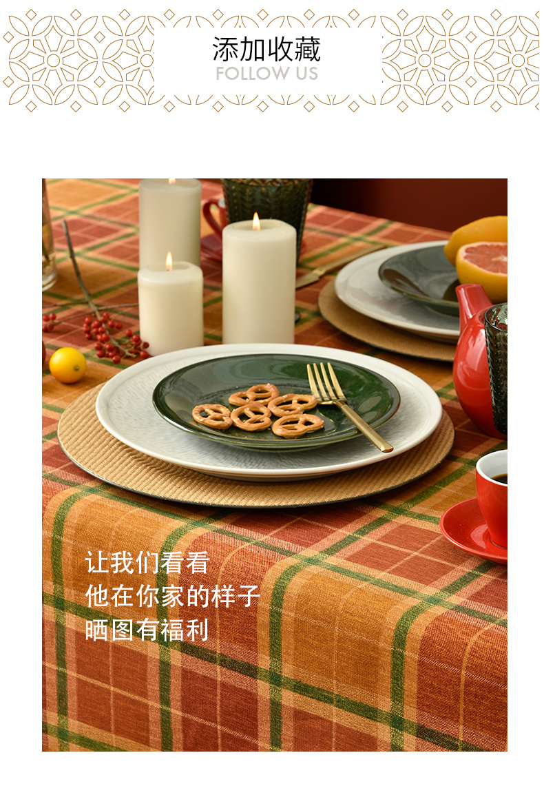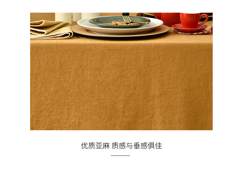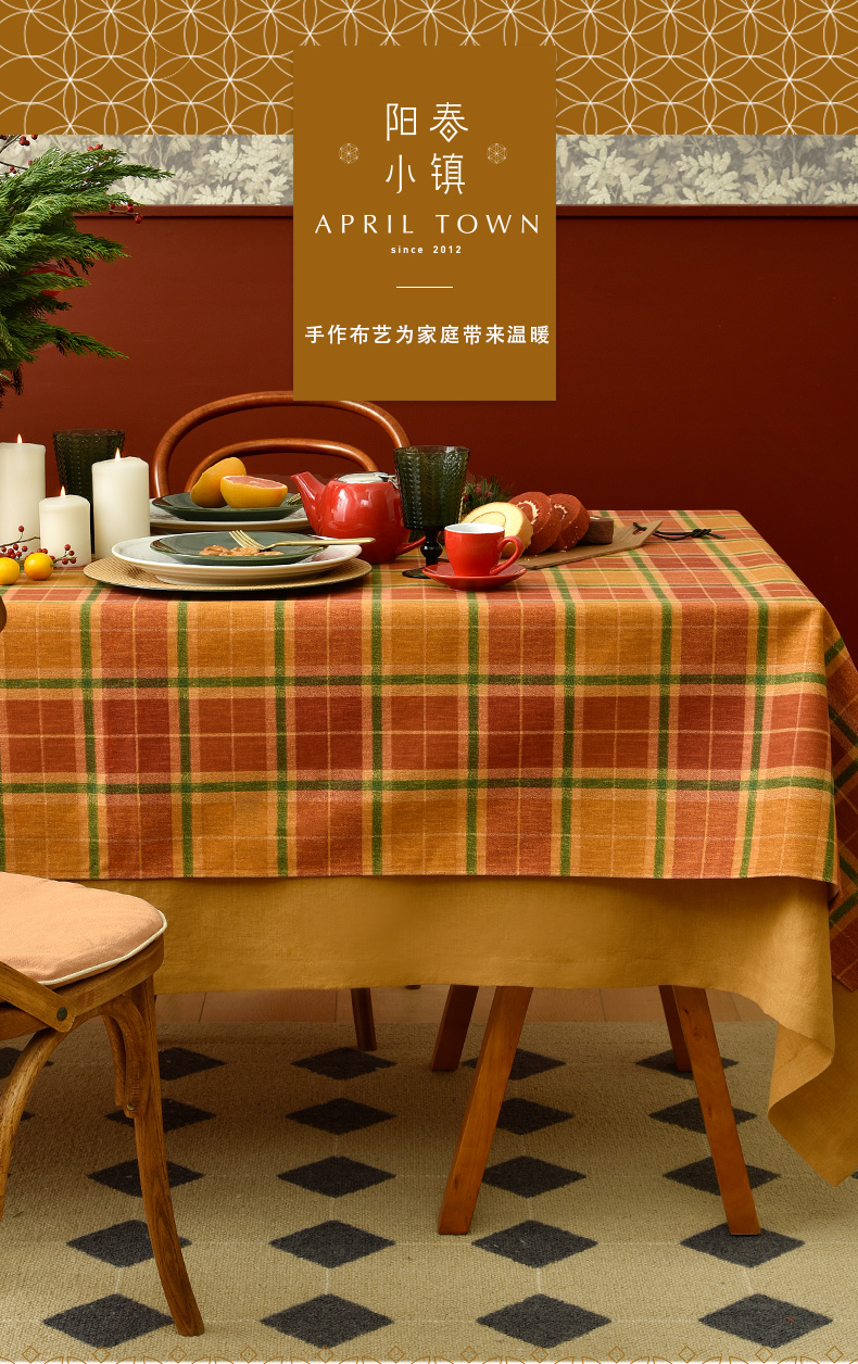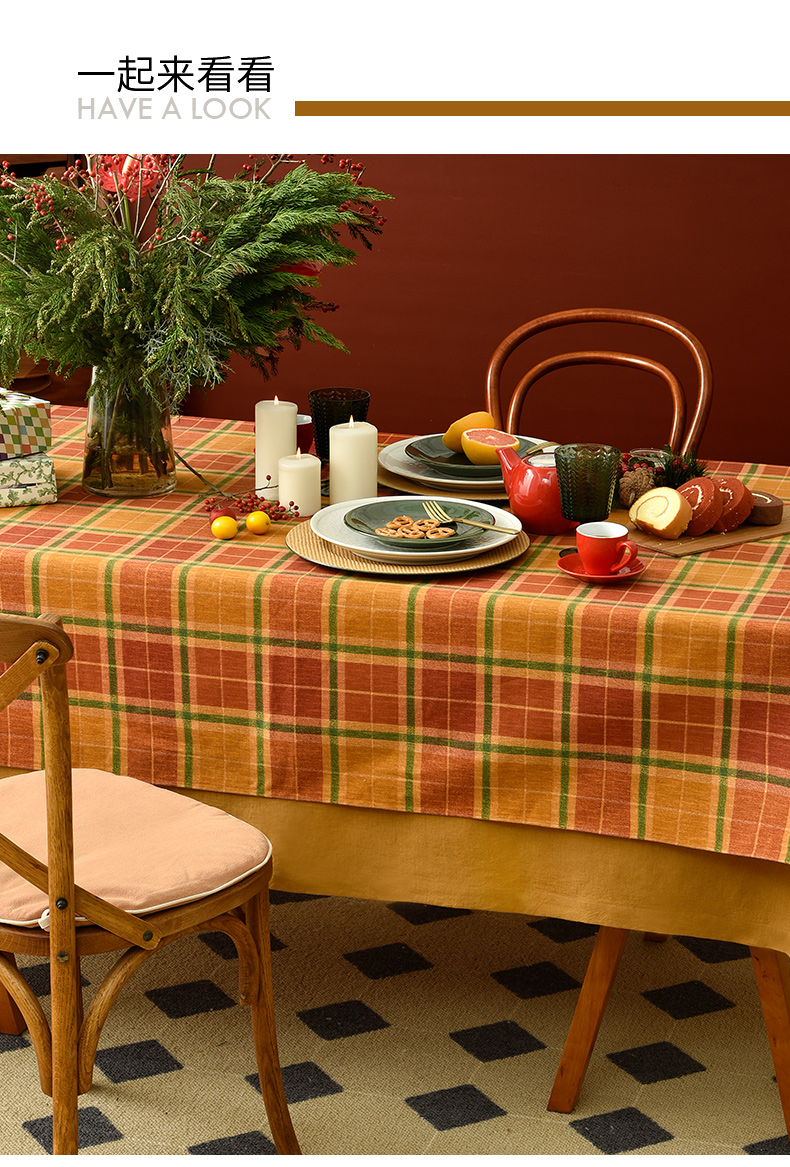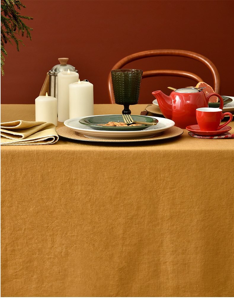 姜黄英伦格纹棉麻餐桌布