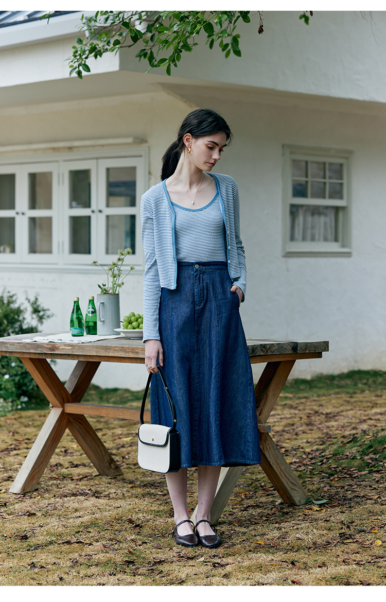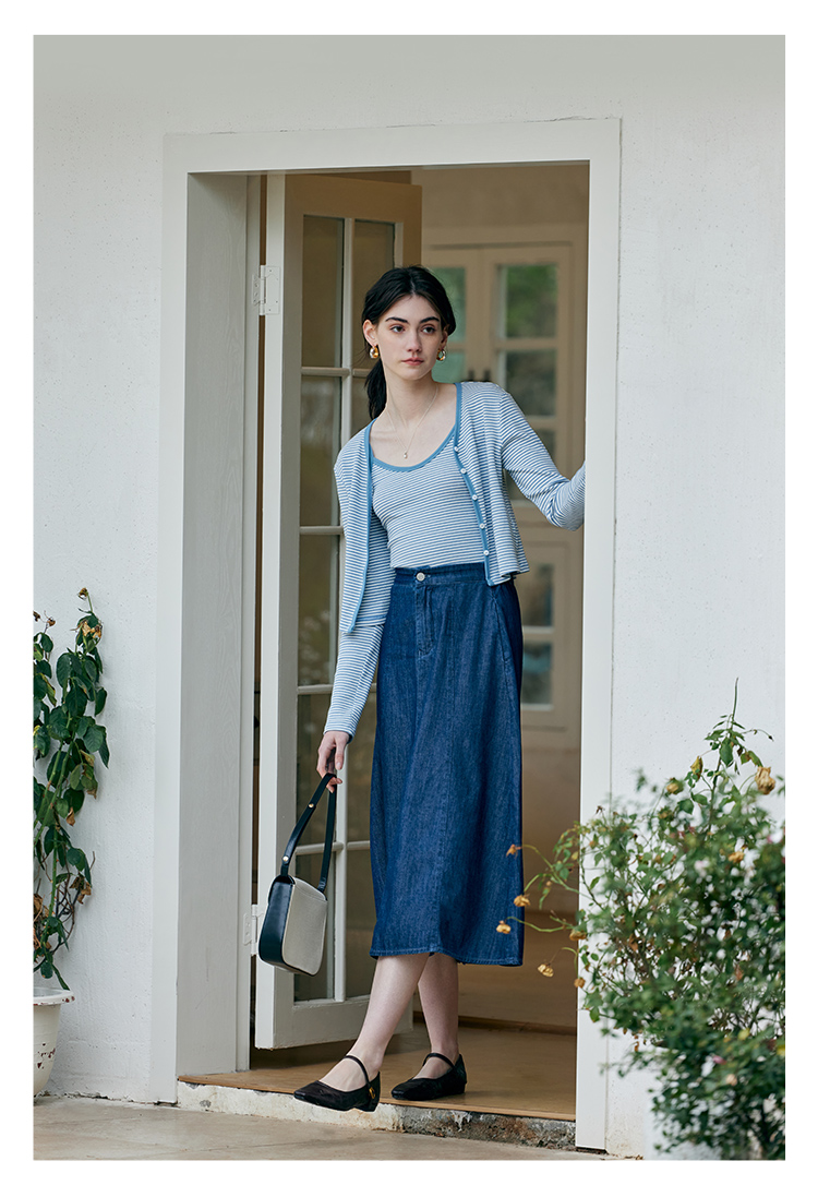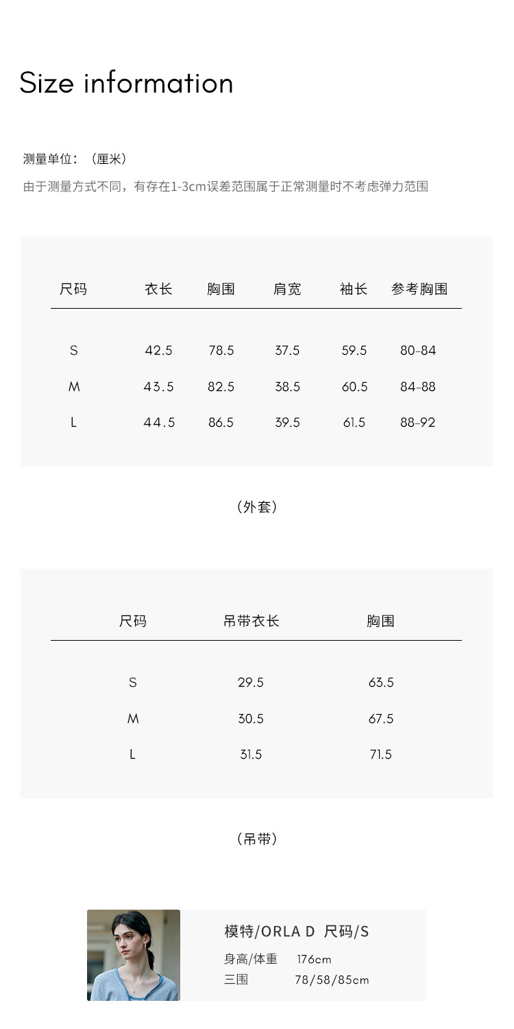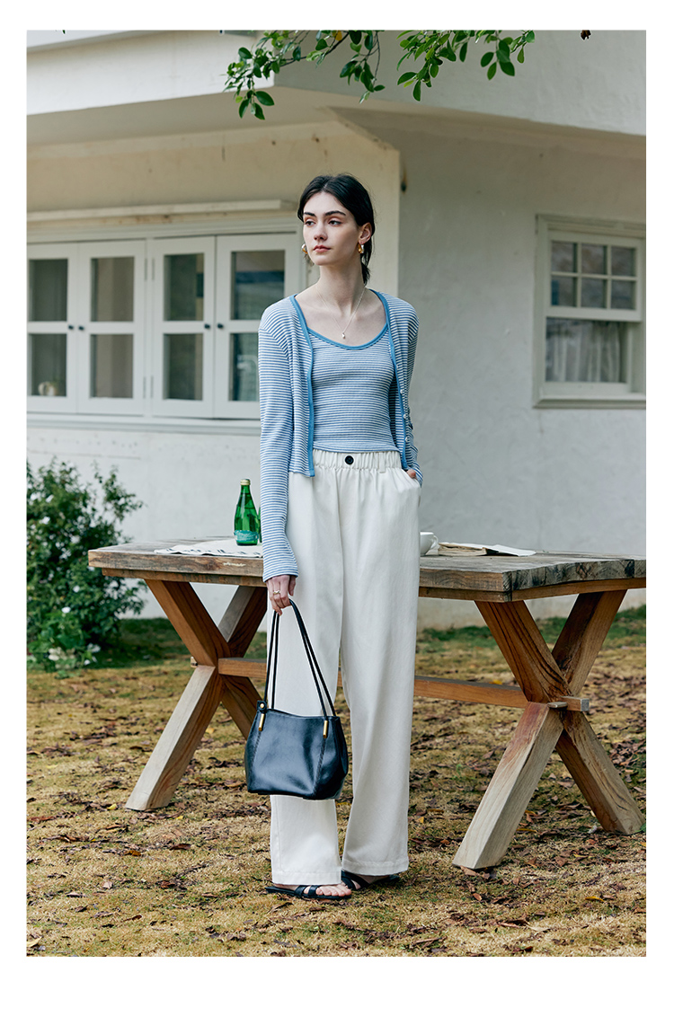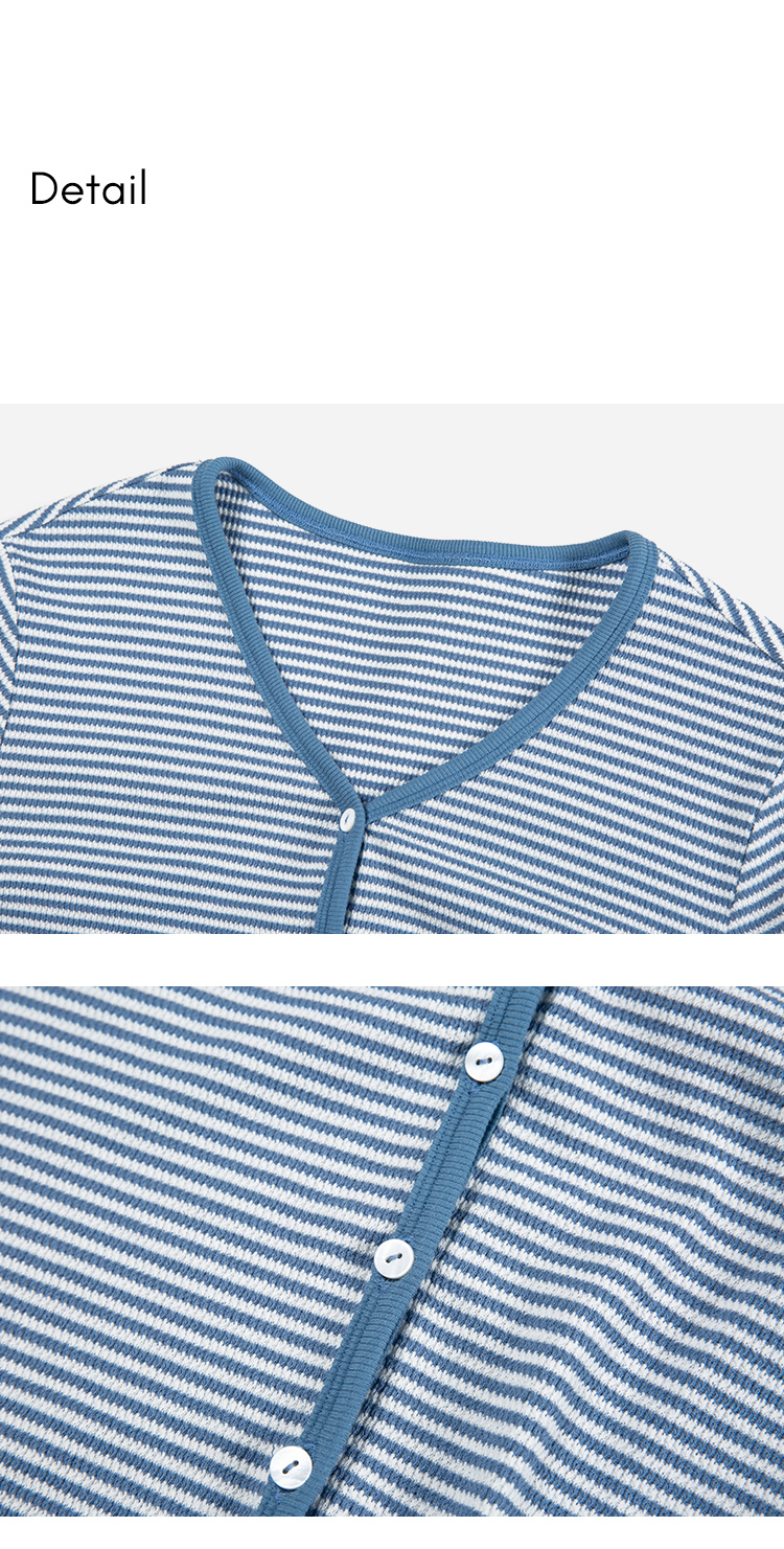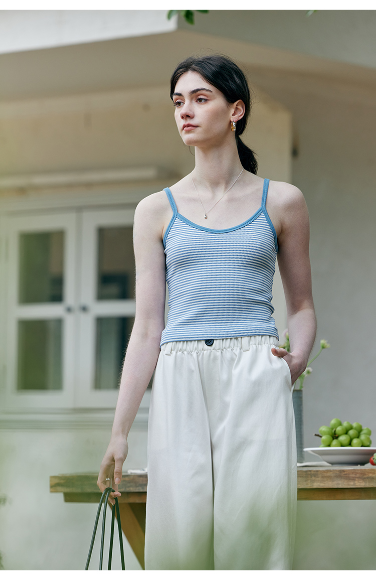HeyDress蓝色条纹针织开衫女春夏法式撞色设计V领吊带背心两件套