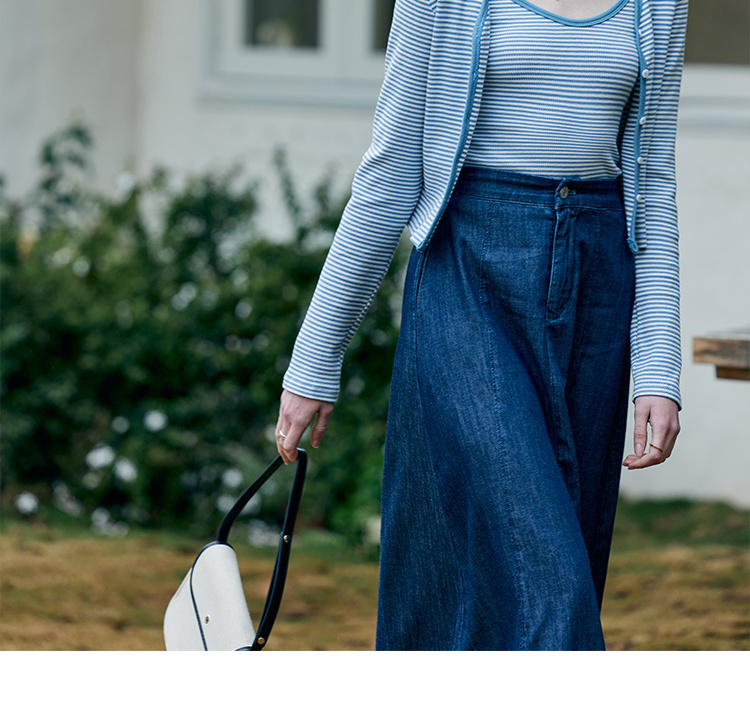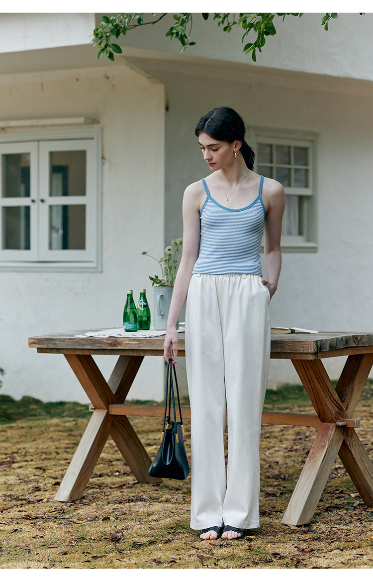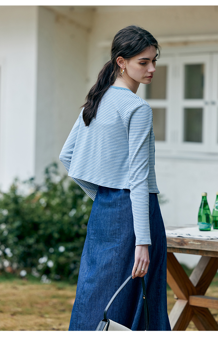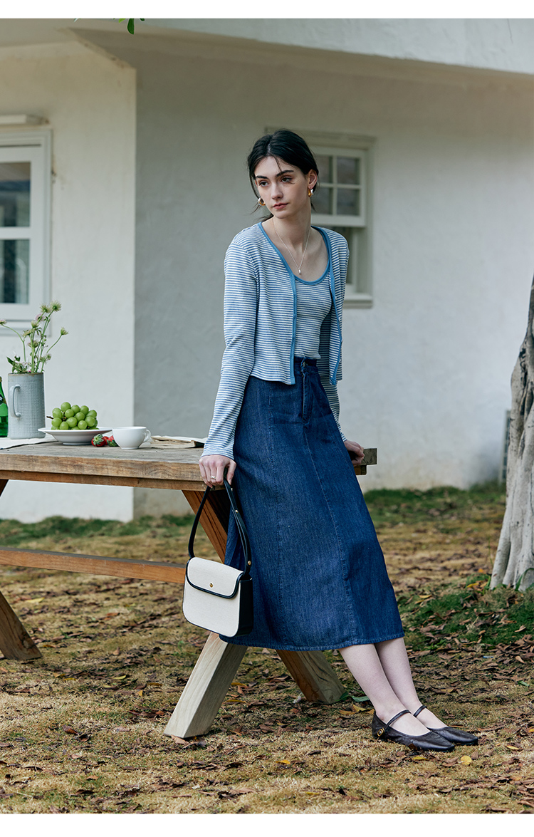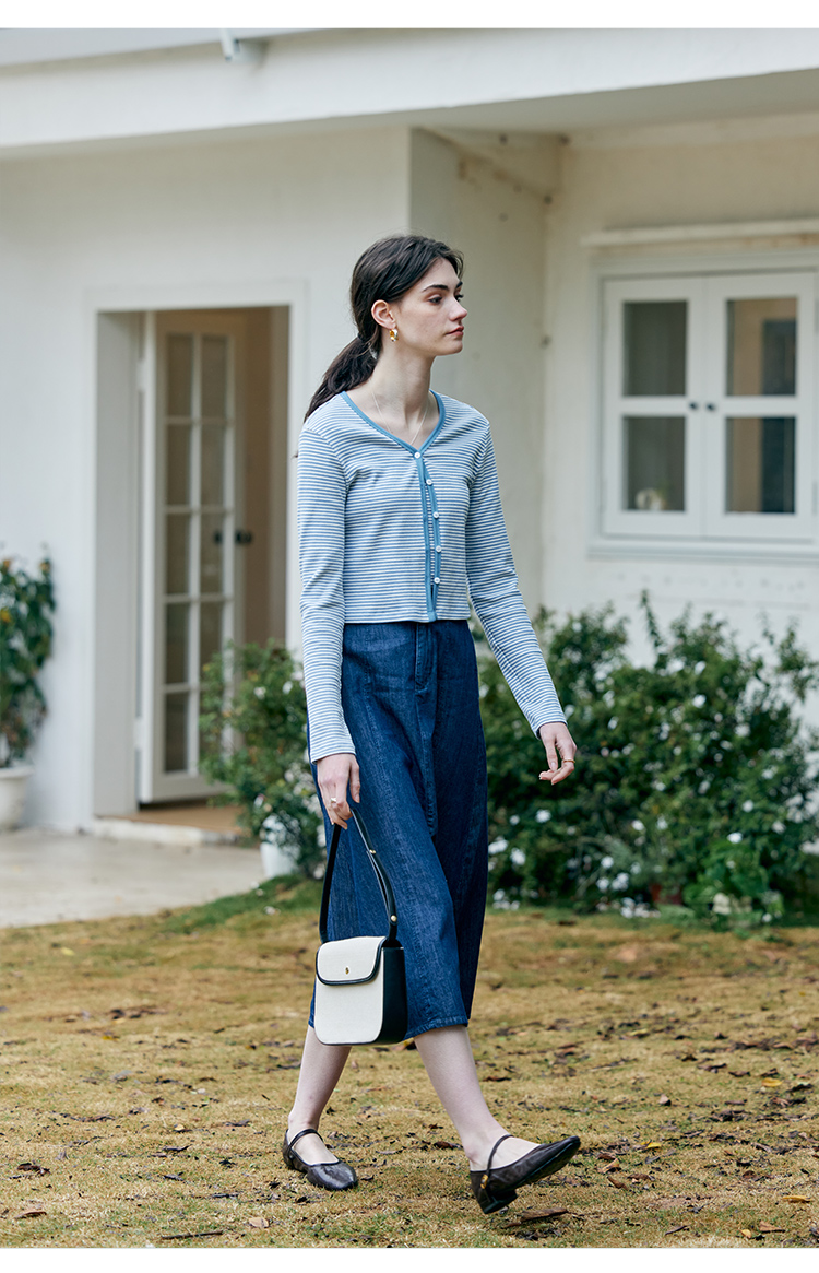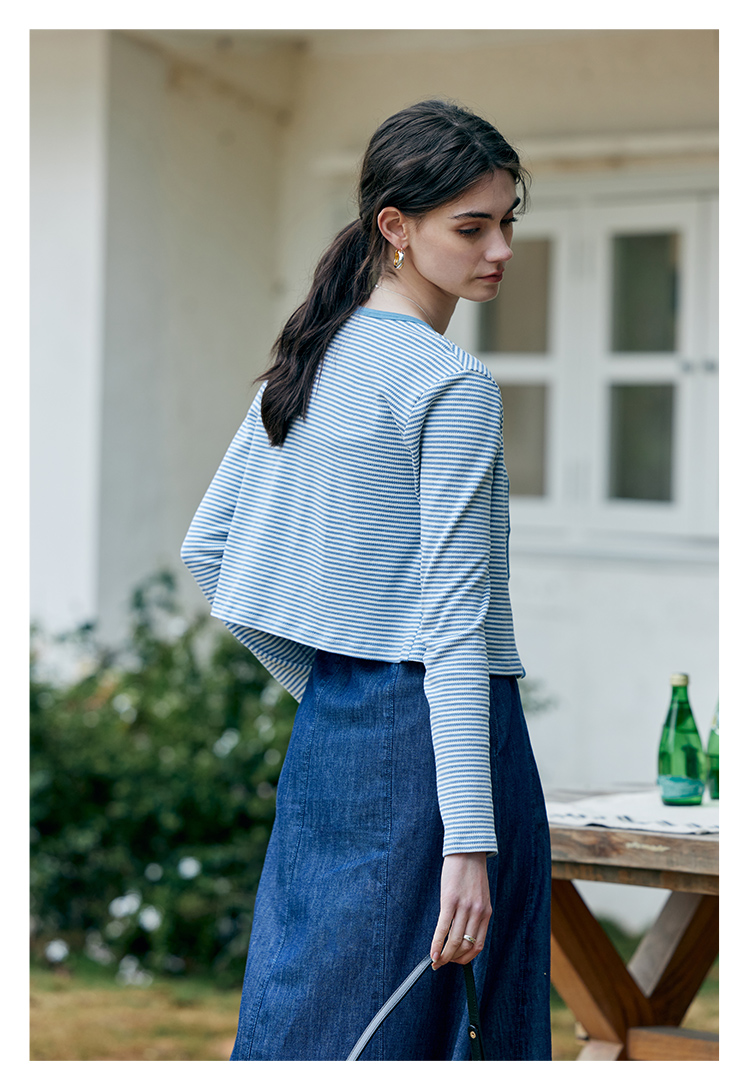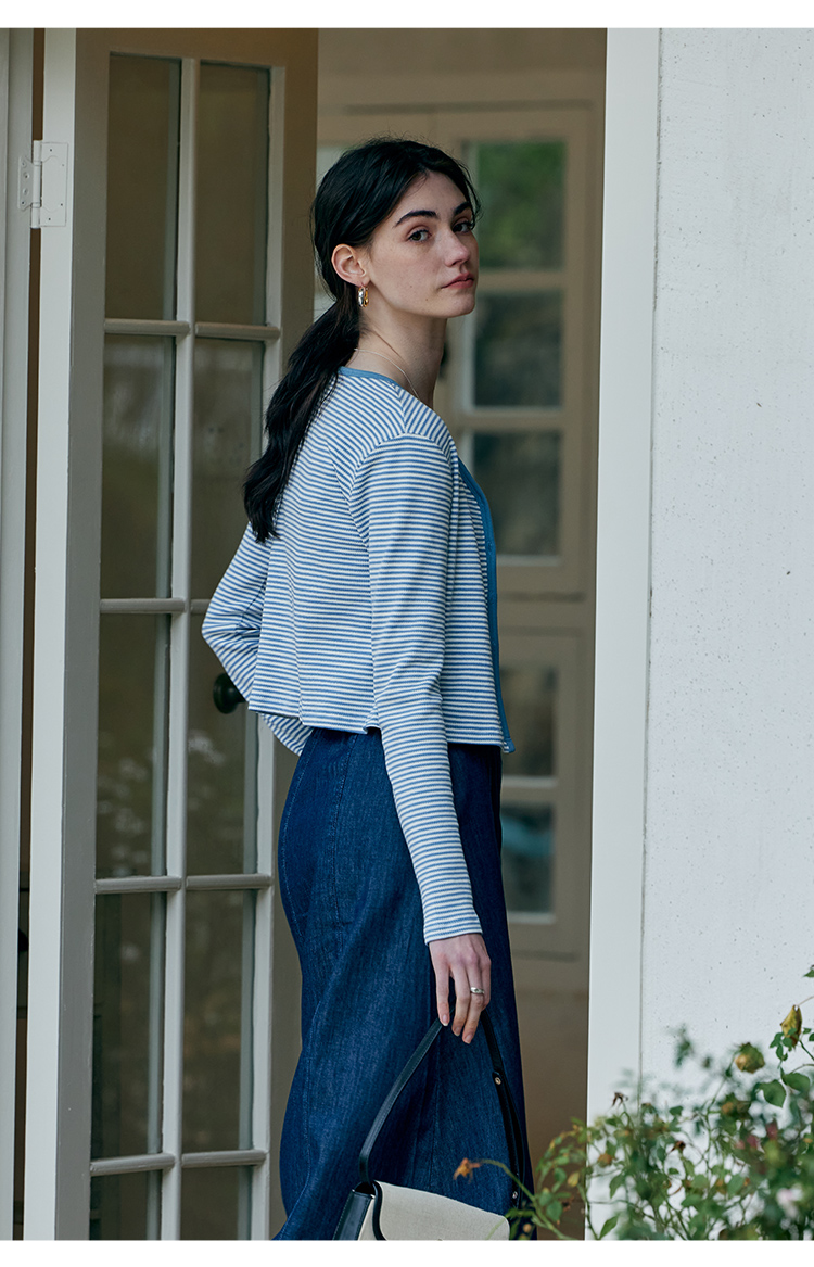 HeyDress蓝色条纹针织开衫女春夏法式撞色设计V领吊带背心两件套