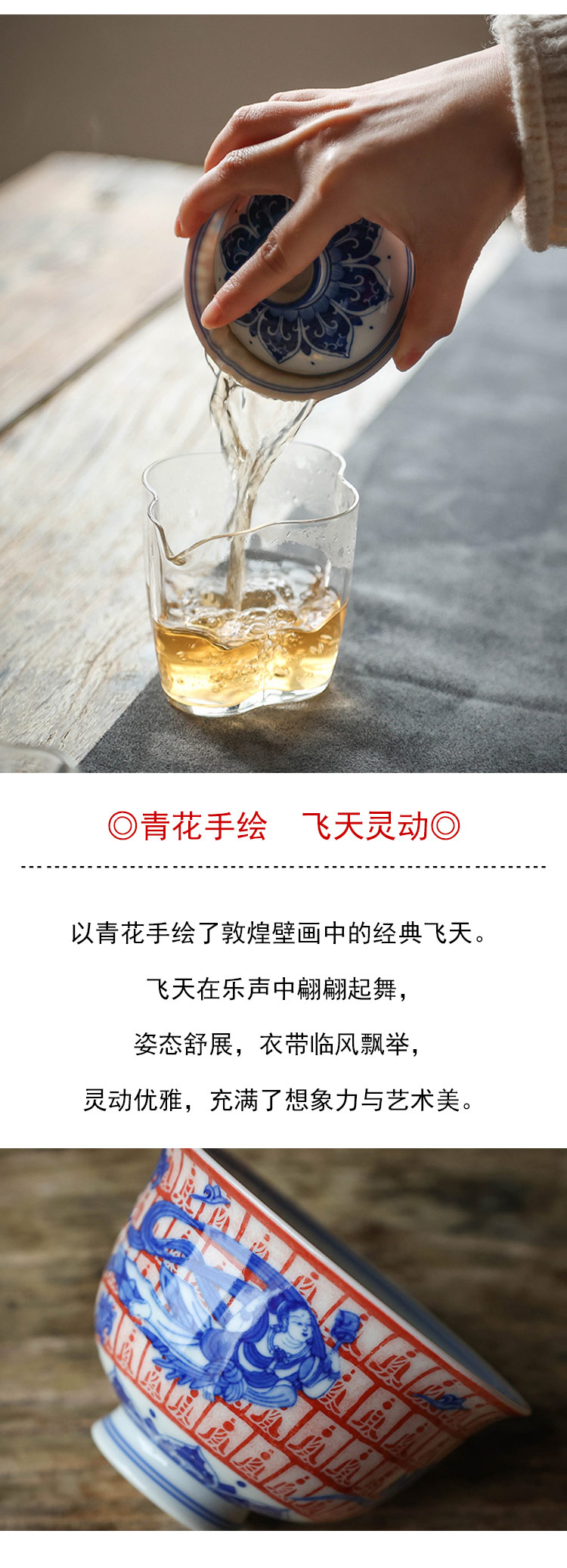 茶香记 景德镇詺兮清窑飞天千佛小盖碗120ml敦煌联名收藏款古典风雅