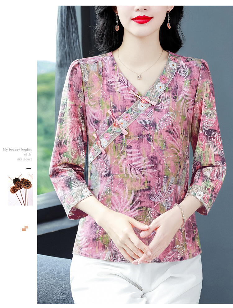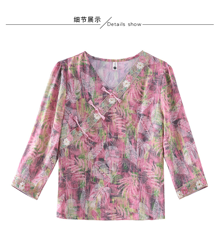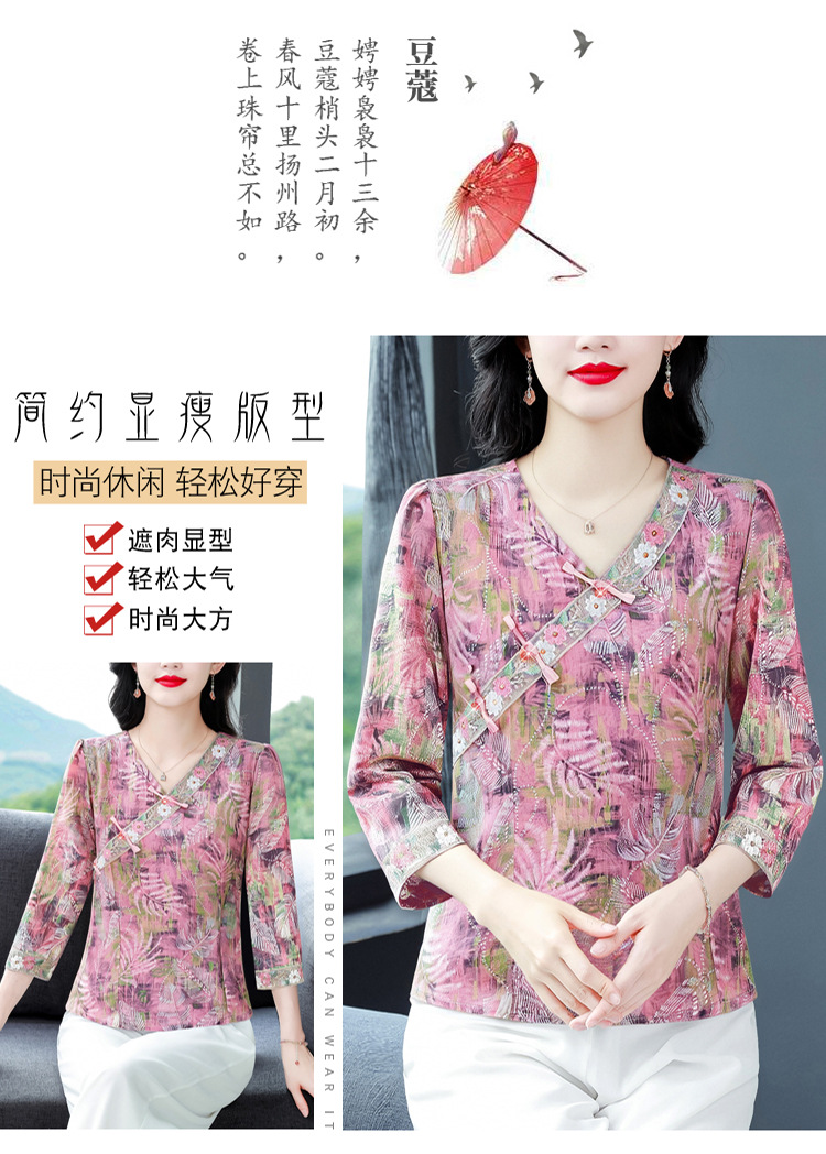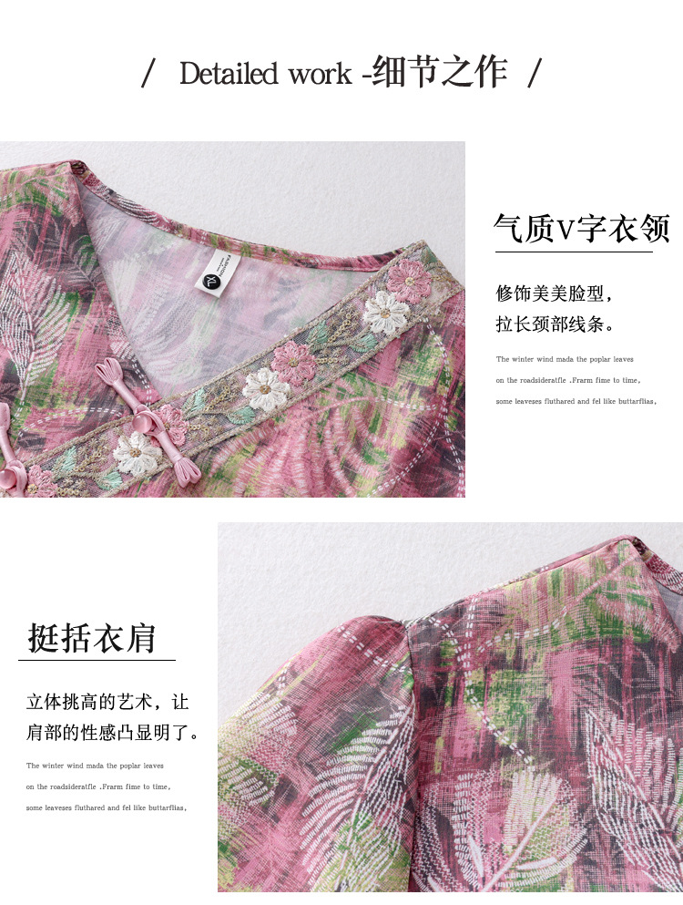 KQL B41N6589复古国风短袖翻领印花宽松显瘦修身大码上衣
