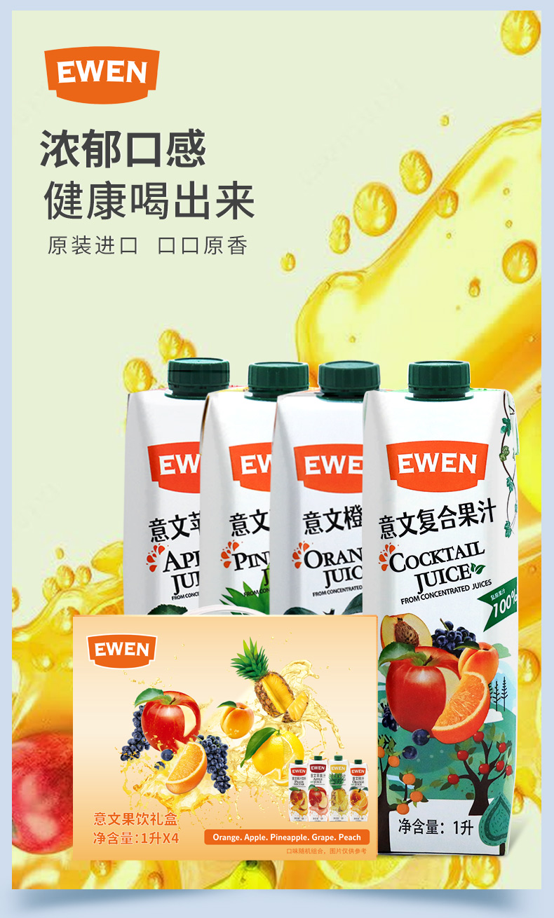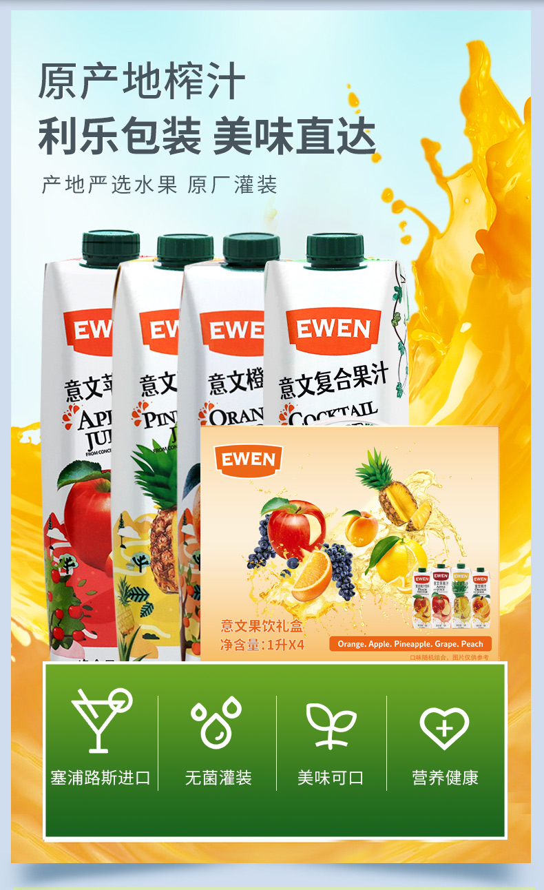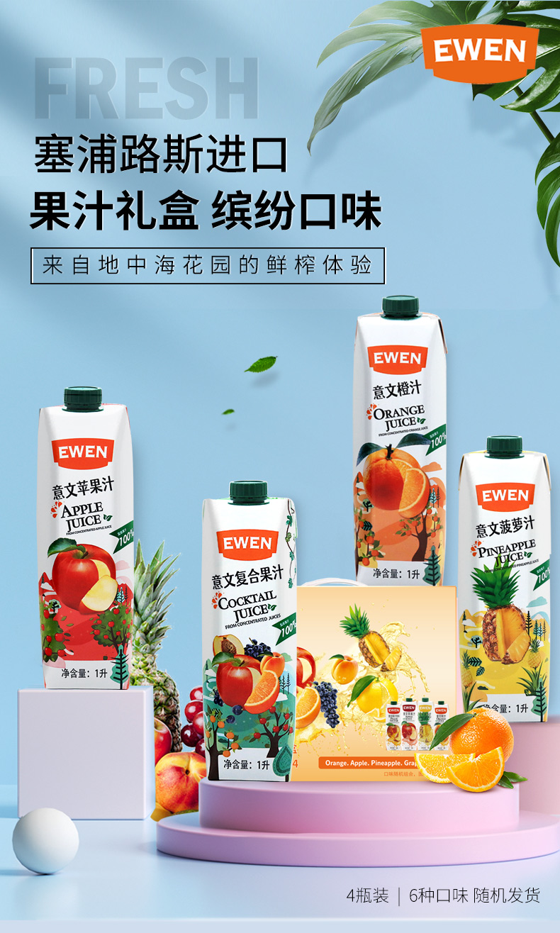 塞浦路斯进口意文果汁礼盒装1L*4盒口味随机组合