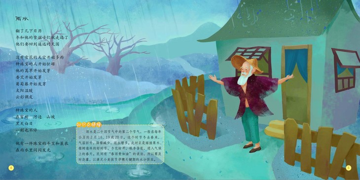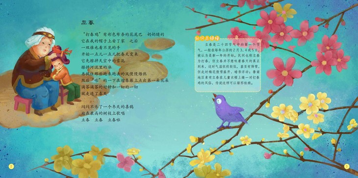 “二十四节气”是我们的祖先在劳动中积累起来的智慧结晶,是我国农历中表示季节变迁的二十四个特定节令。这是一个既传统又凝重的主题,但作者用孩子们易于接受并理解的儿童诗的表述方式写出了那些隐藏在节气后面的故事——充满了童真、童趣!