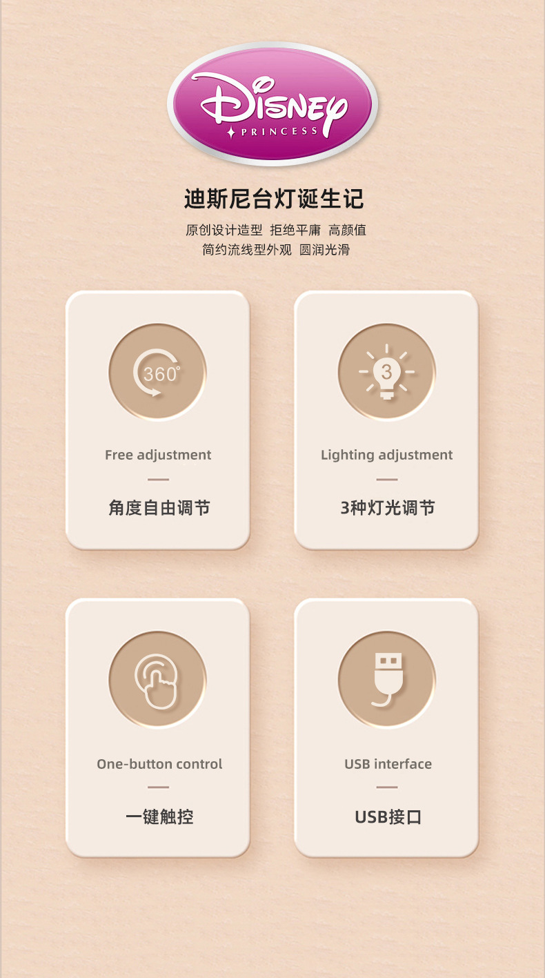 迪士尼正版护眼阅读灯家用充插两用卡通学生专用桌面护眼小台灯