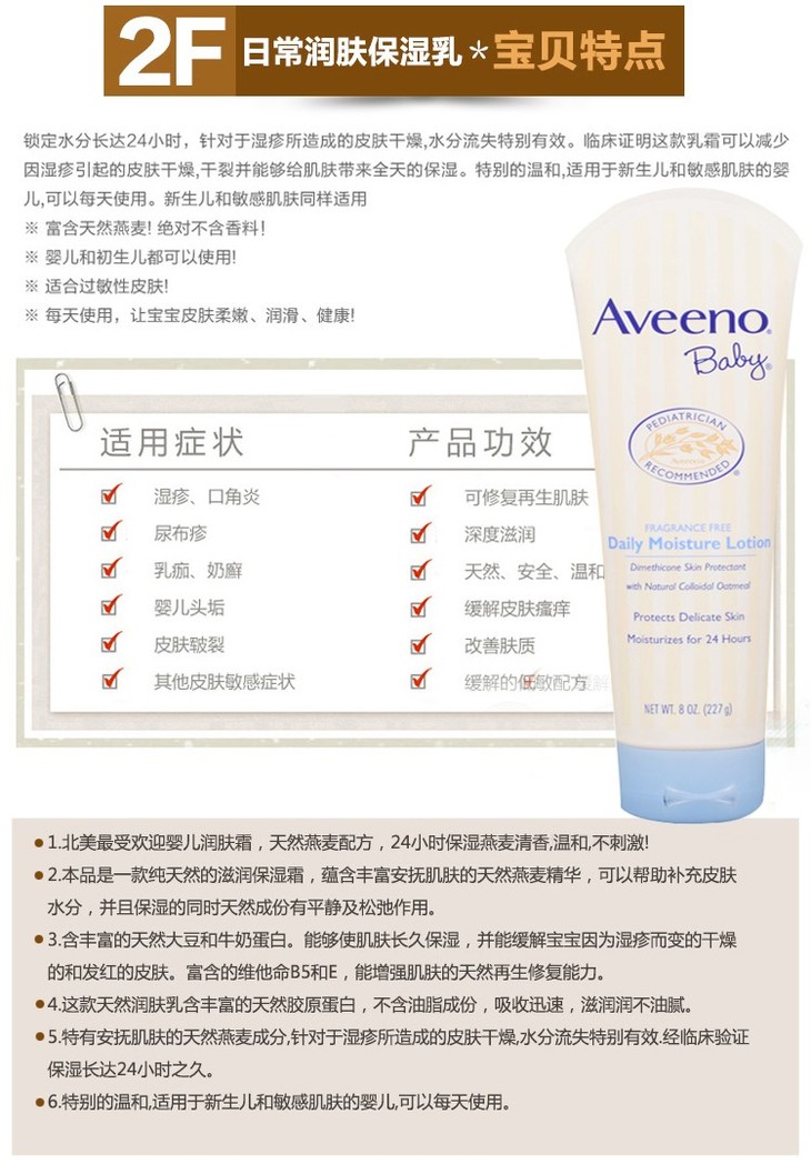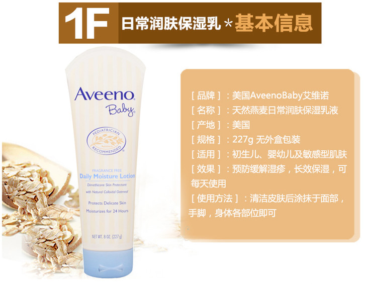 美国艾惟诺Aveeno无香婴儿燕麦保湿润肤乳227g