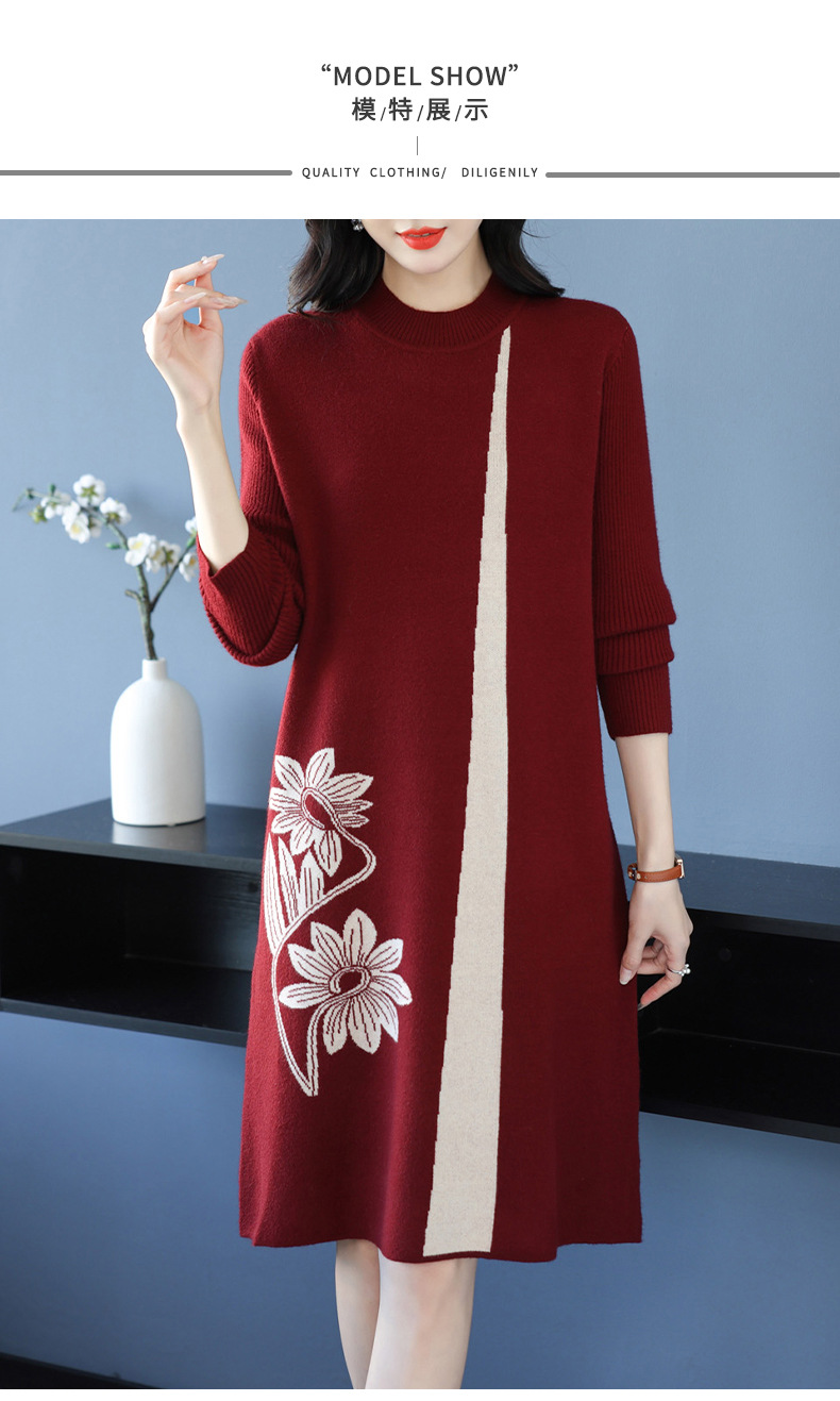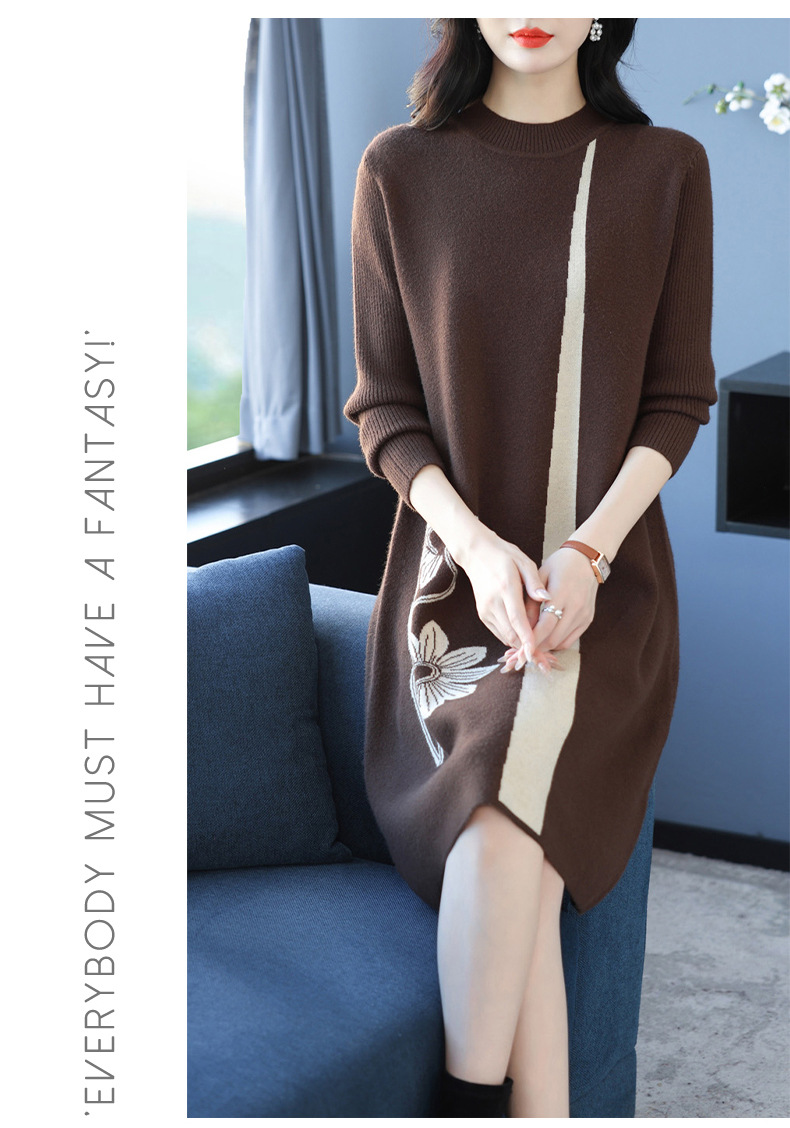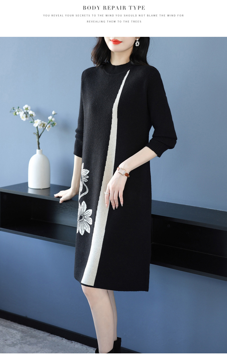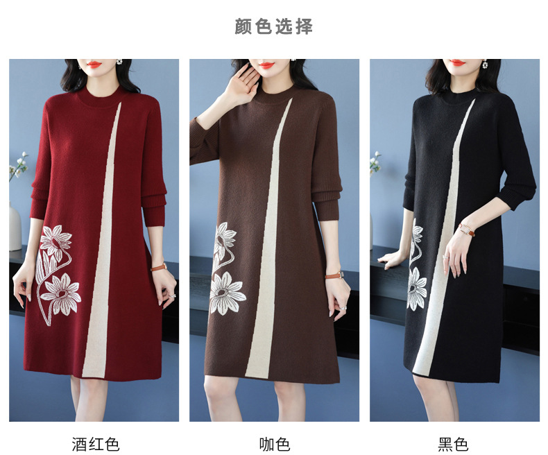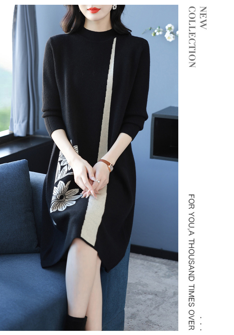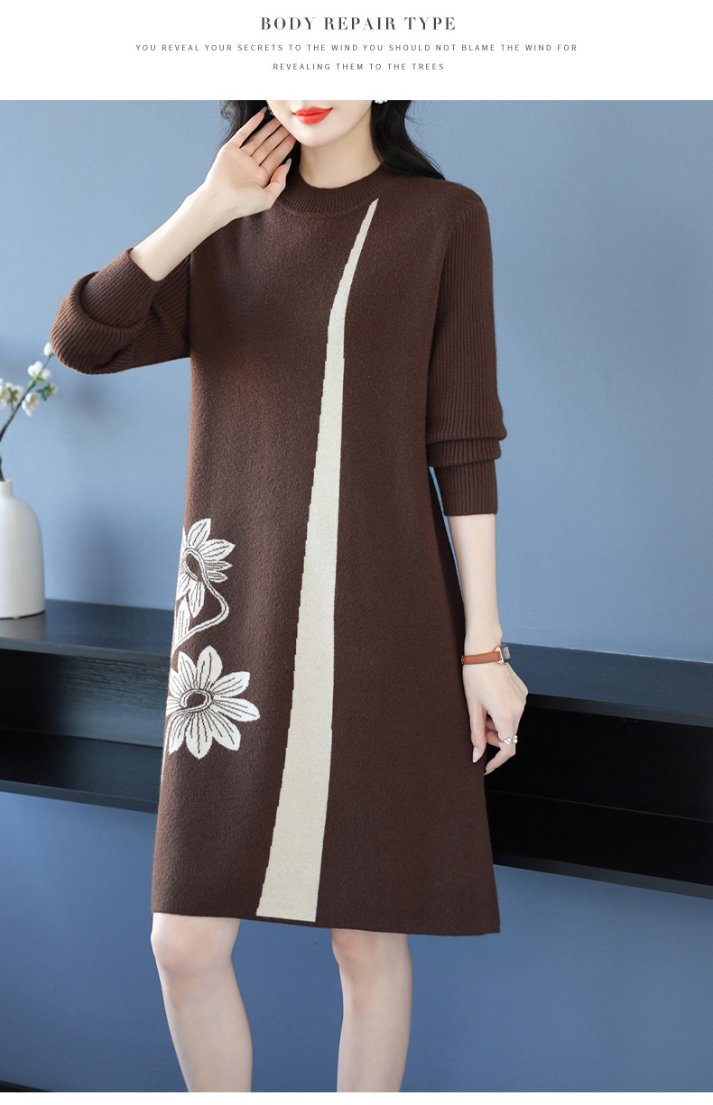 CC-16-9207秋冬过膝连衣裙子女大码妈妈中长款打底上衣宽松遮肚子针织衫
