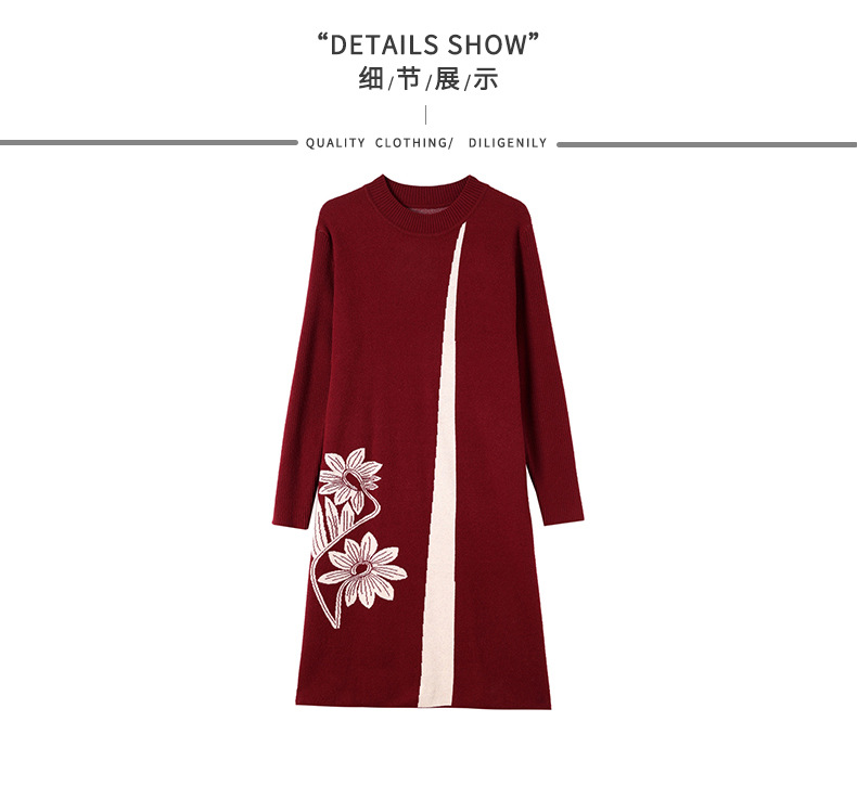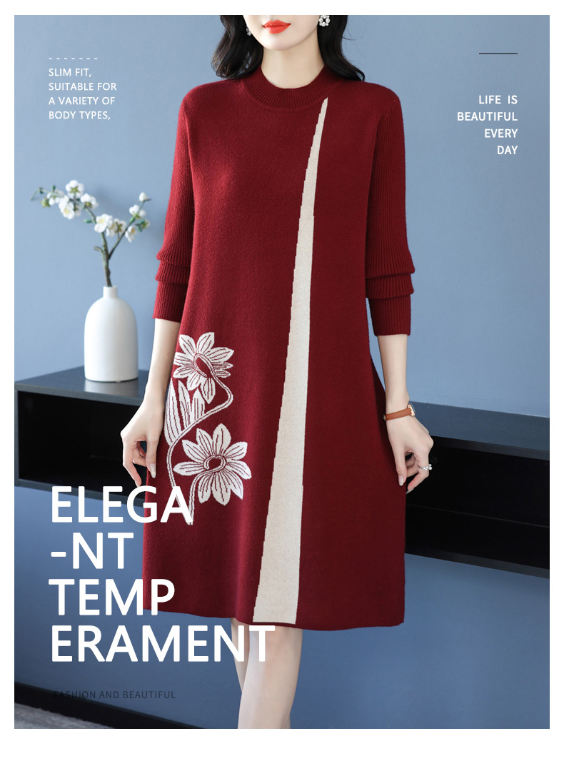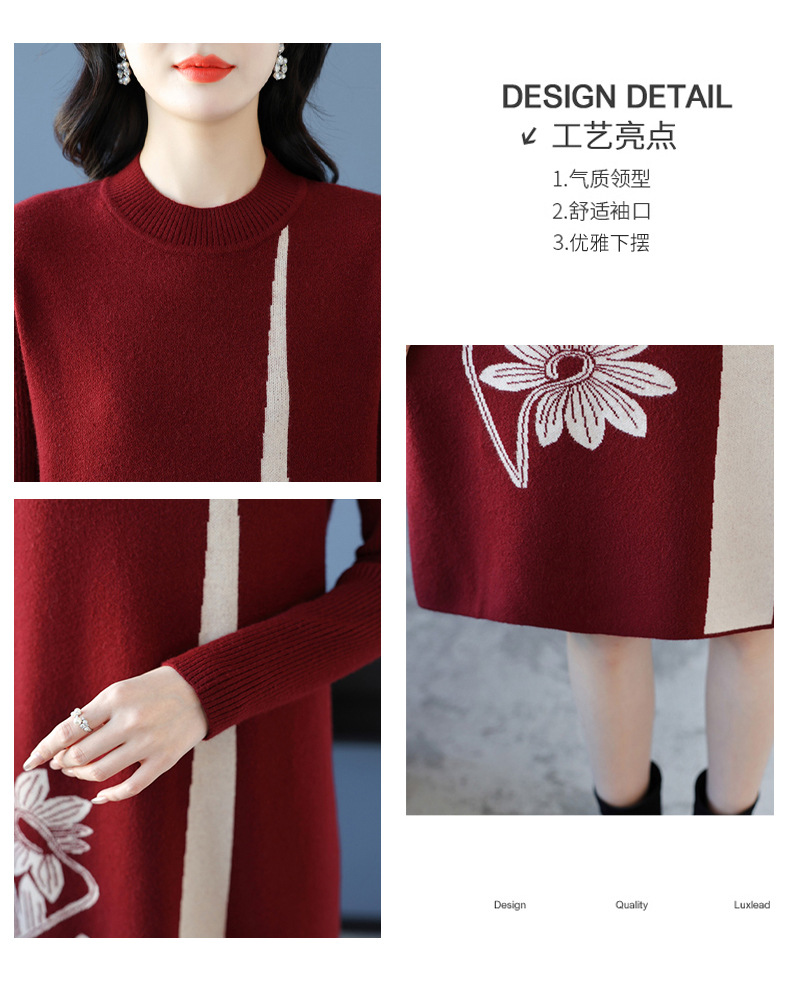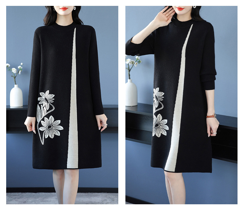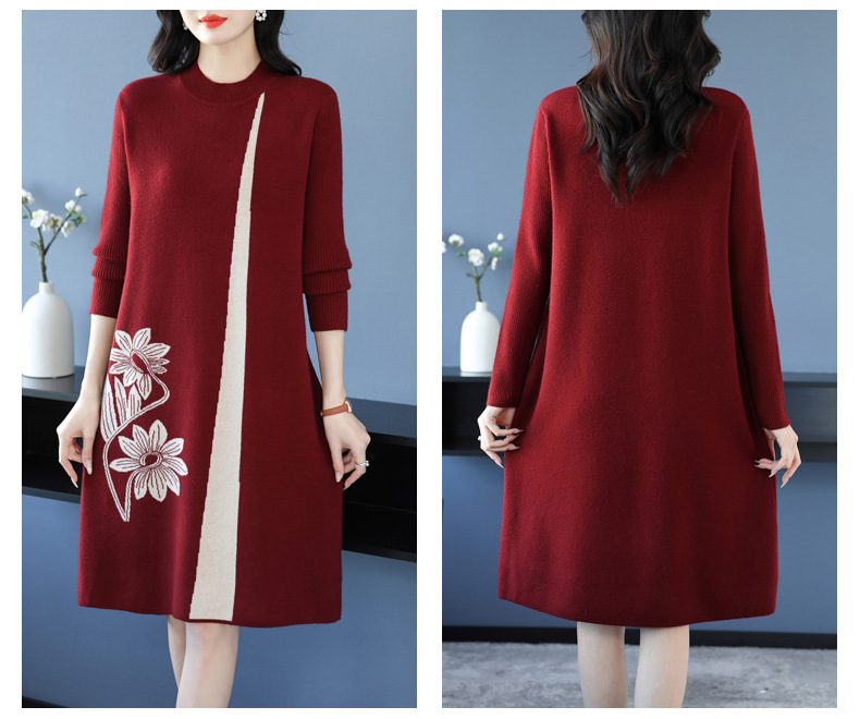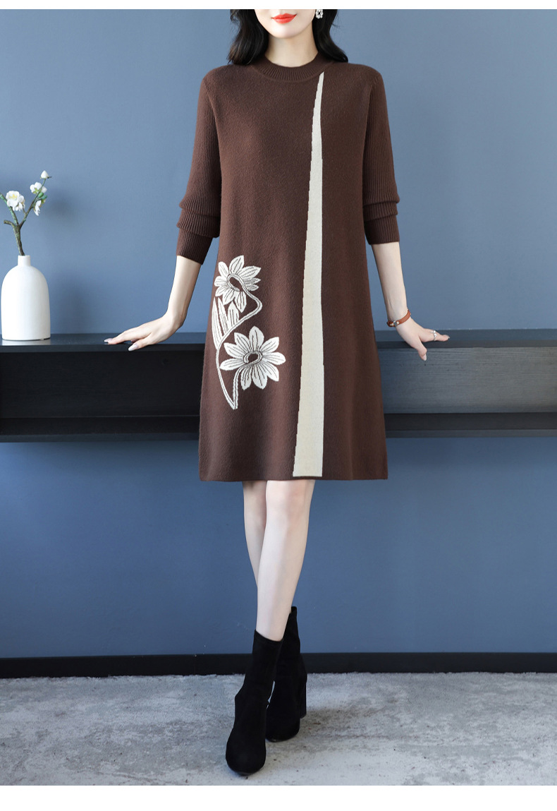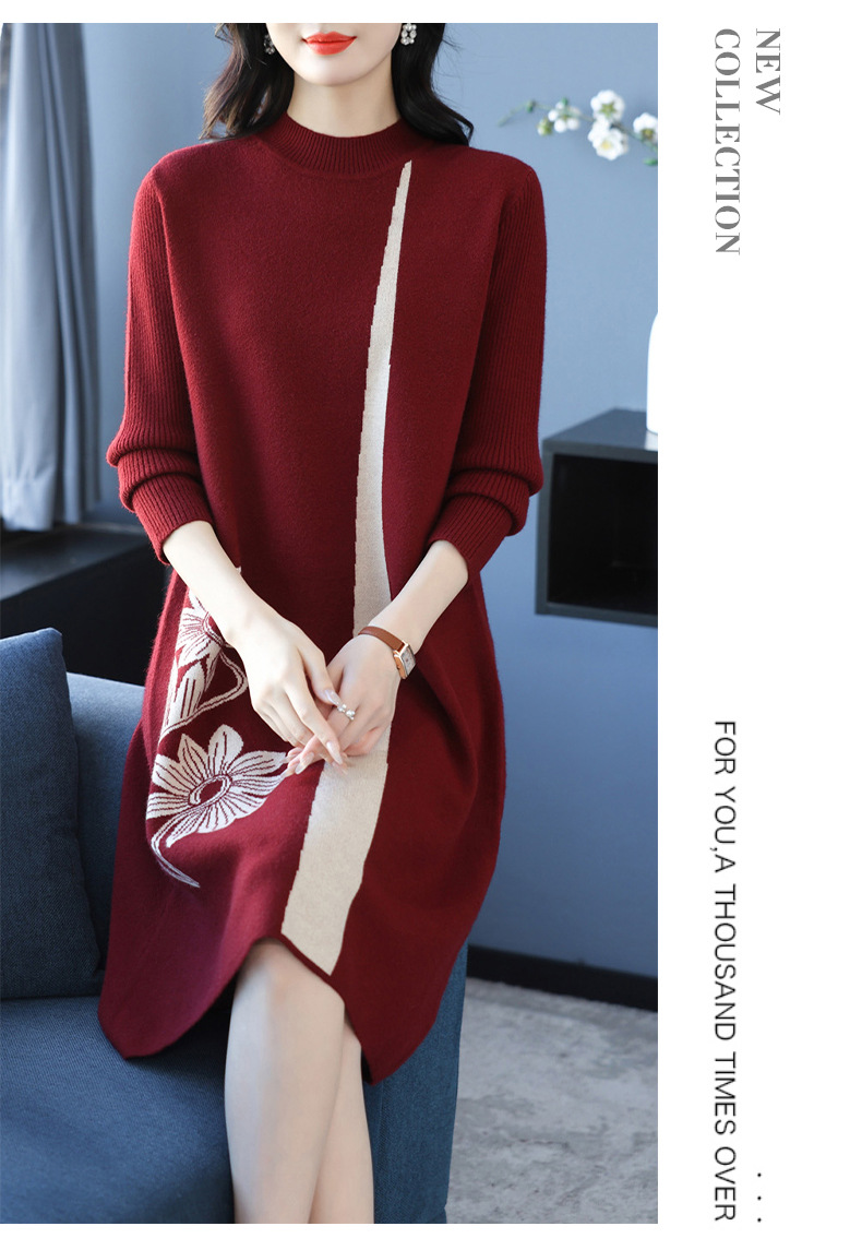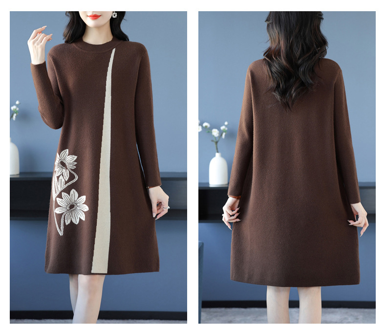CC-16-9207秋冬过膝连衣裙子女大码妈妈中长款打底上衣宽松遮肚子针织衫