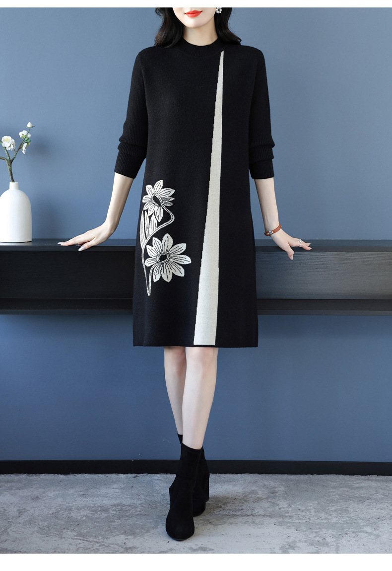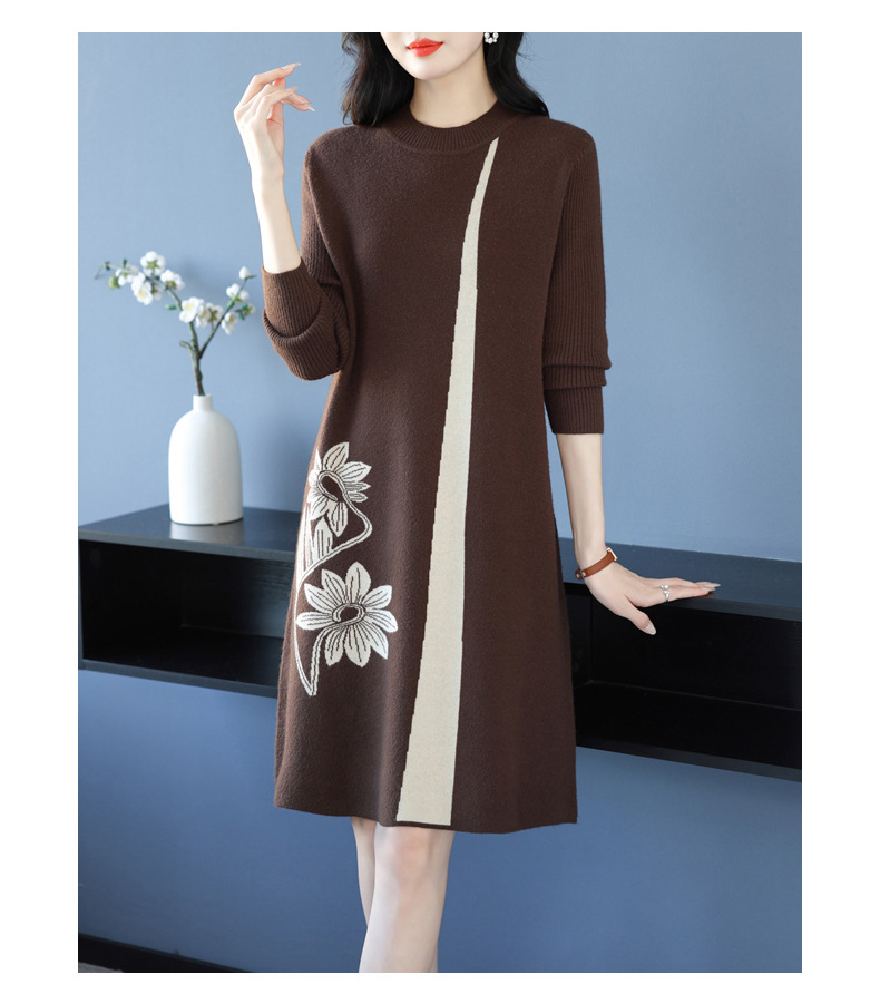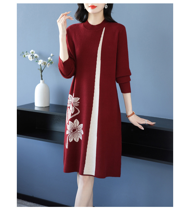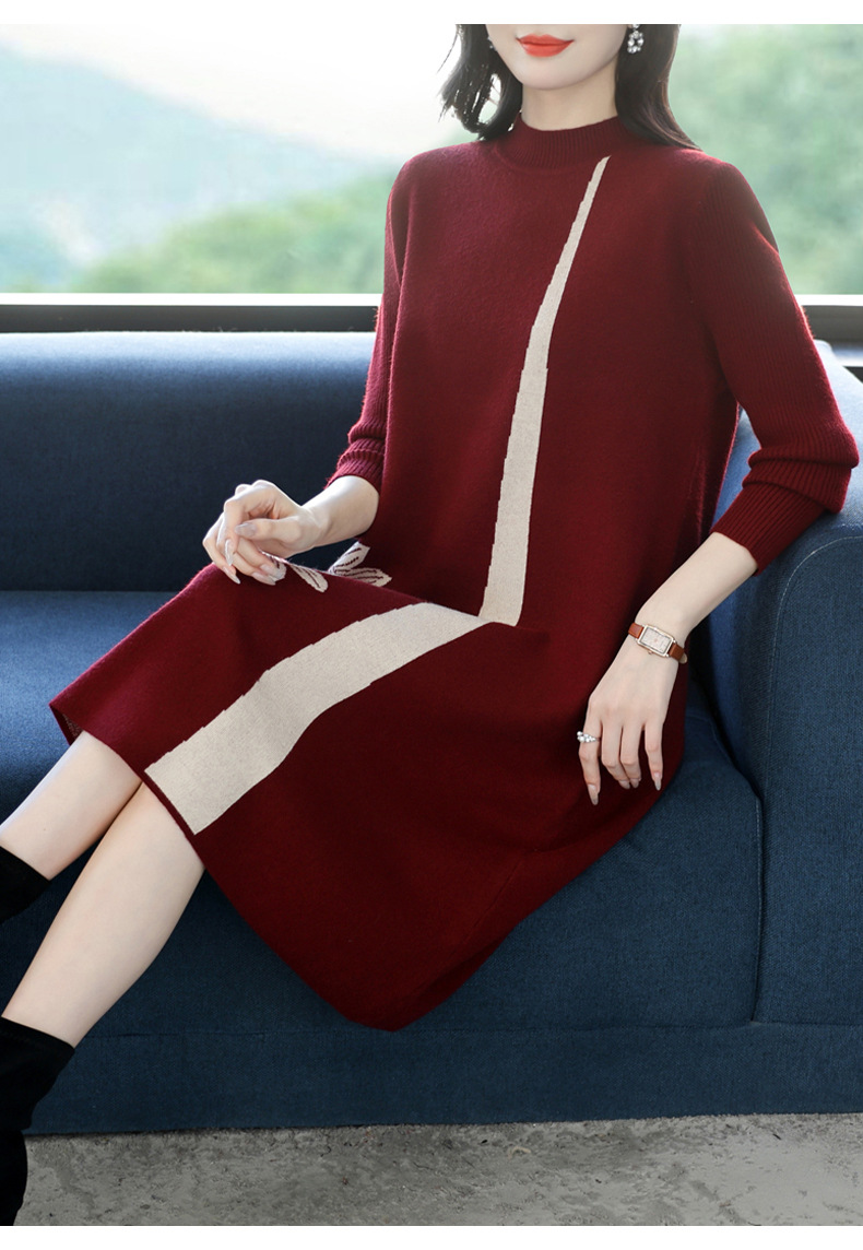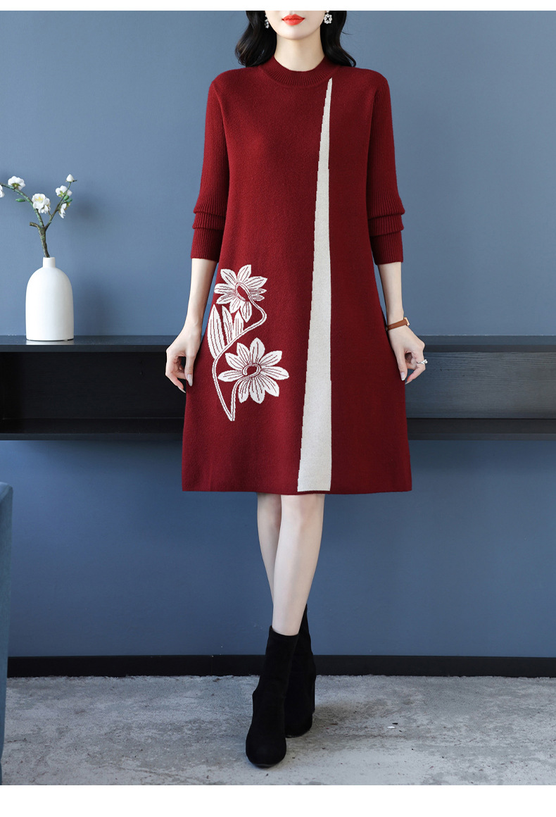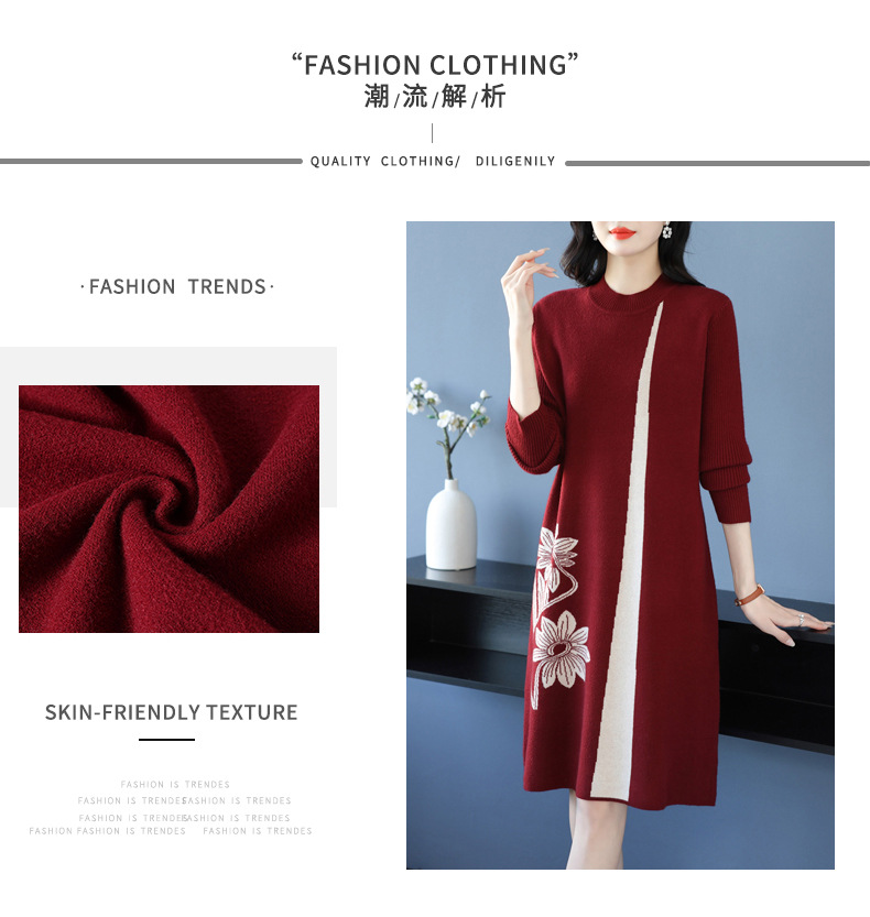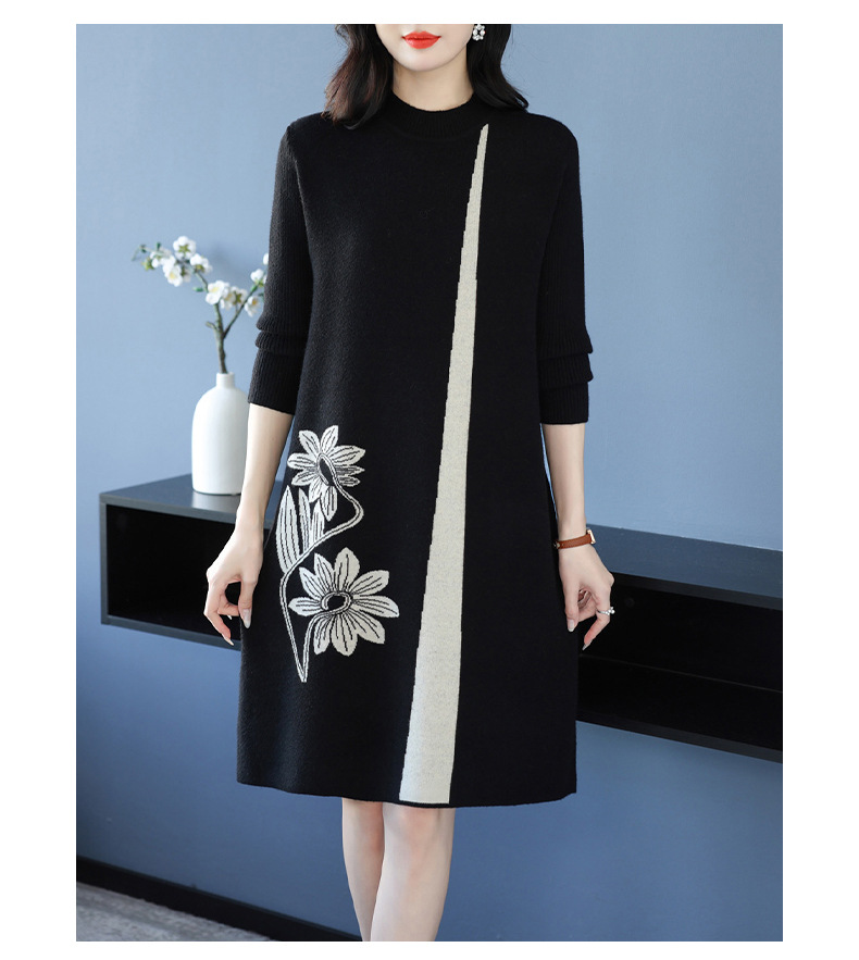 CC-16-9207秋冬过膝连衣裙子女大码妈妈中长款打底上衣宽松遮肚子针织衫