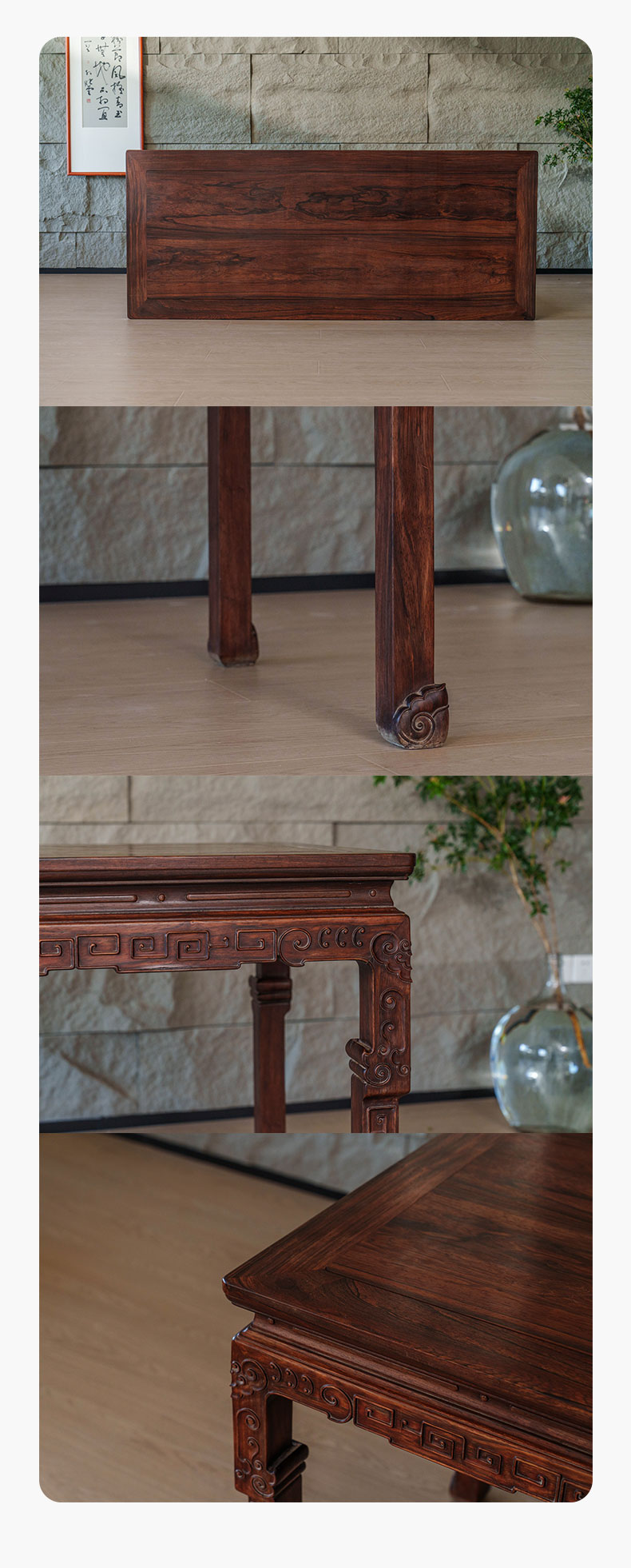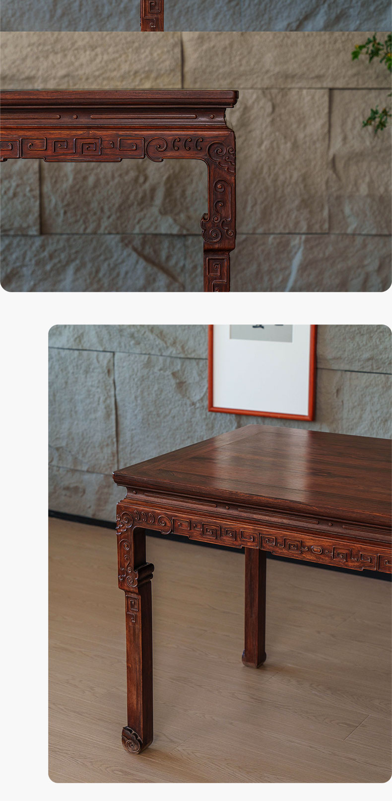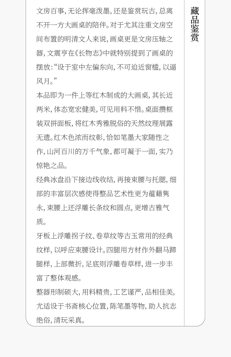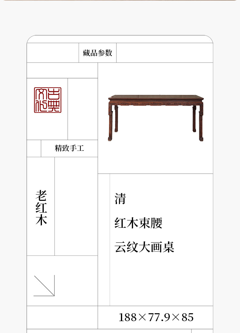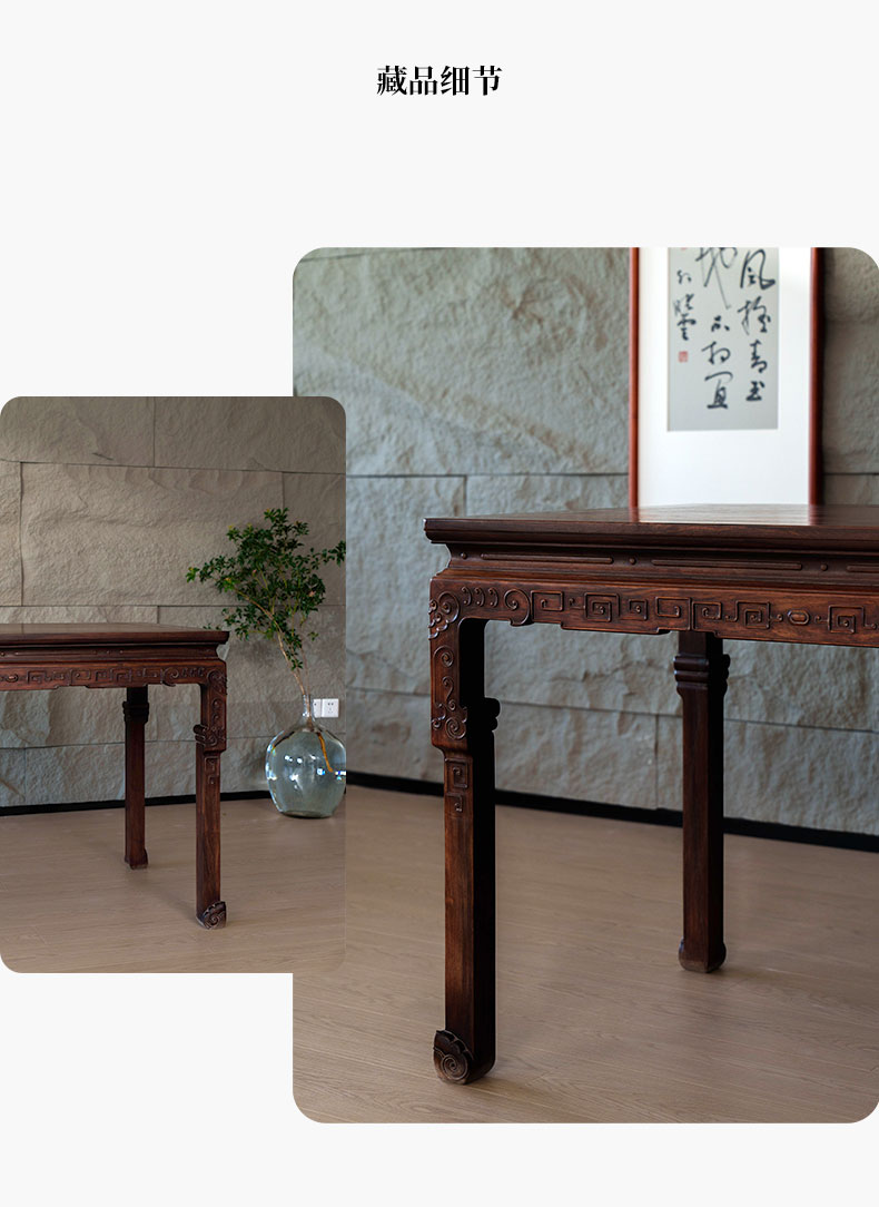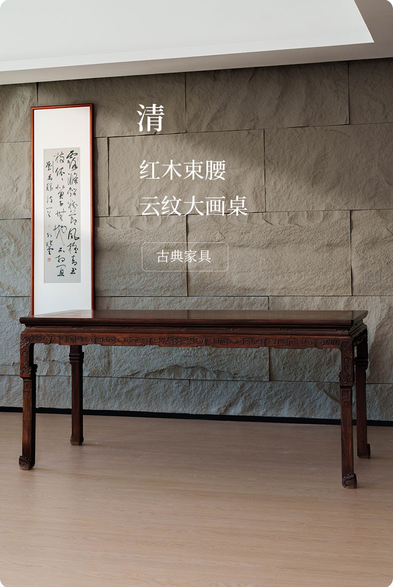 清 红木束腰云纹大画桌