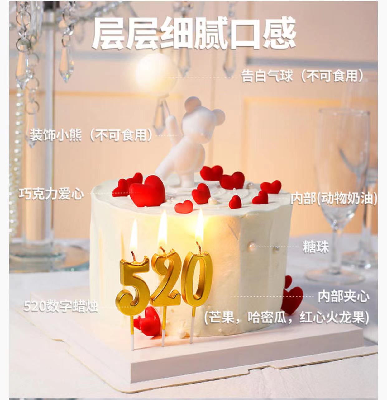 告白小熊 发光气球动物奶油女神蛋糕