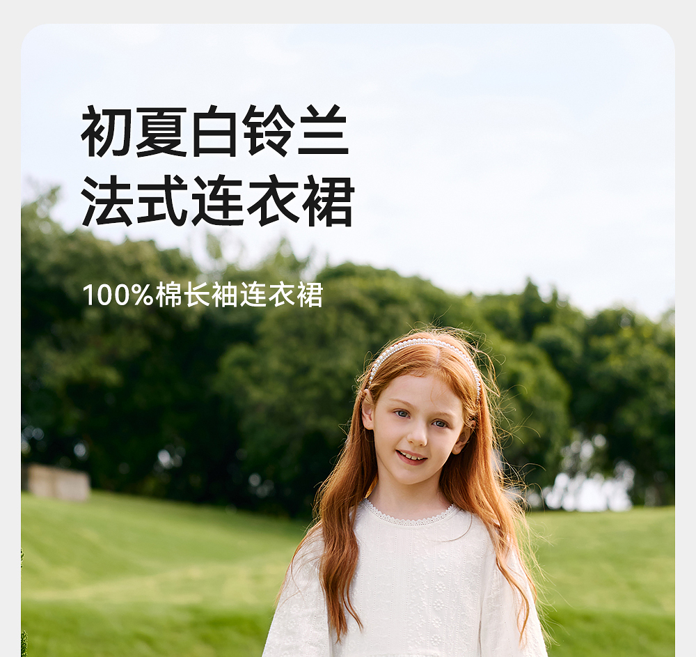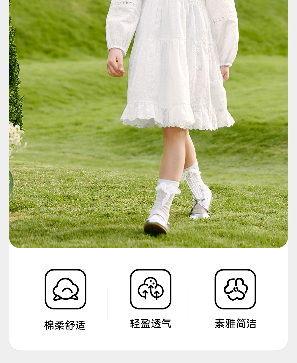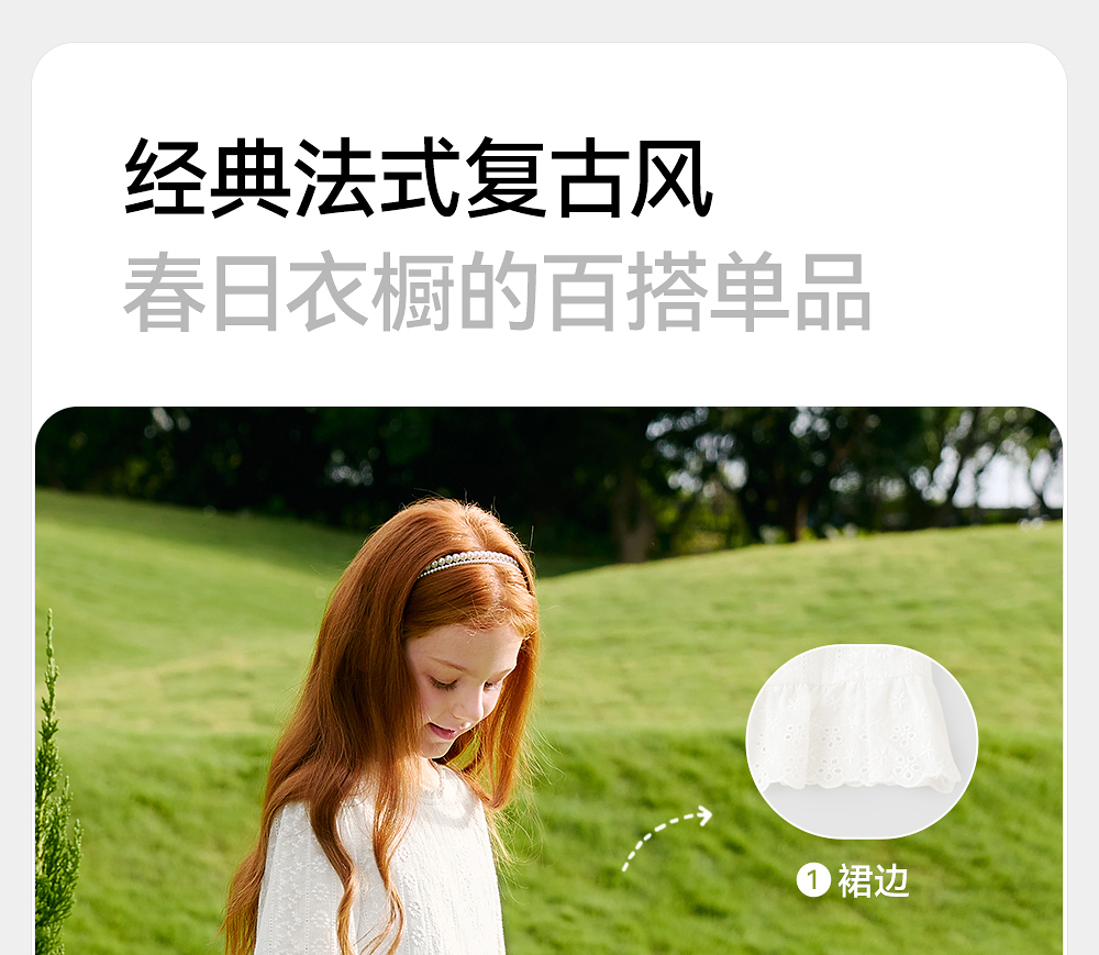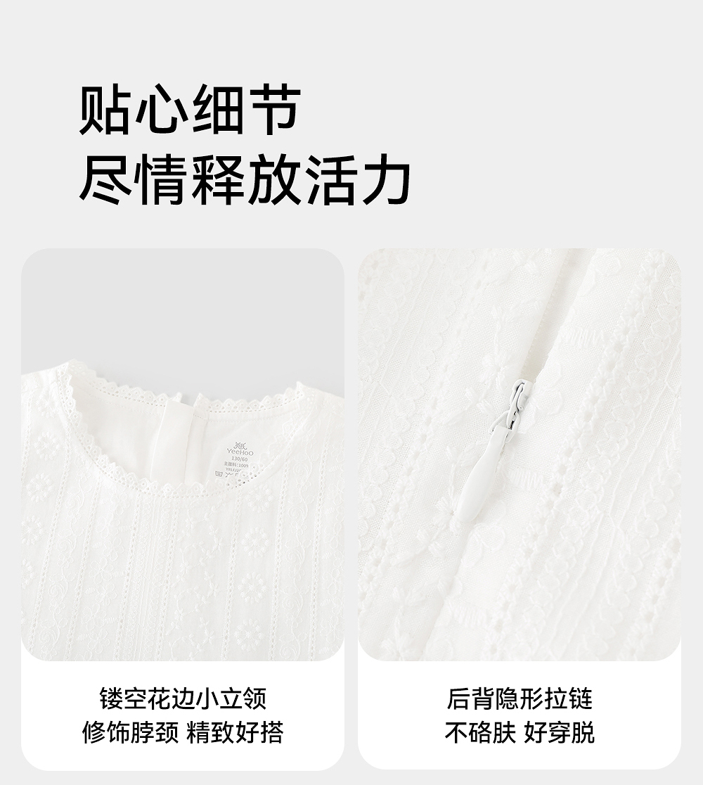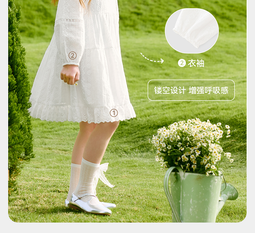 英氏女童裙子夏季透气网纱女宝白色公主裙中大童裙子2025新款