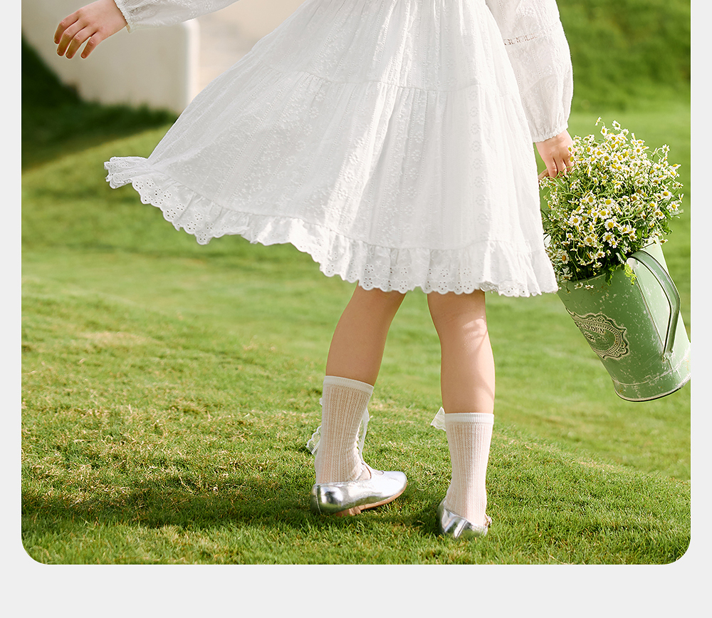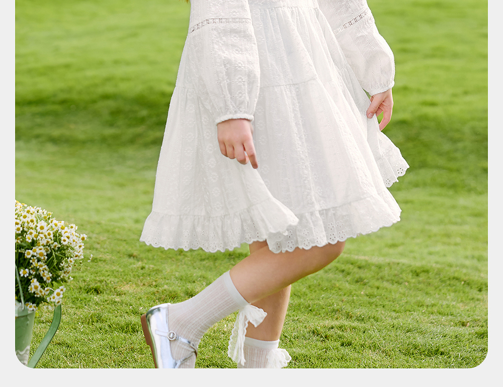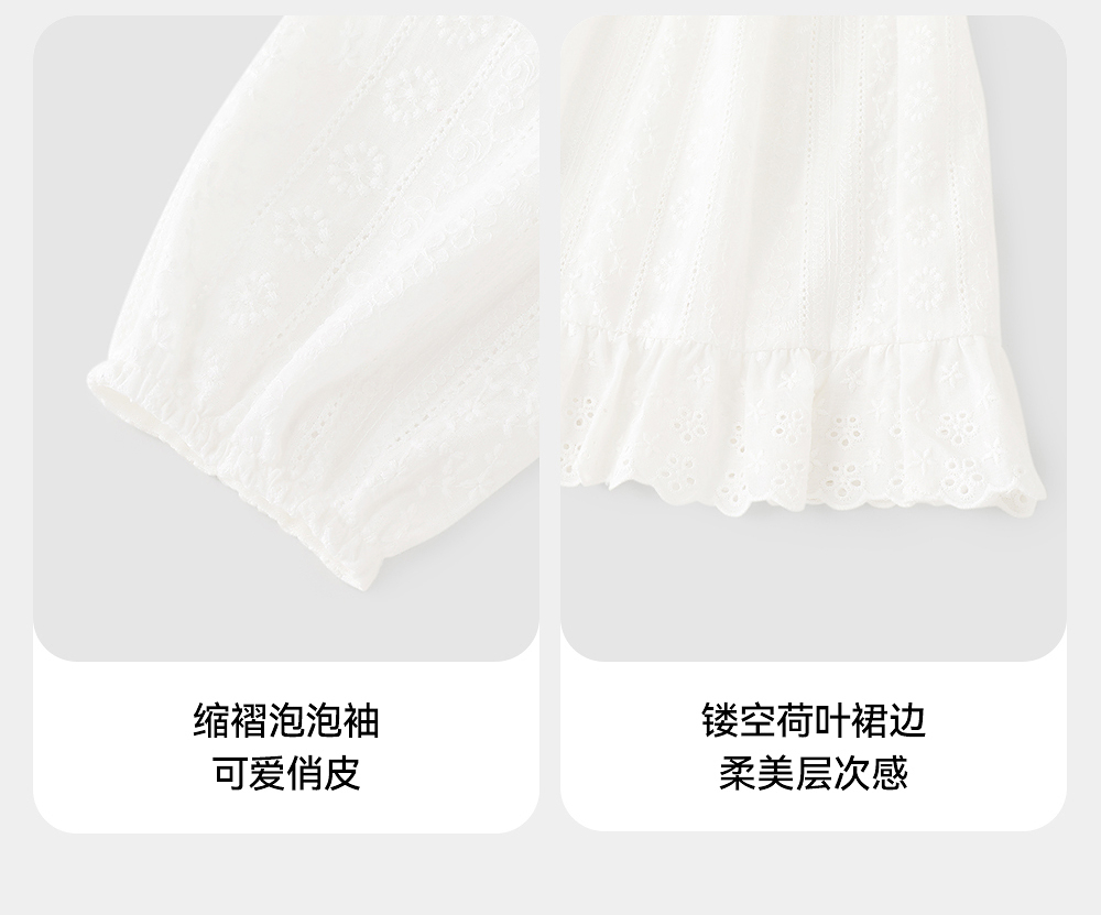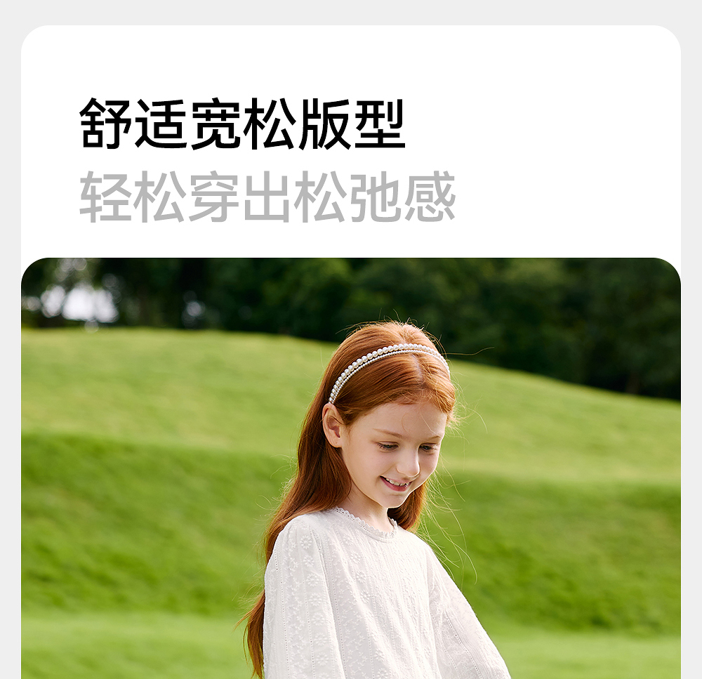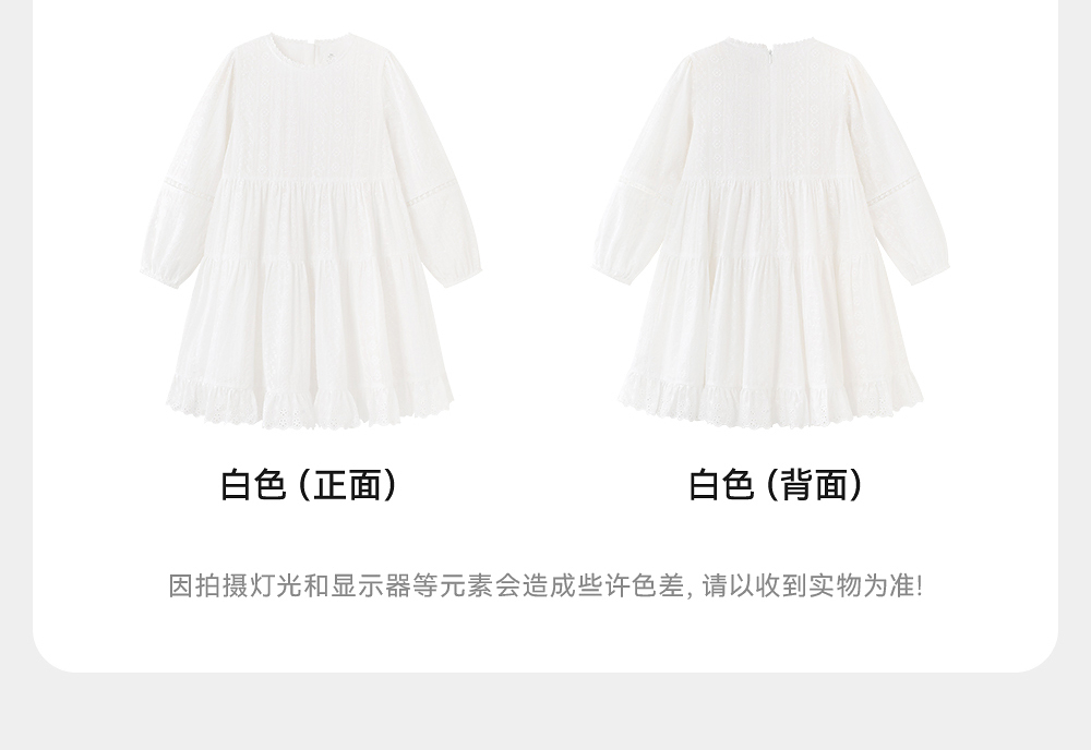 英氏女童裙子夏季透气网纱女宝白色公主裙中大童裙子2025新款