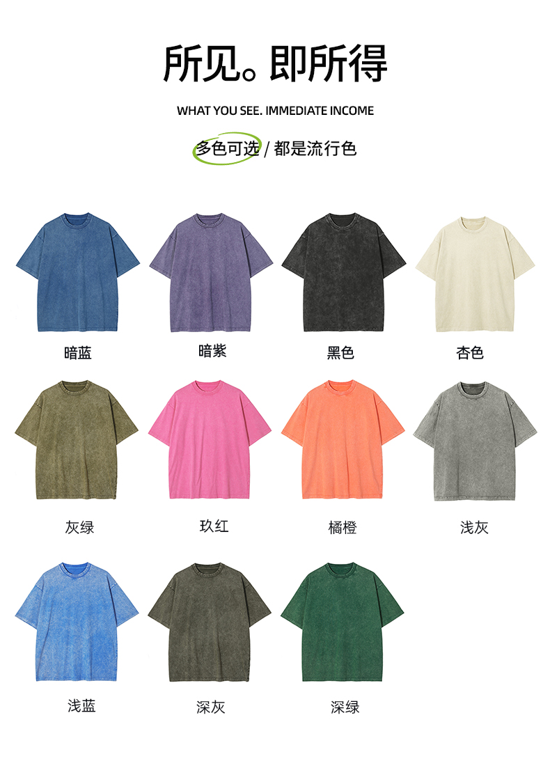 自由基地夏季新款250克洗水落肩炒雪花复古重磅纯棉圆领短袖T恤衫(男女同款)NMT-2133
