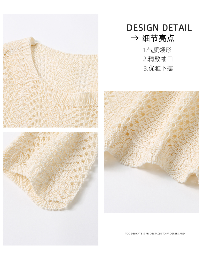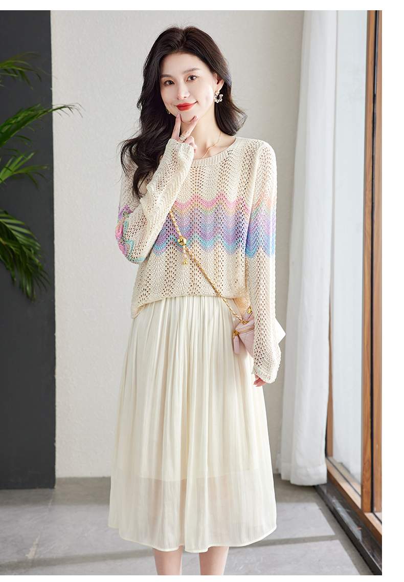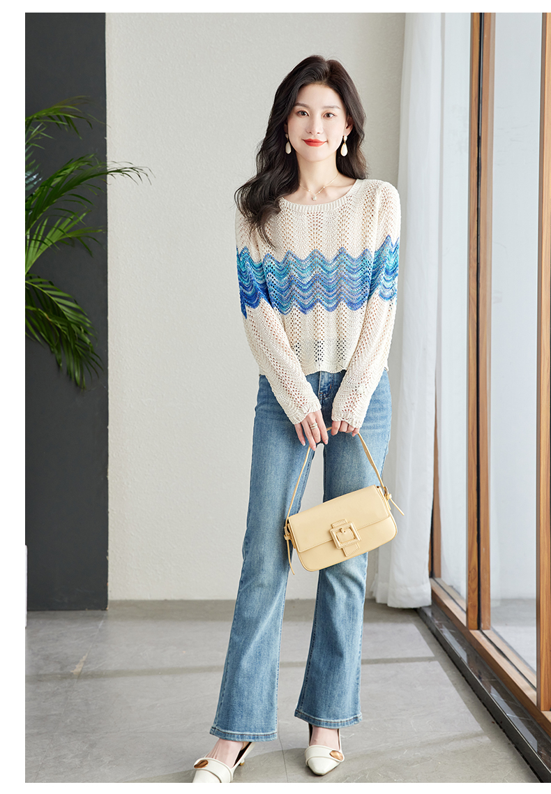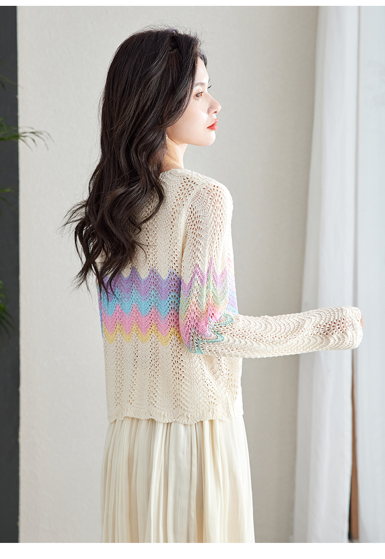 长袖薄款毛衣,防晒彩虹条拼接镂空罩衫上衣HR-MLLJS6692