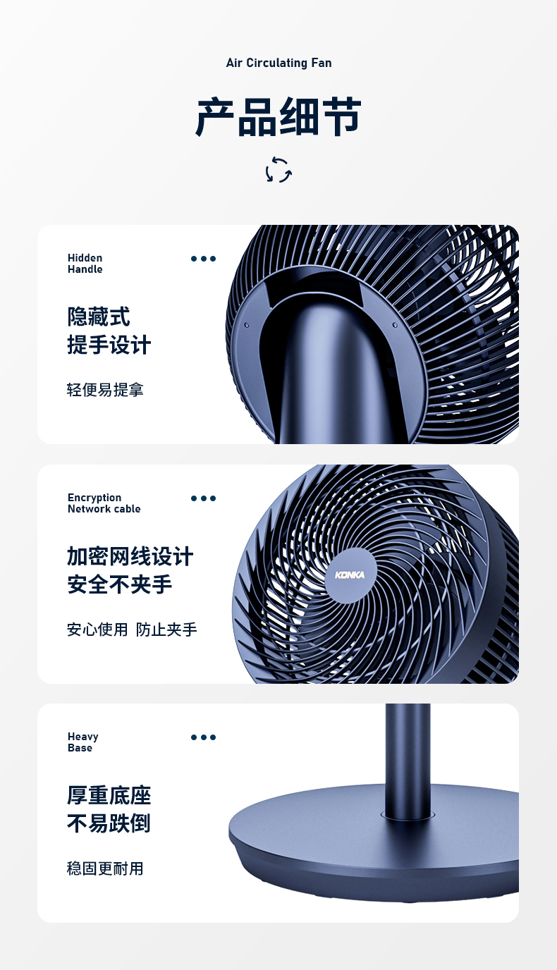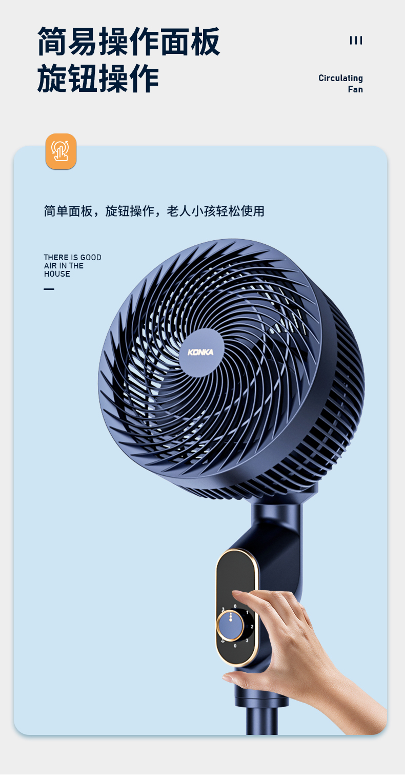 【整屋循环!立体送风!】康佳机械/遥控循环扇 空调好伴侣节能省电风扇 三档调节广角摇摆送风 省电低音低噪家用卧室宿舍台式扇