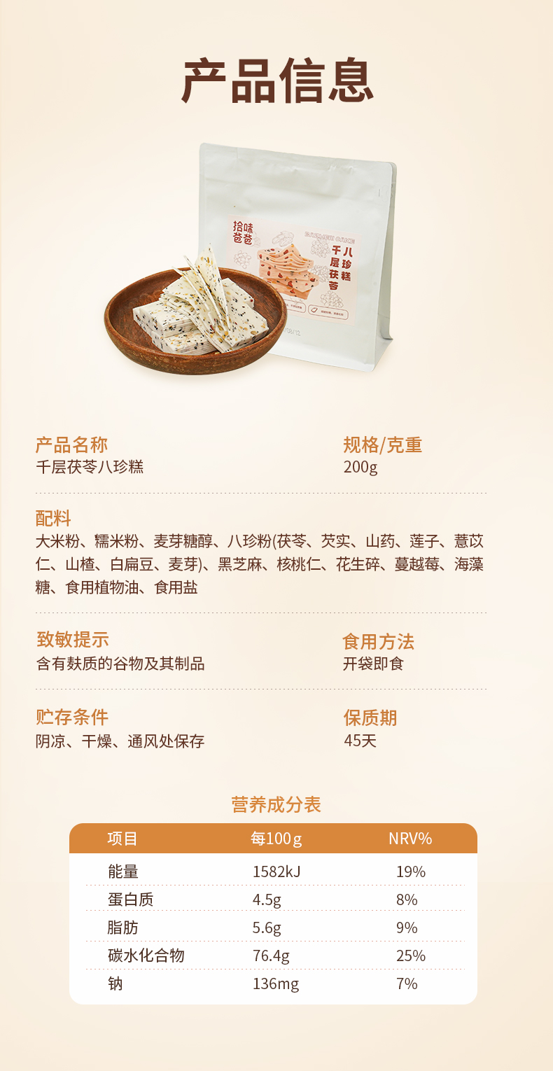 拾爸家⠀千层茯苓八珍糕 0添加休闲零食早餐点心 200g/一袋