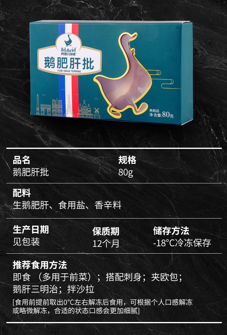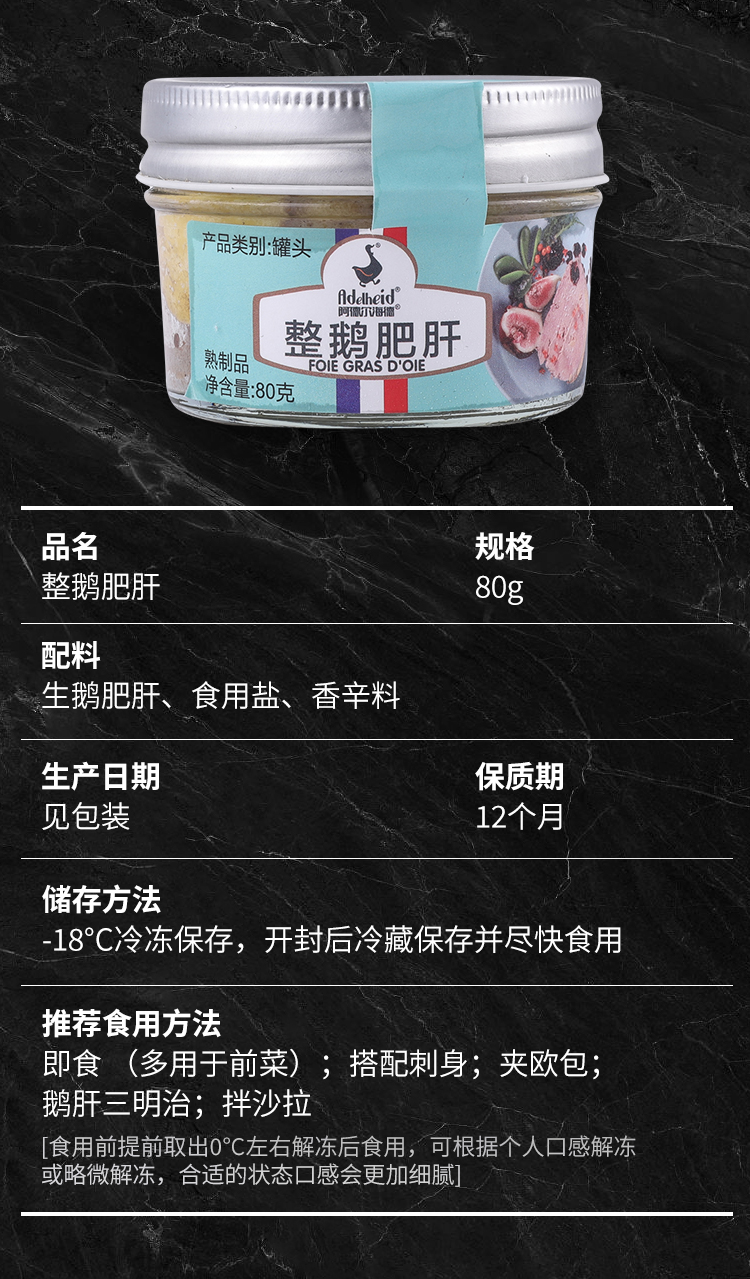 阿德尔海德生酮法式鹅肥肝批/整鹅肥肝/红酒蓝莓鹅肝80/90g