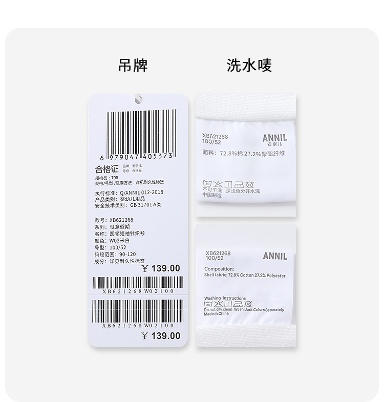 【实体店同款】男童圆领短袖针织衫夏季新款安奈儿童装XB621268