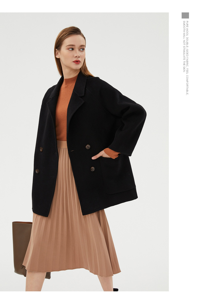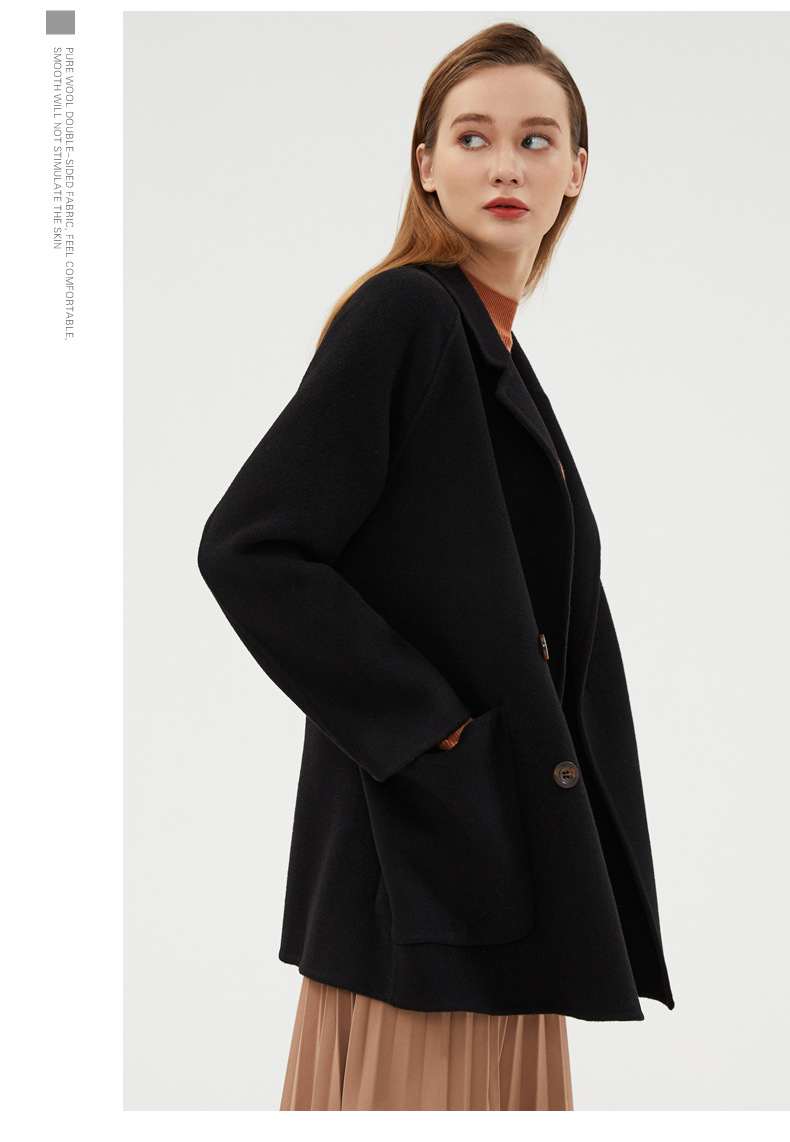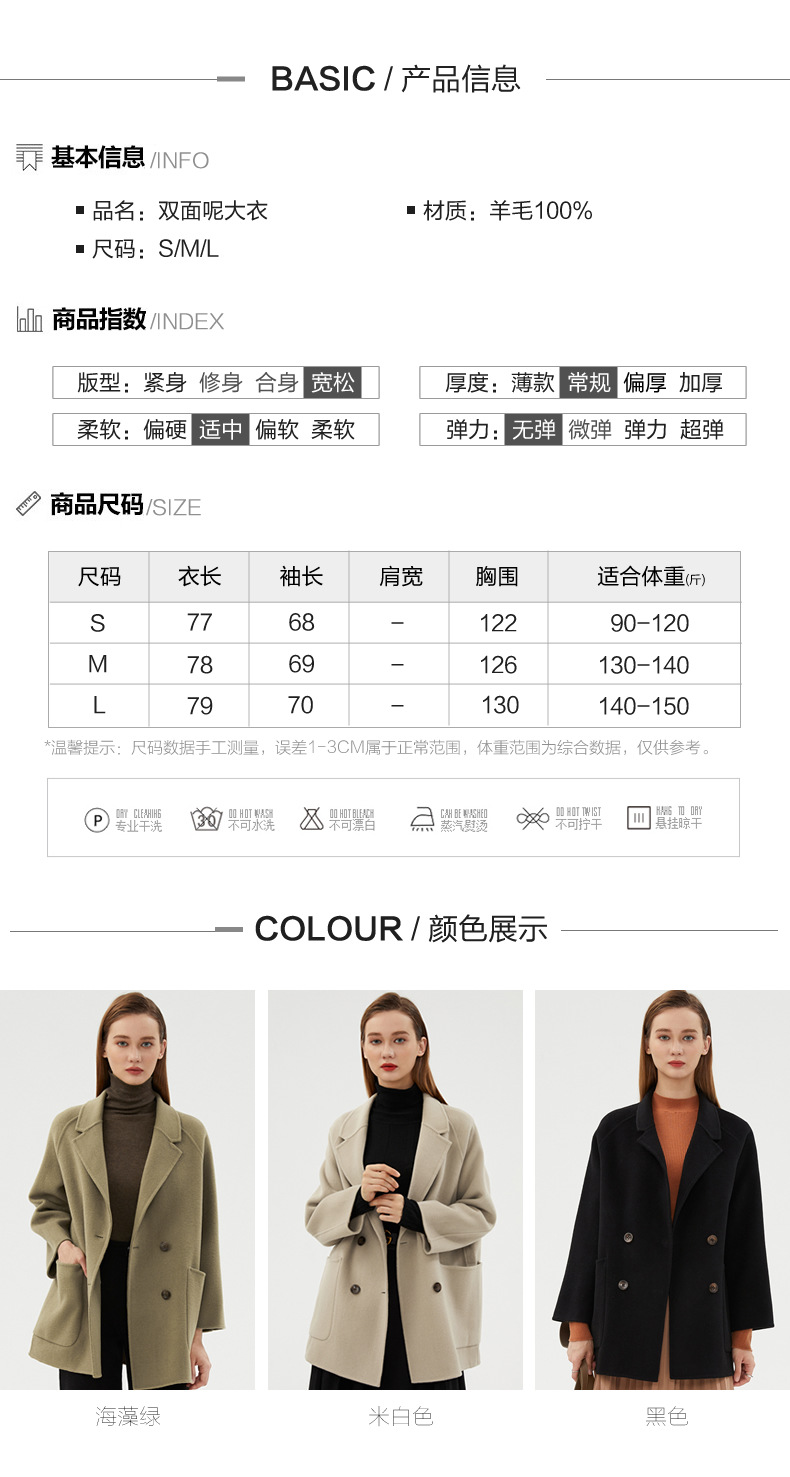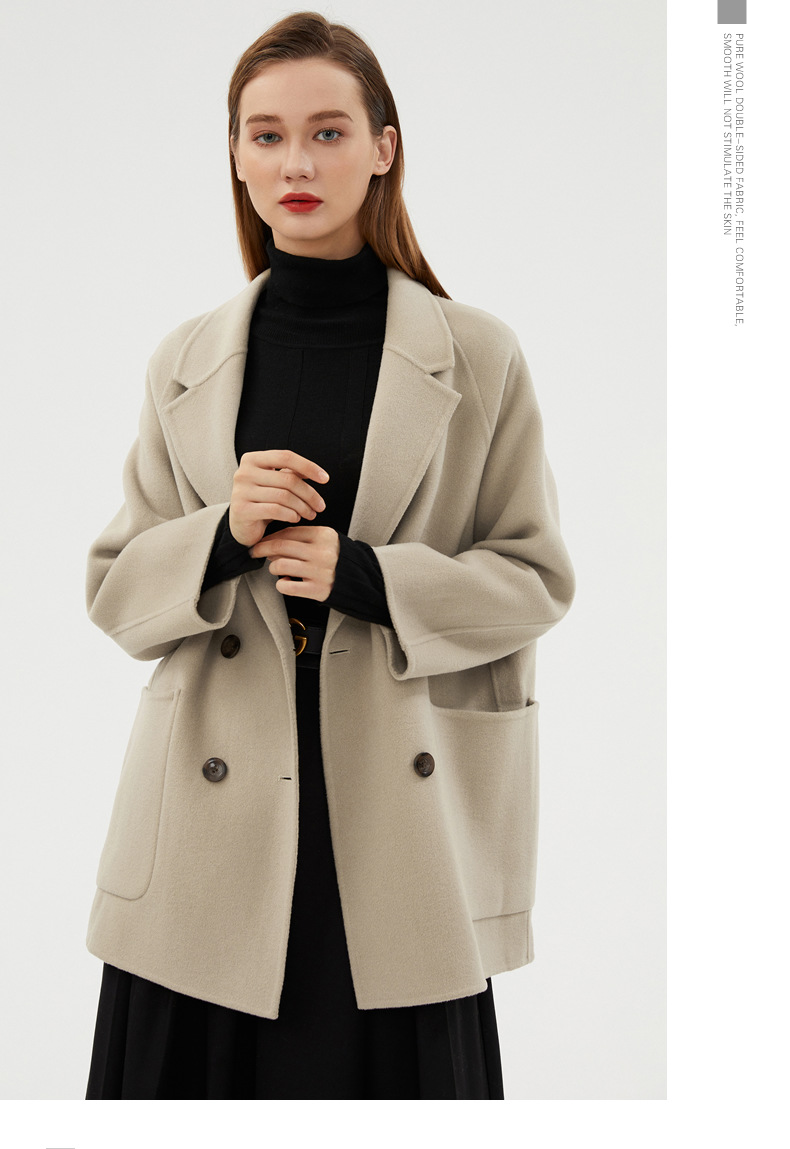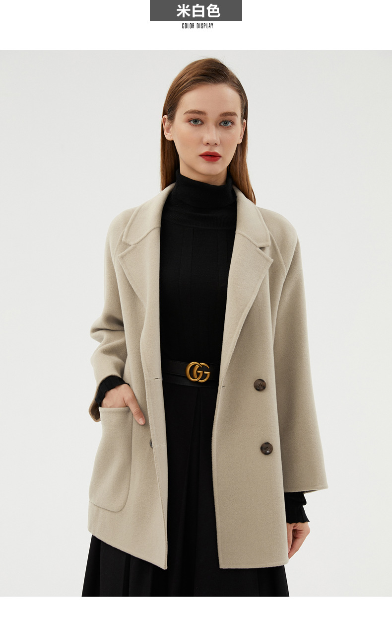丁摩 100%羊毛秋冬新款纯羊毛双面绒呢子大衣女中长款韩版毛呢外套时髦6ZF-811