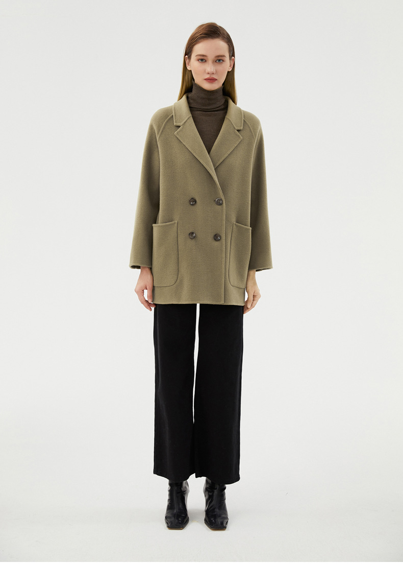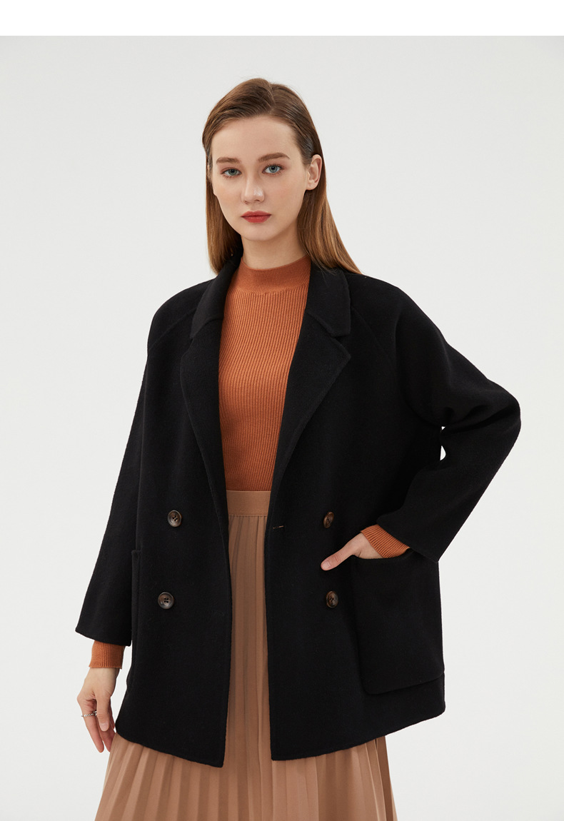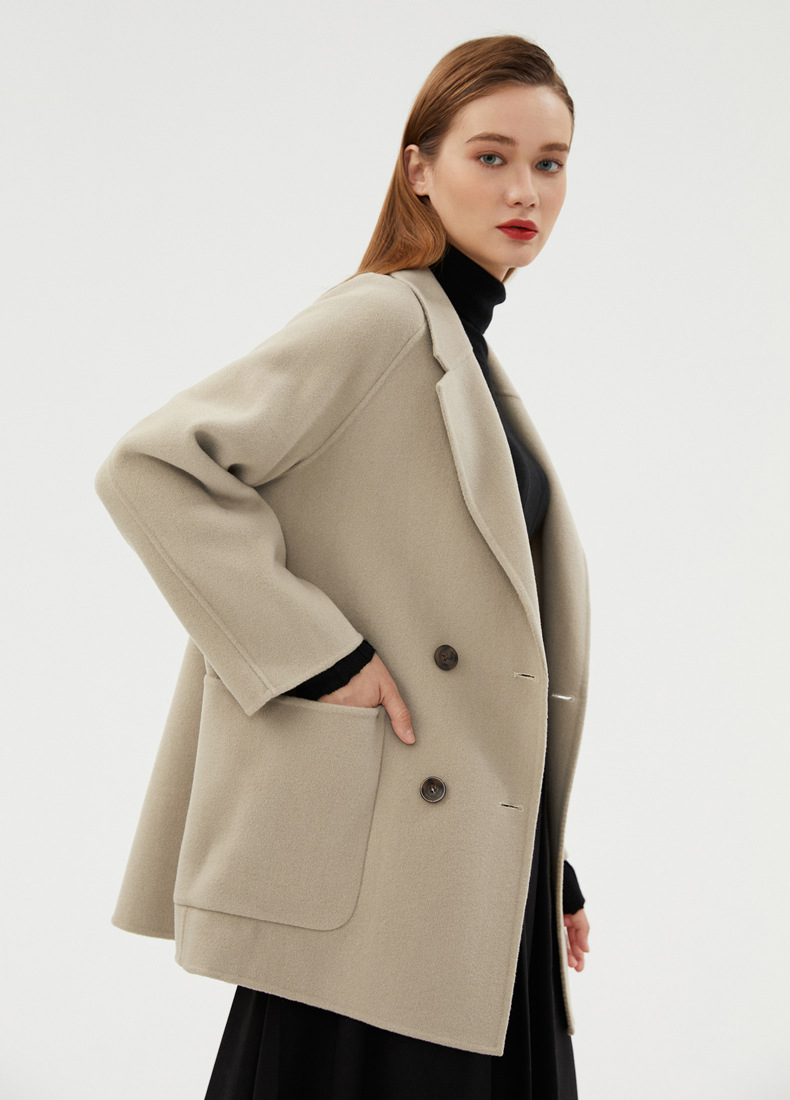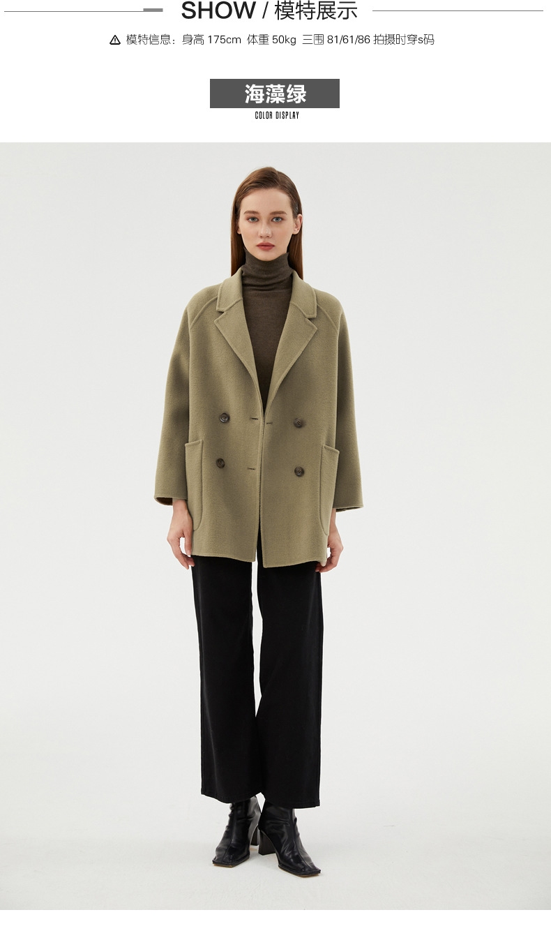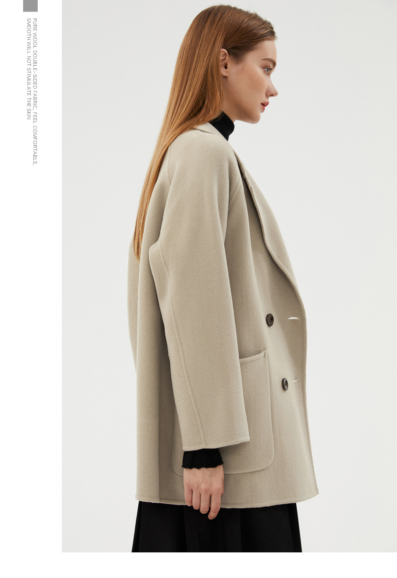 丁摩 100%羊毛秋冬新款纯羊毛双面绒呢子大衣女中长款韩版毛呢外套时髦6ZF-811