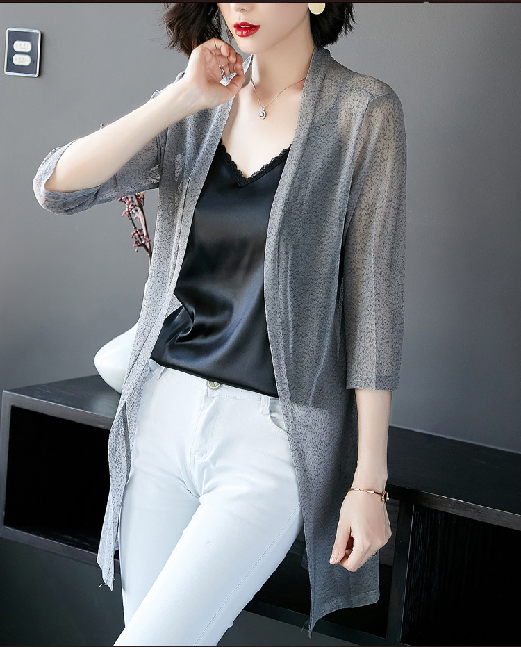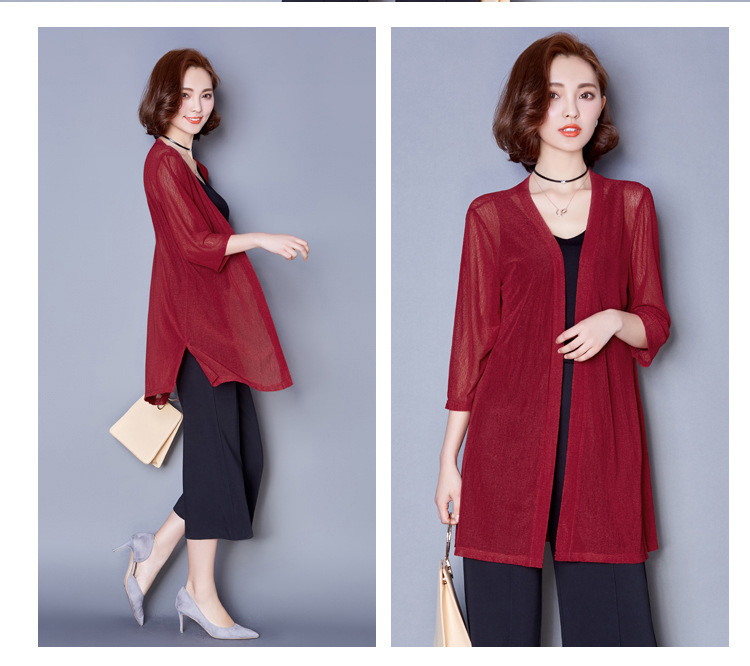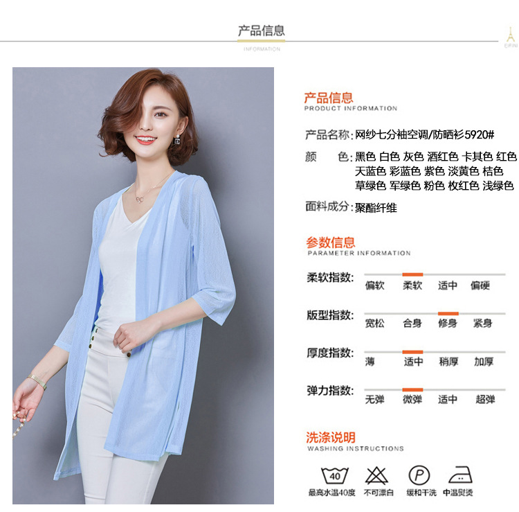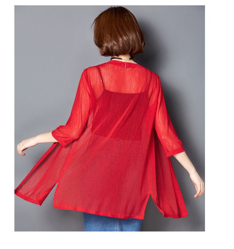 MZ-MZ3650爆款中长款七分袖防晒大码网纱薄外套XCX