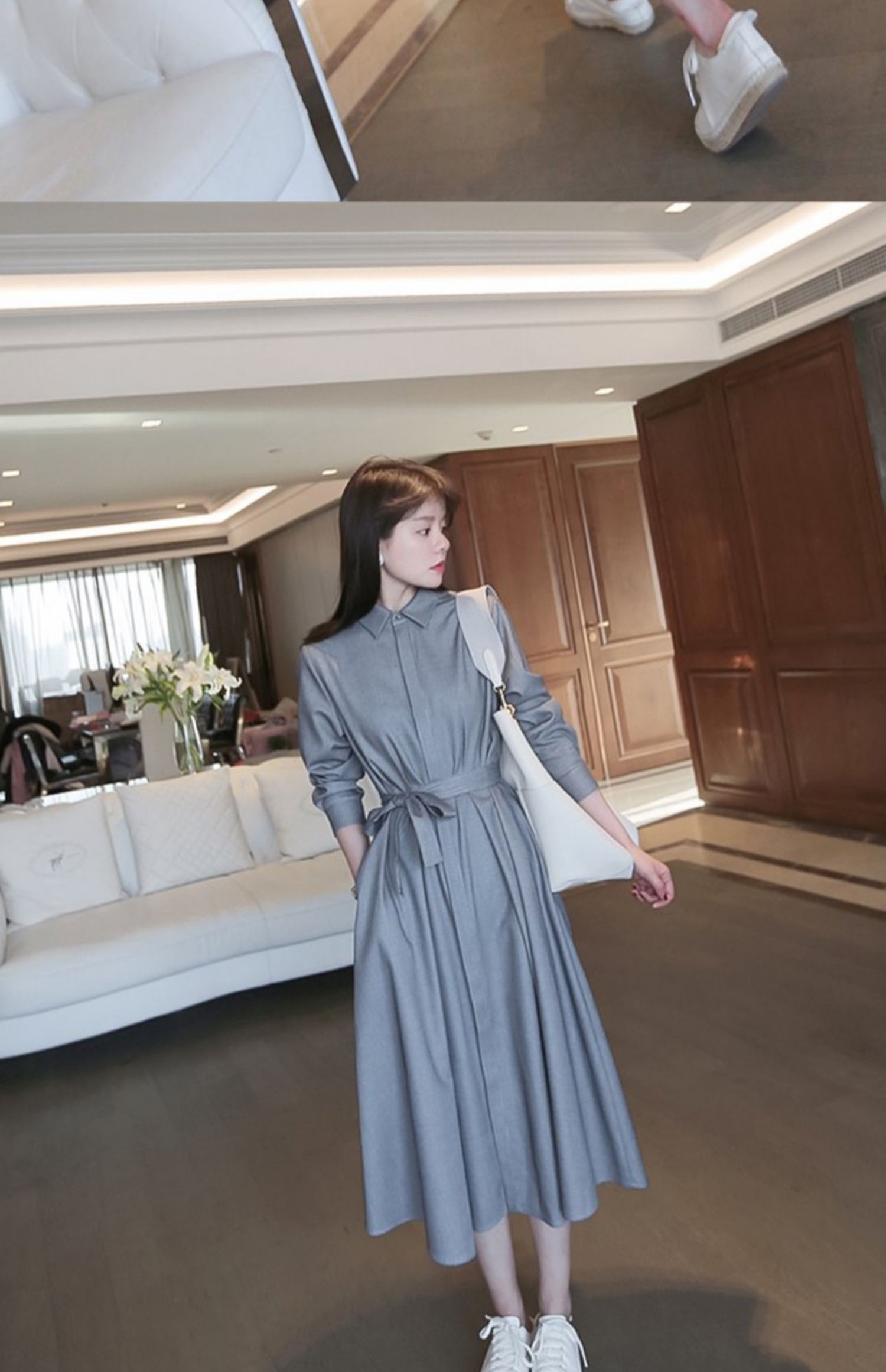 丁摩 西装打底连衣裙中长款减龄气质春秋季高品质衬衫裙5ZF-15478