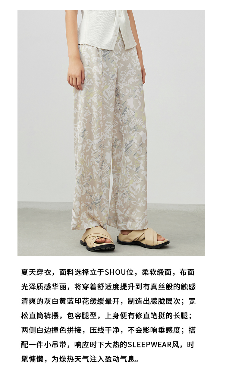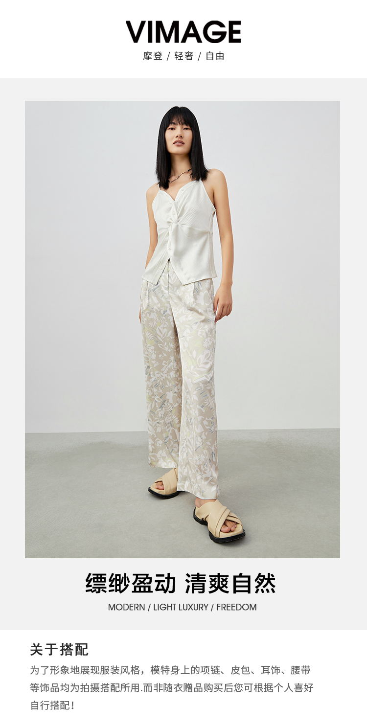 VIMAGE/纬漫纪夏季新款高腰长裤阔腿裤印花女裤V1705321