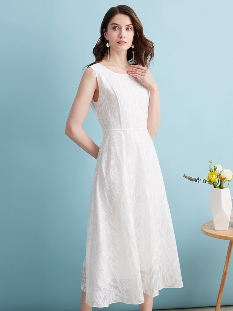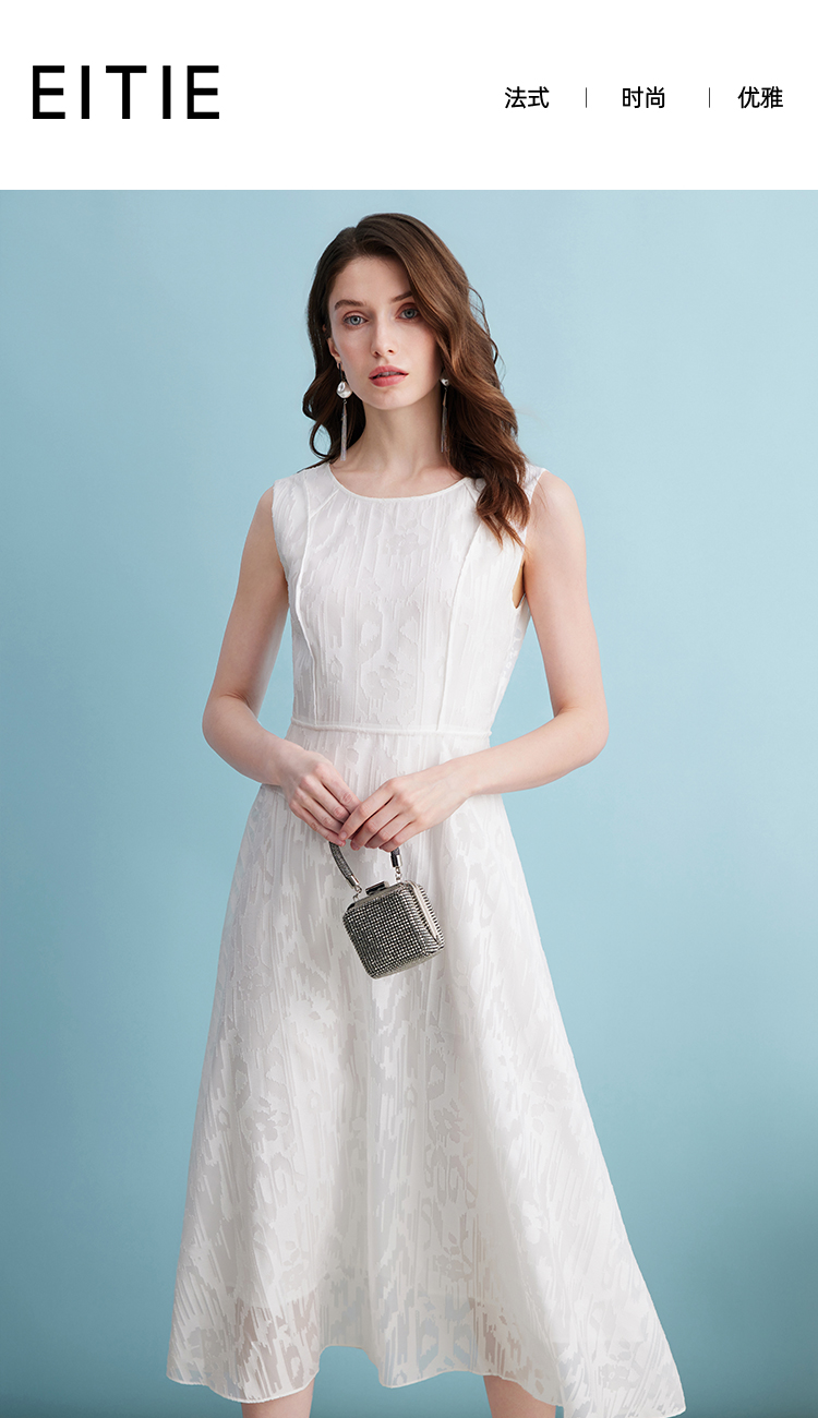 EITIE爱特爱夏季新款时尚减龄无袖修身A字连衣裙7407153