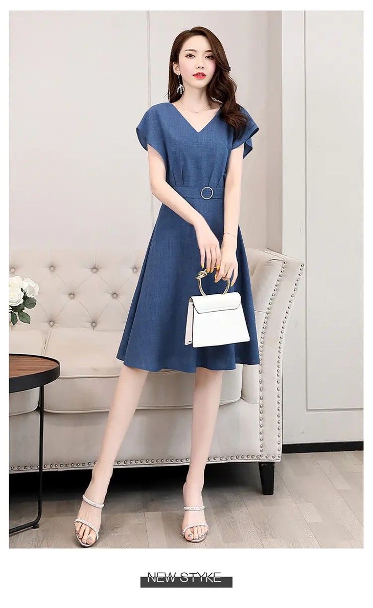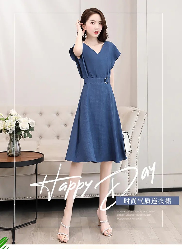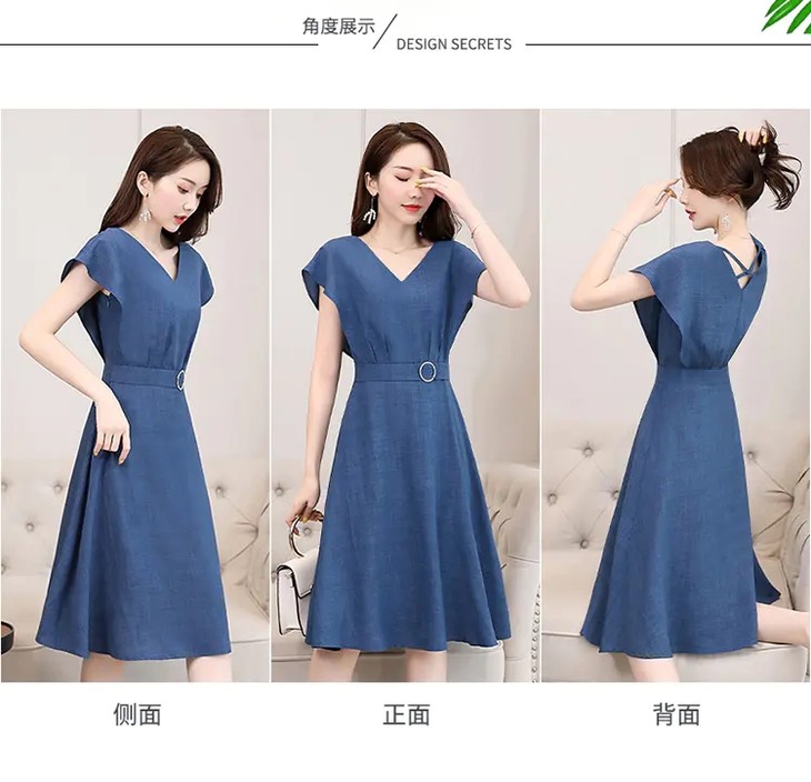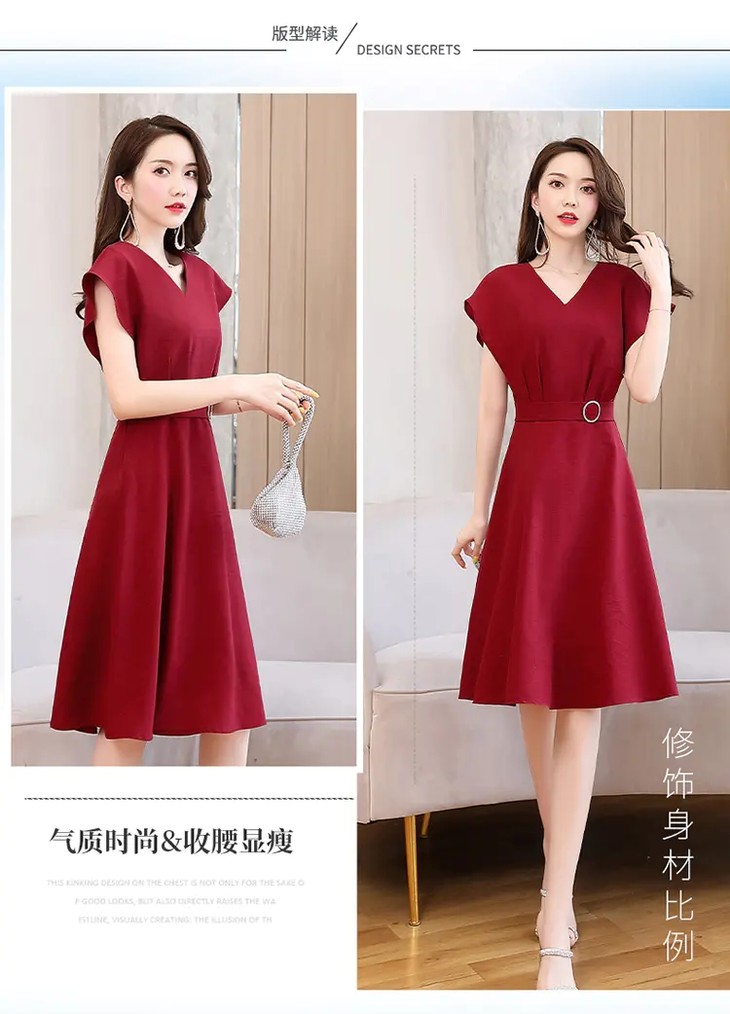 时尚V领纯色,气质优雅百搭连衣裙HR-JXYR8969