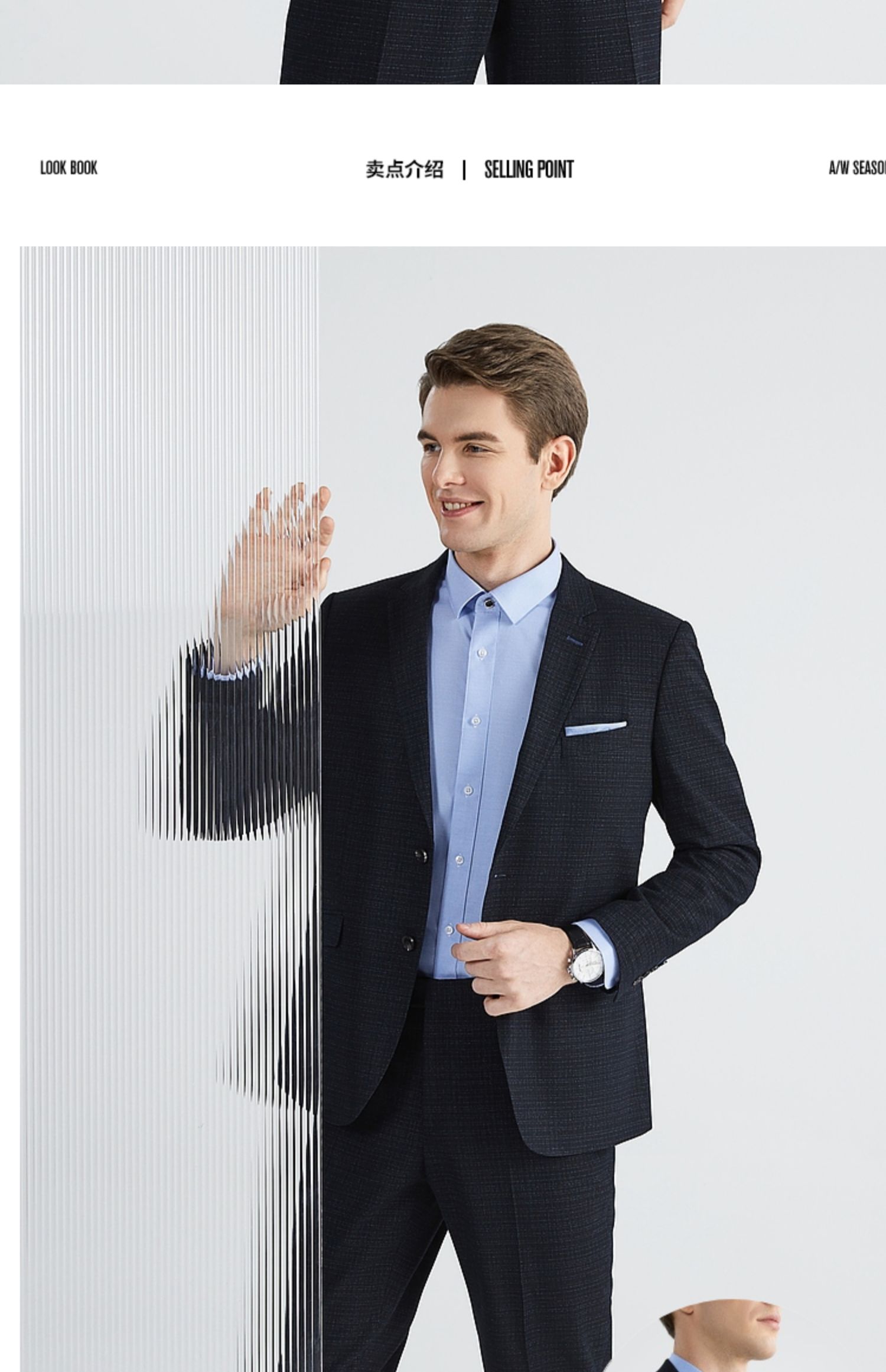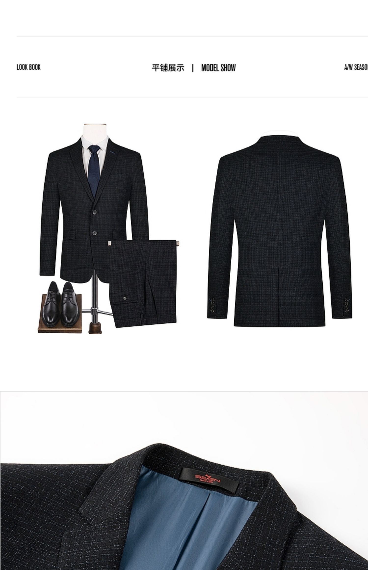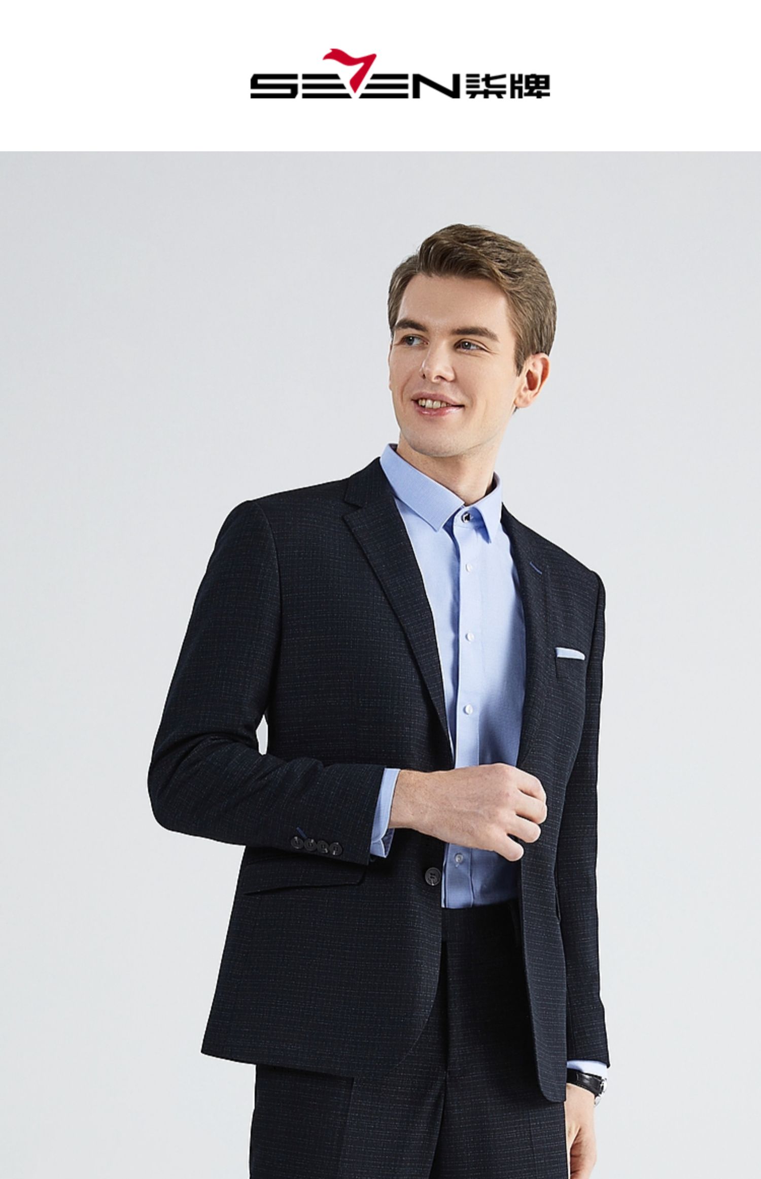 柒牌西装套装男秋冬季新款商务休闲上班两粒扣混纺西服两件套123C70510