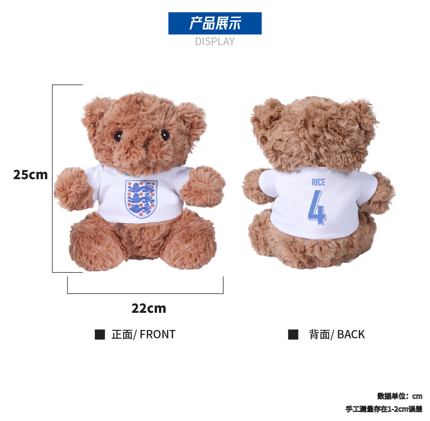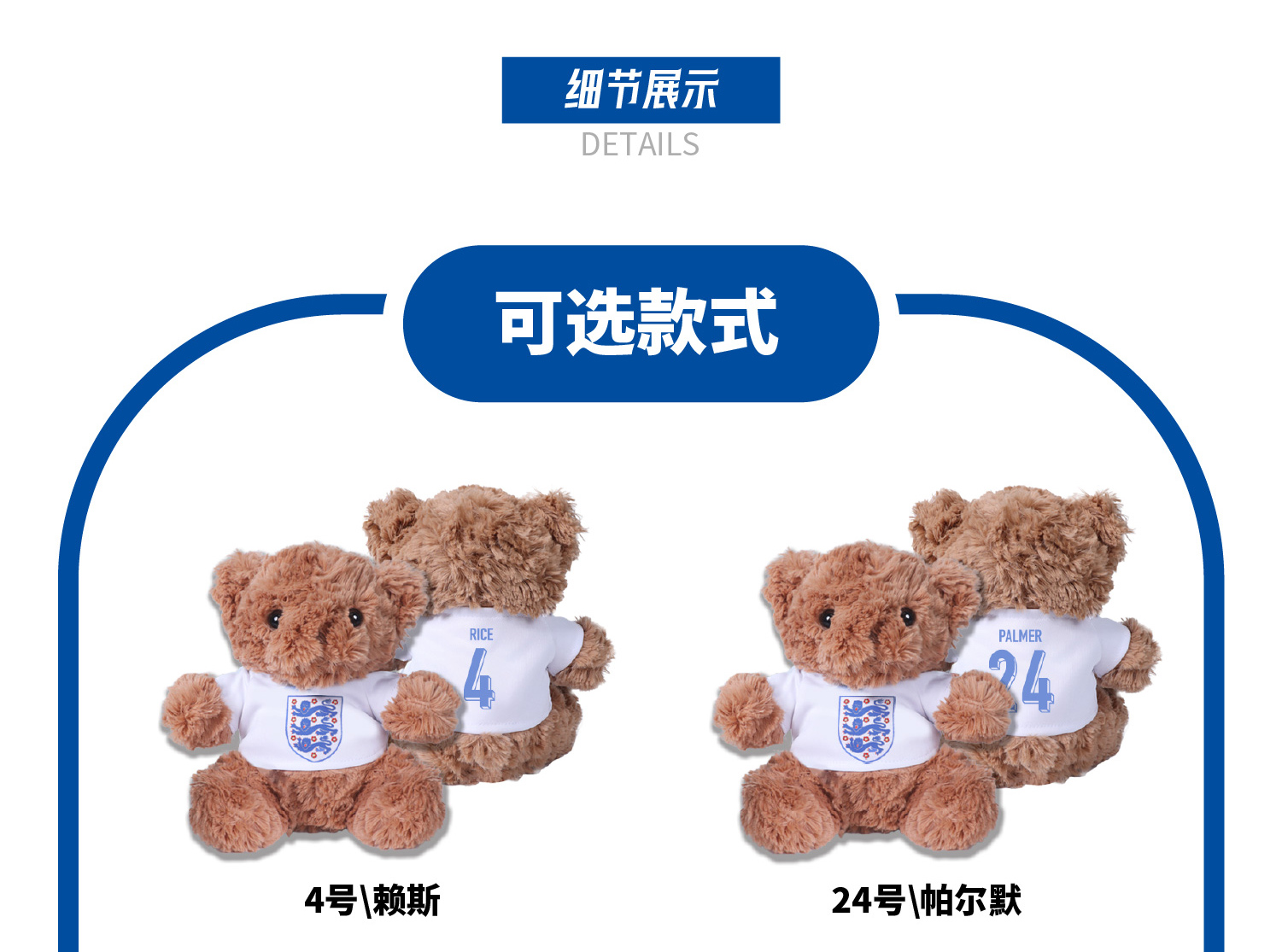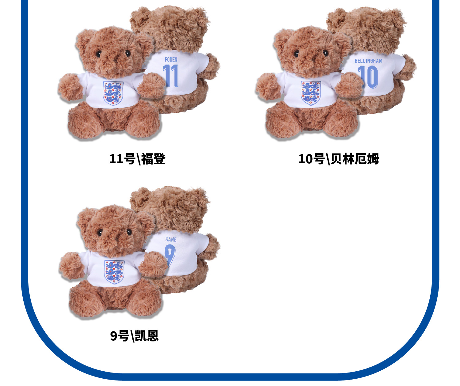 【官方正版】英格兰国家队 | 大熊玩偶球员印号毛绒玩具周边