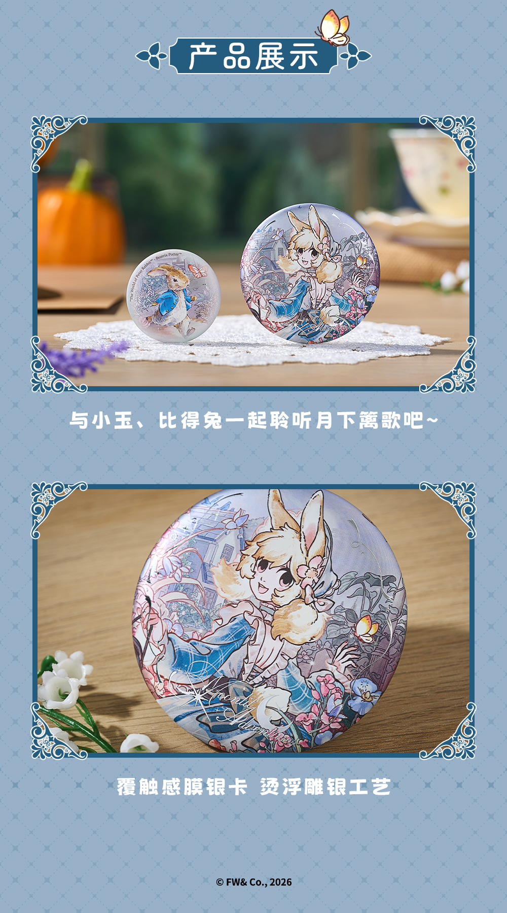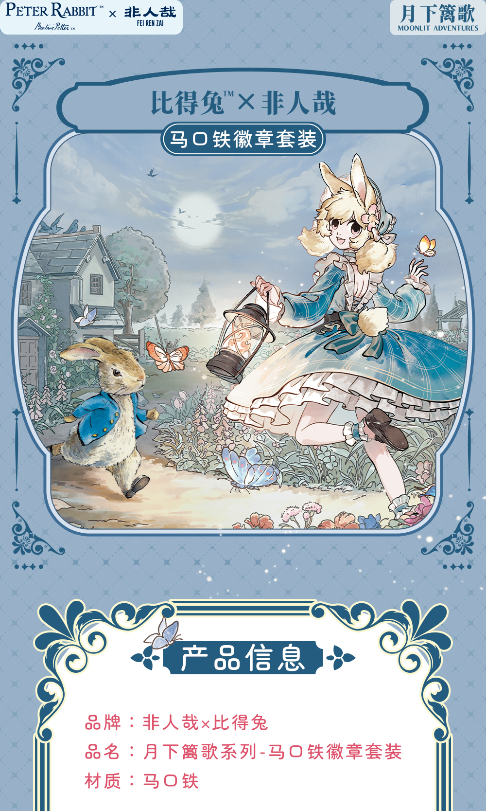 《非人哉官方店》比得兔联名月下篱歌系列马口铁徽章套装烫浮雕小玉吧唧