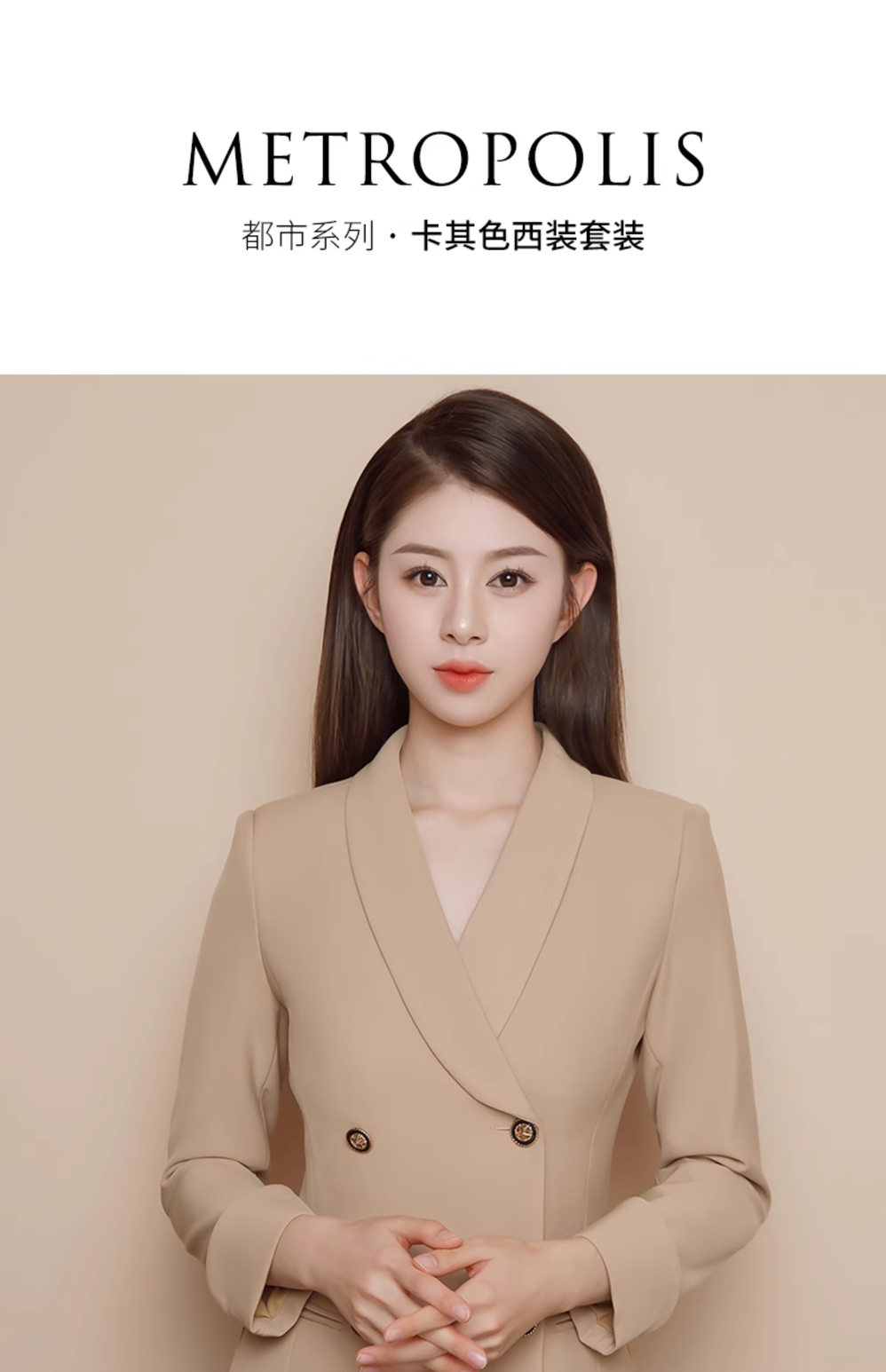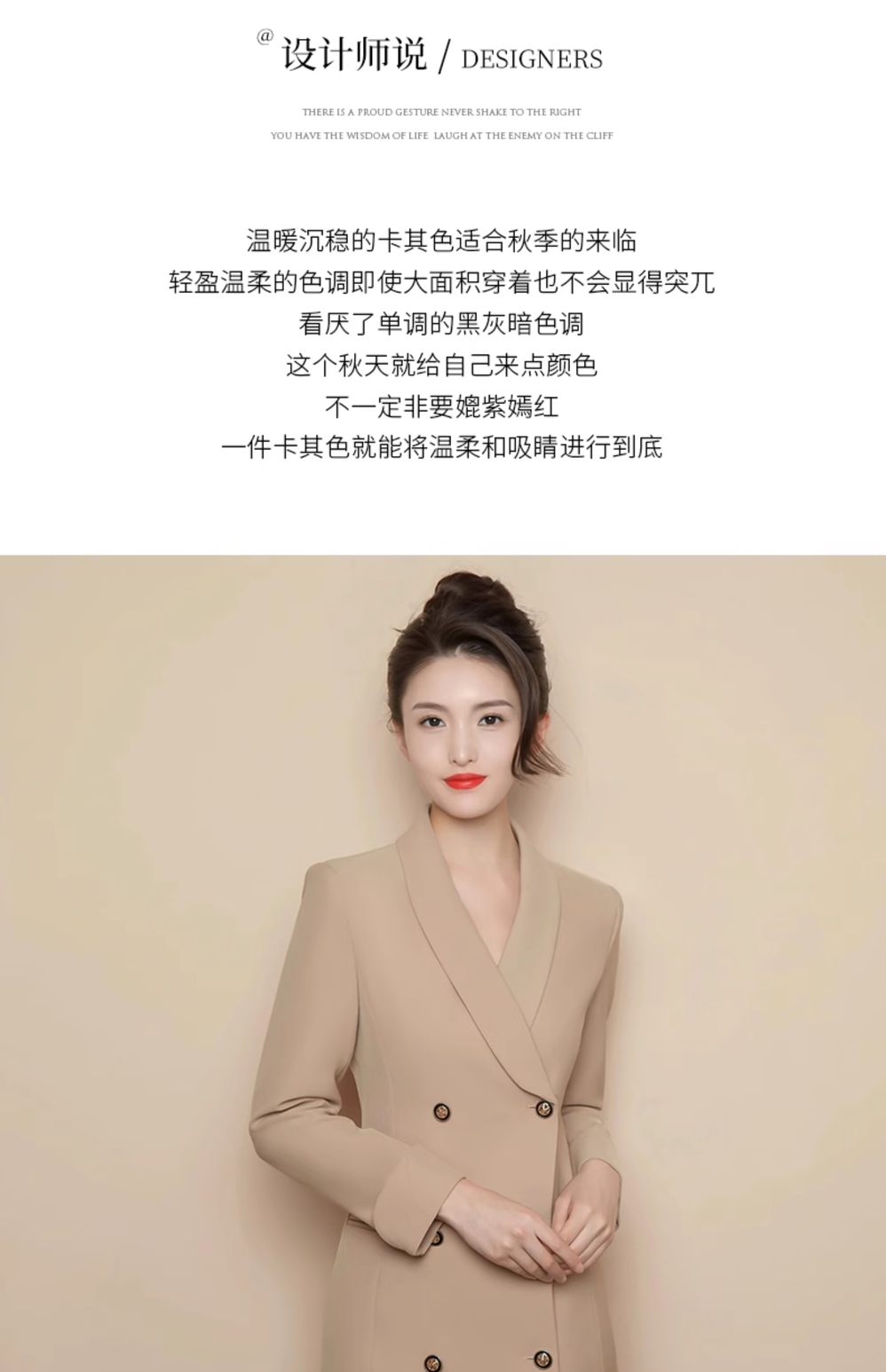 IWY/卡其色正装女高级感商务职业西装裙教师录课主持人卡其连衣裙Q1004