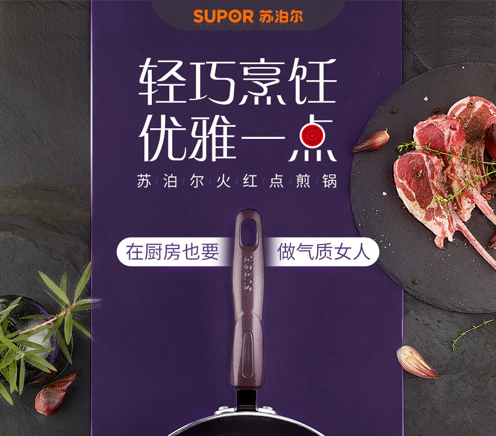 苏泊尔(SUPOR)26cm玻璃盖火红点煎锅不粘锅明火电磁炉通用炒菜锅PJ26K4