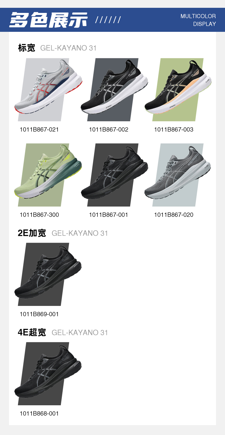ASICS亚瑟士 Kayano31 男款黑武士稳定支撑轻量升级缓震运动跑鞋