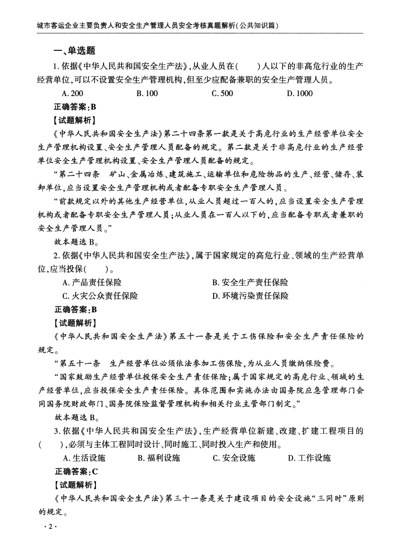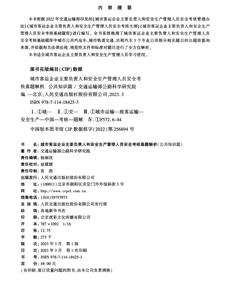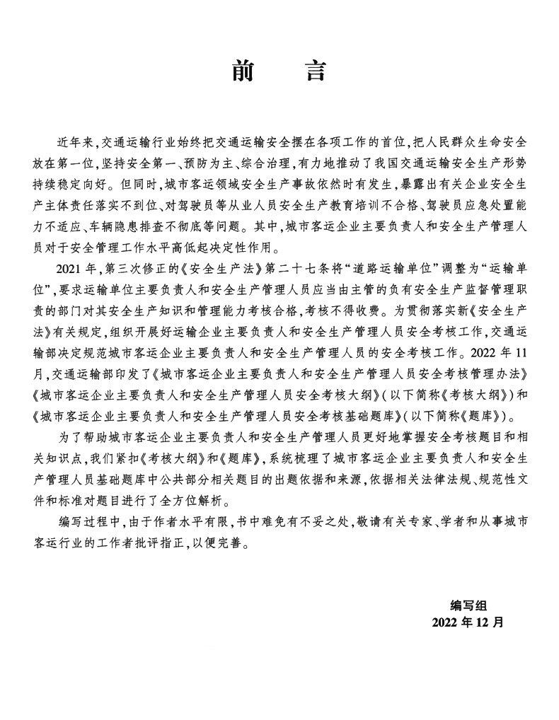 书名:城市客运企业主要负责人和安全生产管理人员安全考核真题解析(公共知识篇)