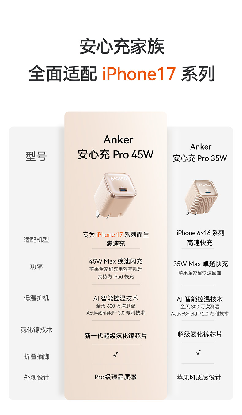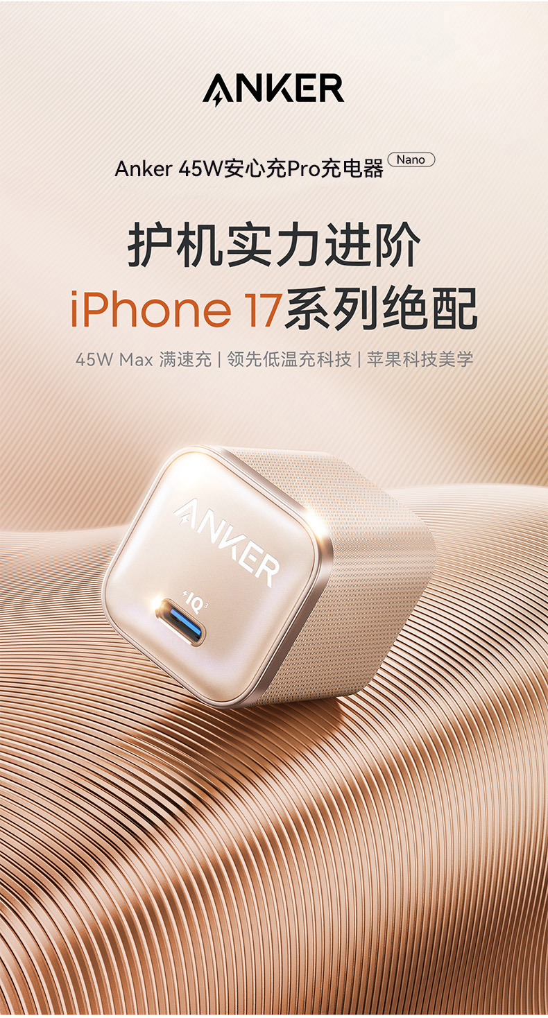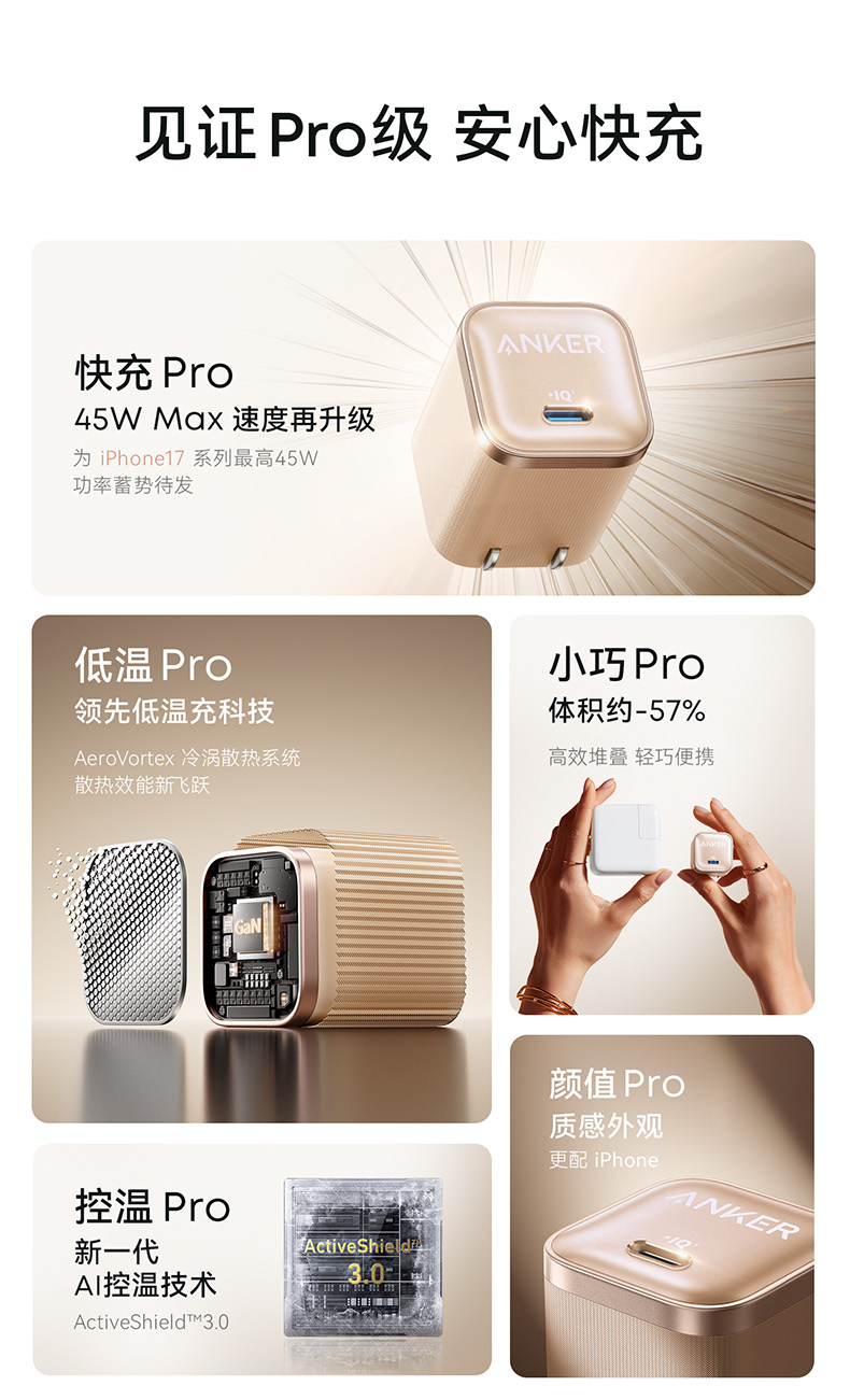 【热销】Anker安克 安心充Pro 45W快充可折叠脚插氮化镓手机充电器 适配iPhone 17 A2692