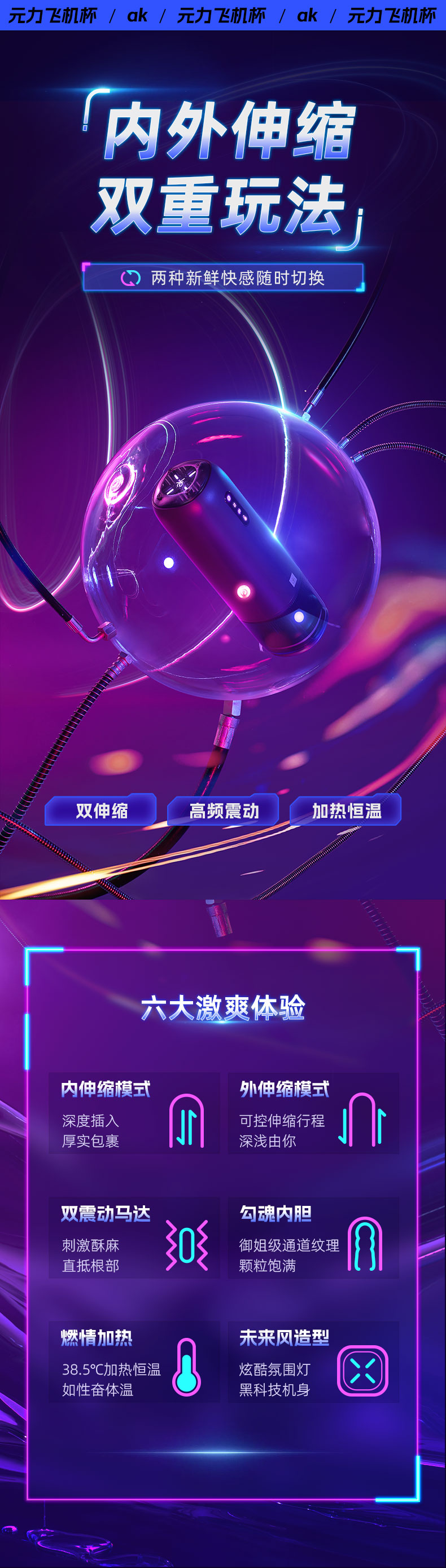 AKYOUNG系列元力电动伸缩震动飞机杯