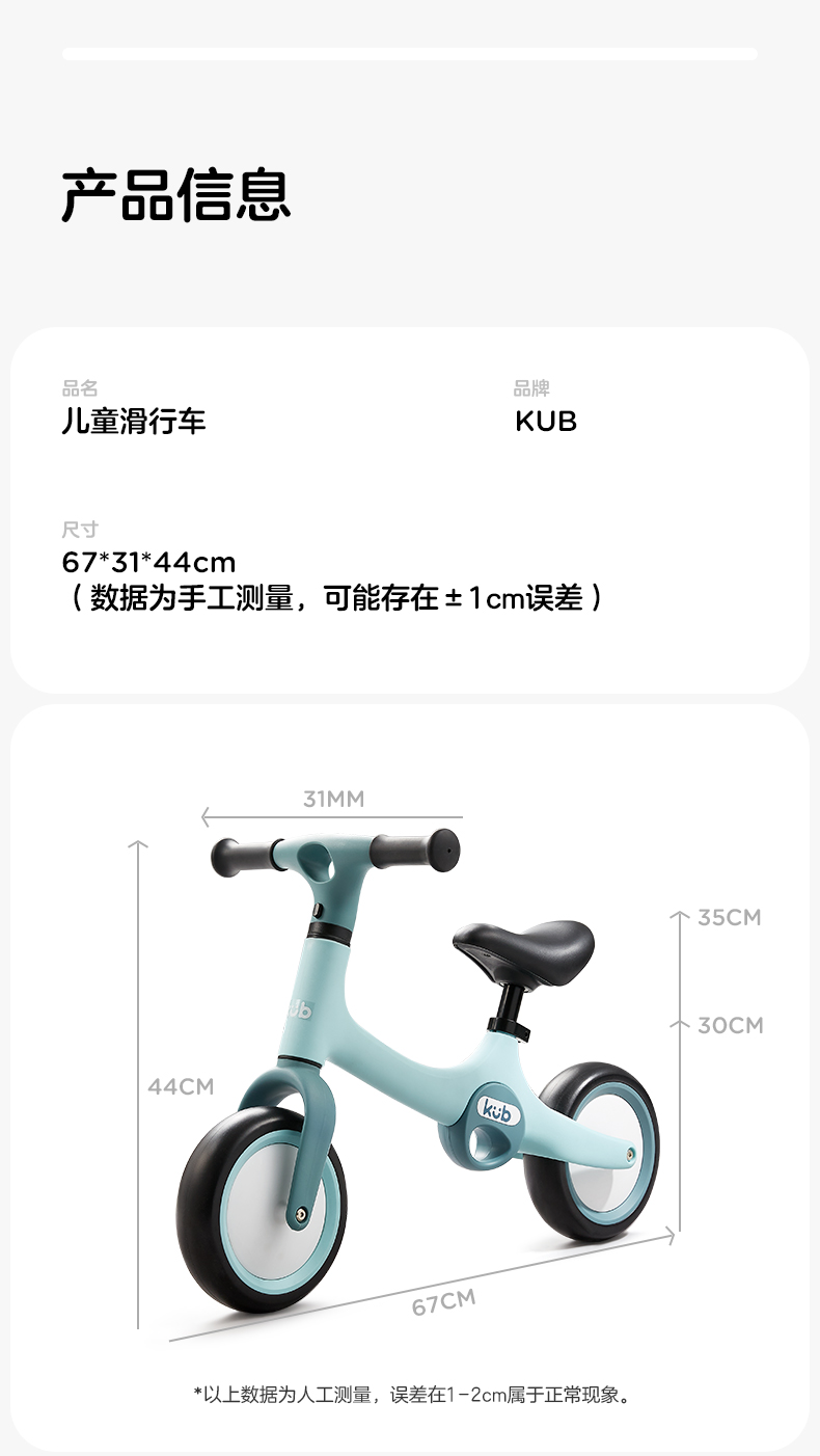 KUB可优比儿童平衡车1-3岁无脚踏滑行车宝宝学步车男孩女溜溜车